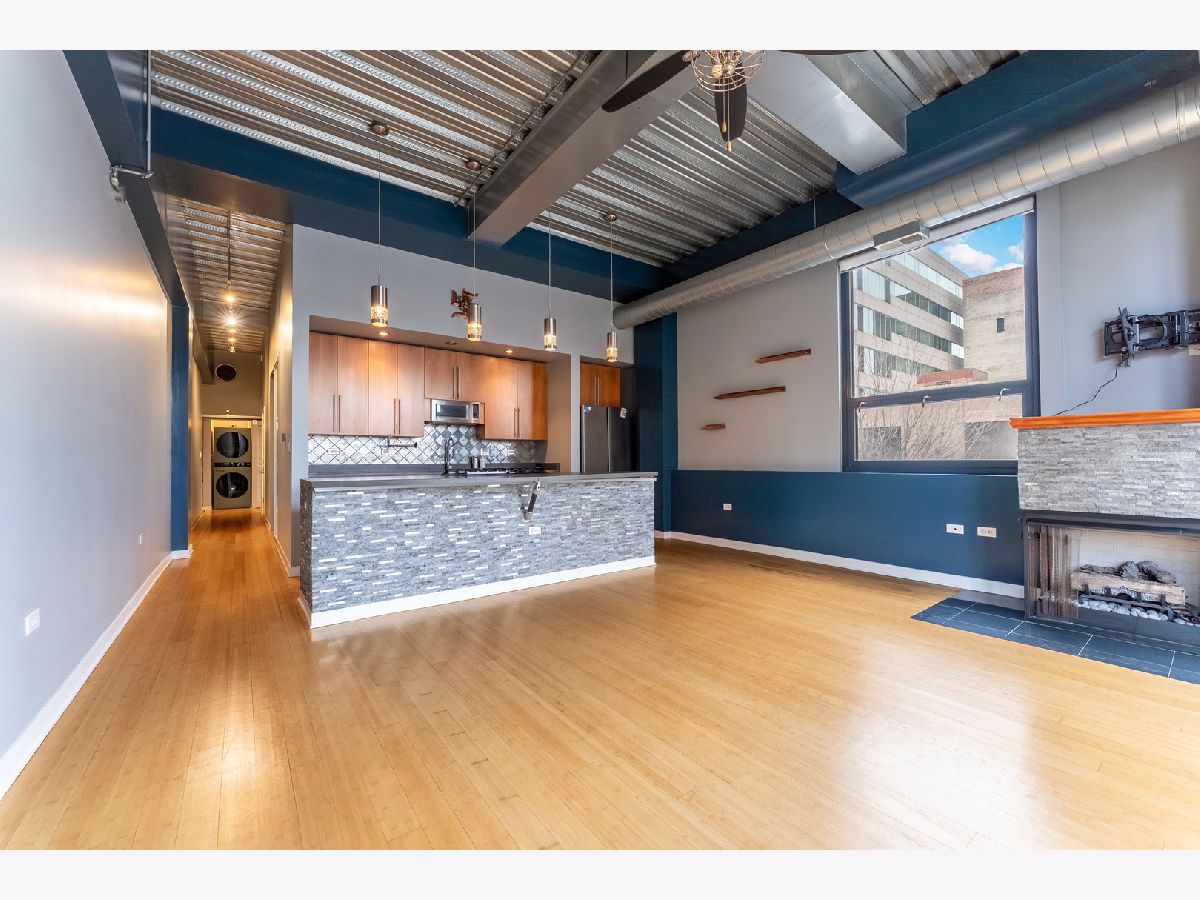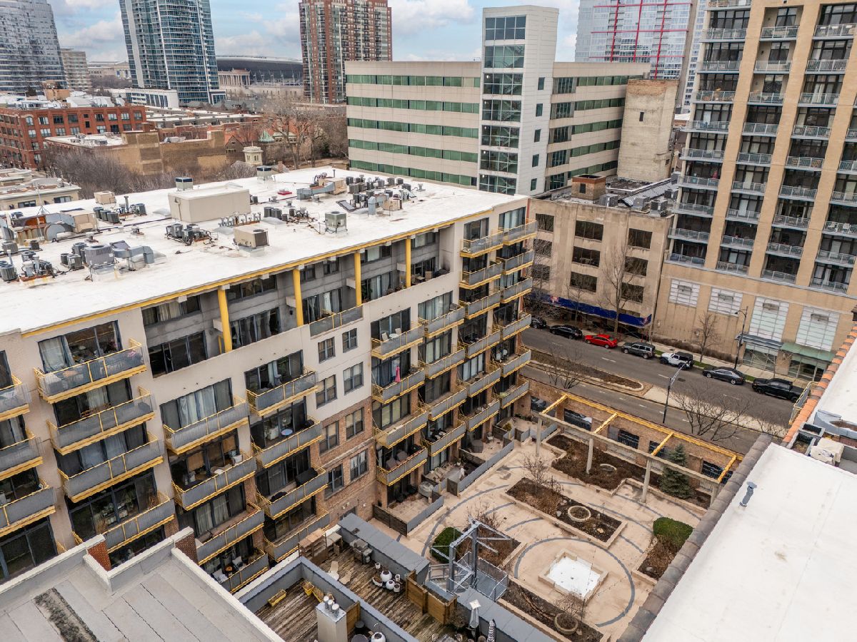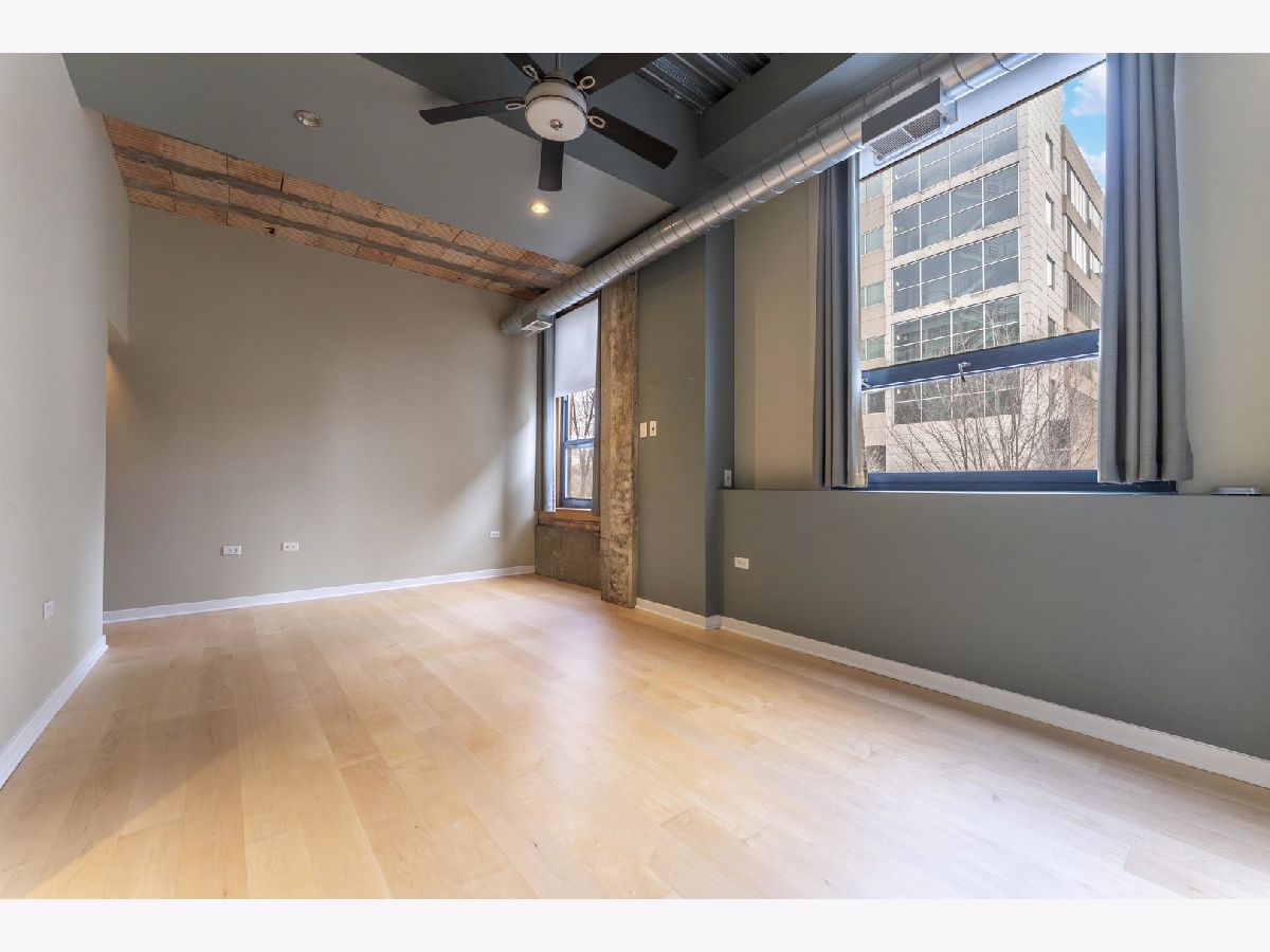 Sun-drenched and sophisticated, this 2-bedroom, 2-bathroom corner loft at Bank Note Lofts features soaring 14-foot ceilings, industrial beams, and bamboo hardwoods throughout. The open-concept kitchen boasts concrete counters, a large island, wine fridge, and a brand-new refrigerator, complemented by a new in-unit washer/dryer and a 2022 A/C unit. The primary suite offers a custom walk-in closet and Euro tub, while the private South-facing balcony overlooks a quiet courtyard. Rare for the building, prime indoor heated parking and two large storage lockers are included in the price. Professionally managed and both pet and investor-friendly, this home is steps from the lake path, museums, and South Loop dining.