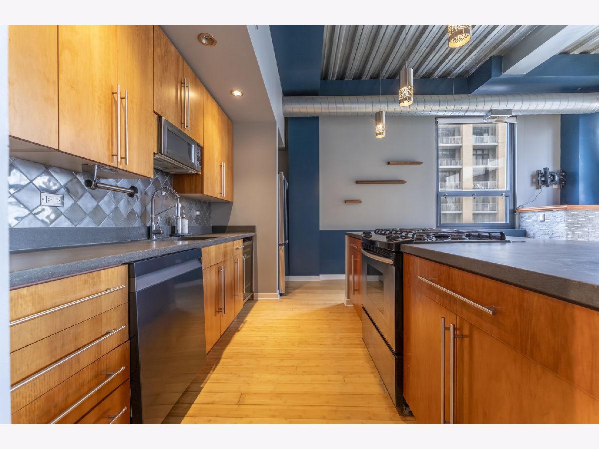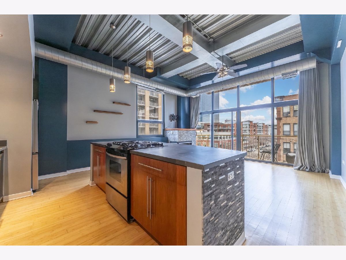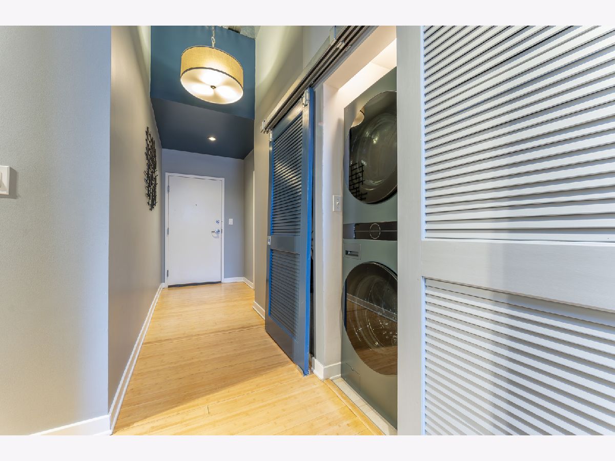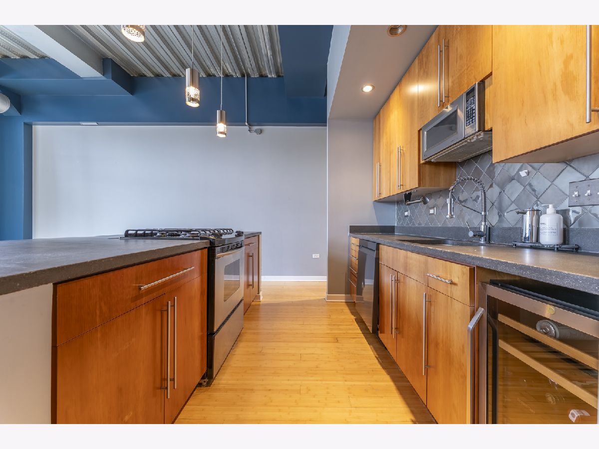 Sun-drenched and sophisticated, this 2-bedroom, 2-bathroom corner loft at Bank Note Lofts features soaring 14-foot ceilings, industrial beams, and bamboo hardwoods throughout. The open-concept kitchen boasts concrete counters, a large island, wine fridge, and a brand-new refrigerator, complemented by a new in-unit washer/dryer and a 2022 A/C unit. The primary suite offers a custom walk-in closet and Euro tub, while the private South-facing balcony overlooks a quiet courtyard. Rare for the building, prime indoor heated parking and two large storage lockers are included in the price. Professionally managed and both pet and investor-friendly, this home is steps from the lake path, museums, and South Loop dining.
