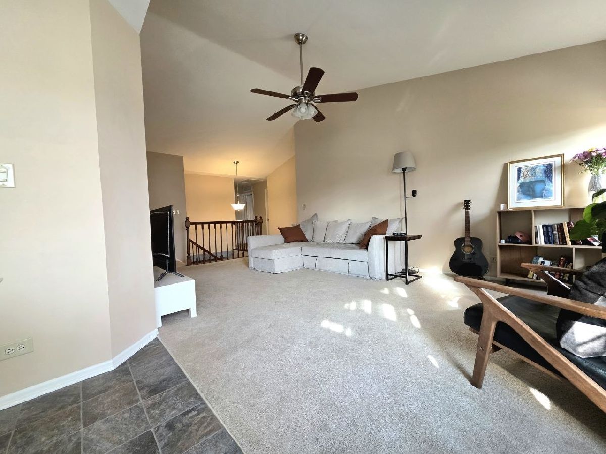 BEAUTIFUL!!! Updated and very well maintained home. Kitchen, dining, baths, laundry, and carpets are in excellent condition and feel like new. Freshly painted in 2025. Eat-in kitchen with stainless steel appliances, bay window, and granite countertops (also in bathrooms). Updated light fixtures, private balcony off dining room, cathedral ceilings in living room and primary bedroom, plus private bath and double closets. Furnace ~8 years old. Water heater (2023). Dryer (2025). Association with only 298 monthly payment covers water, lawn care, snow, scavenger, and exterior maintenance, also include 10ft pool and club house for your events!! Convenient location near St. Alexius Medical Center, Interstate 90, Schaumburg School District, parks, and library.