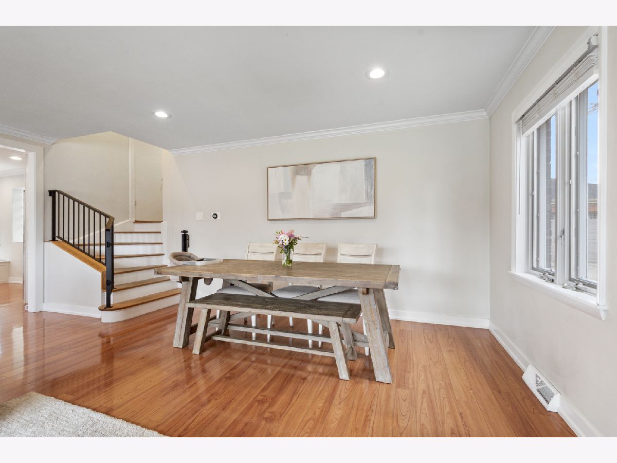 Absolutely stunning, remodeled in 2019. This 3-bedroom, 2 bath BI-LEVEL home with approx 1800 sf of living space. First floor includes a beautiful, newer white kitchen with quartz countertops and stainless-steel appliances. Huge open, sunny living room combined with dining room. Second floor features 3 bedrooms with remodeled full bathroom. Full finished lower family room is perfect for entertaining. Huge laundry room with washer & dryer. Roof with architectural shingles, newer driveway that is wide enough for two cars. There is a beautiful brick paver patio. Updated electrical system and plumbing. Hardwood floors throughout the house, crown moldings, recessed lighting. Lovely yard with shed for extra storage. Large crawl space. Fantastic location! Surrounded by parks, one block from Woodland Park and walking distance to Franklin Elementary School. 12 min walking distance to Dee Rd Metra Station. Close to restaurants, uptown, parks, schools. Easy access to 90/294, O'Hare Airport, shopping. Move right into this beautiful home.