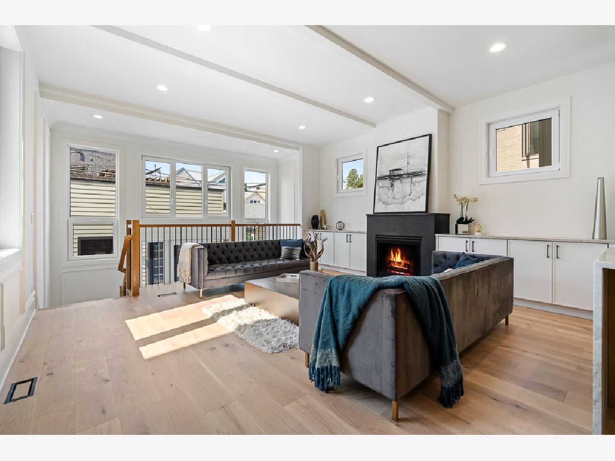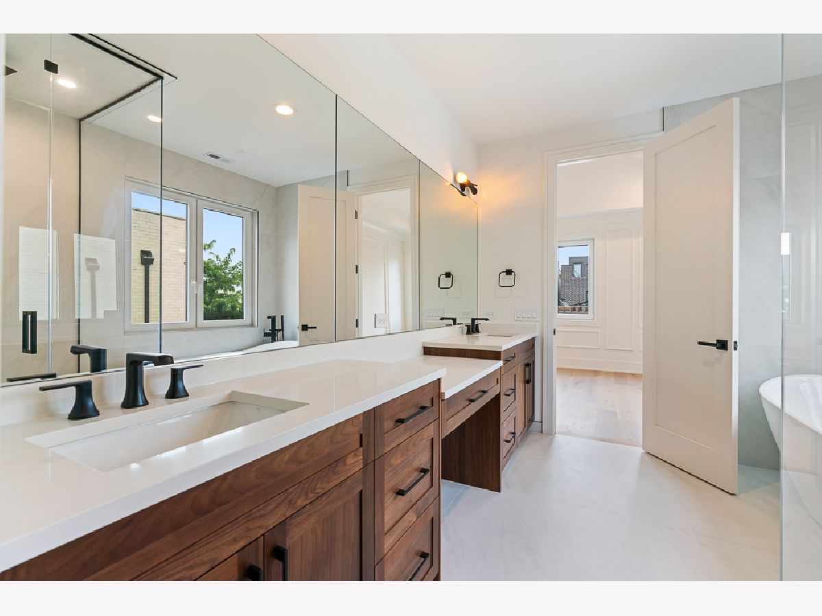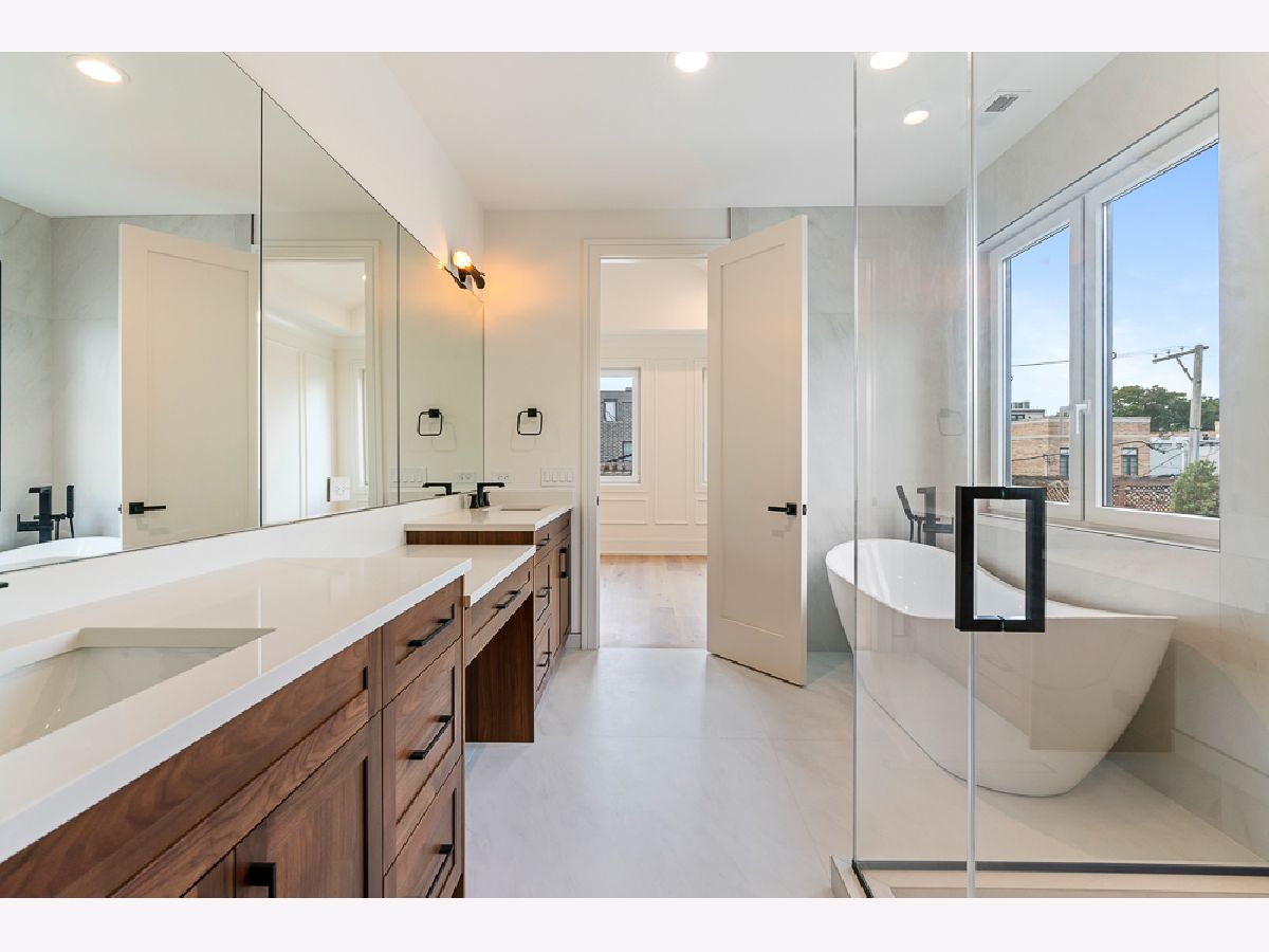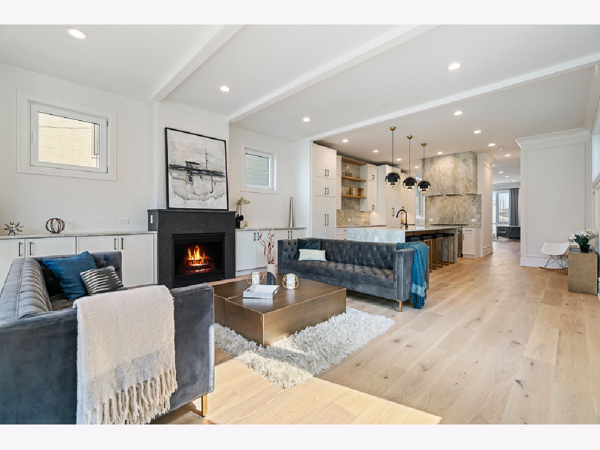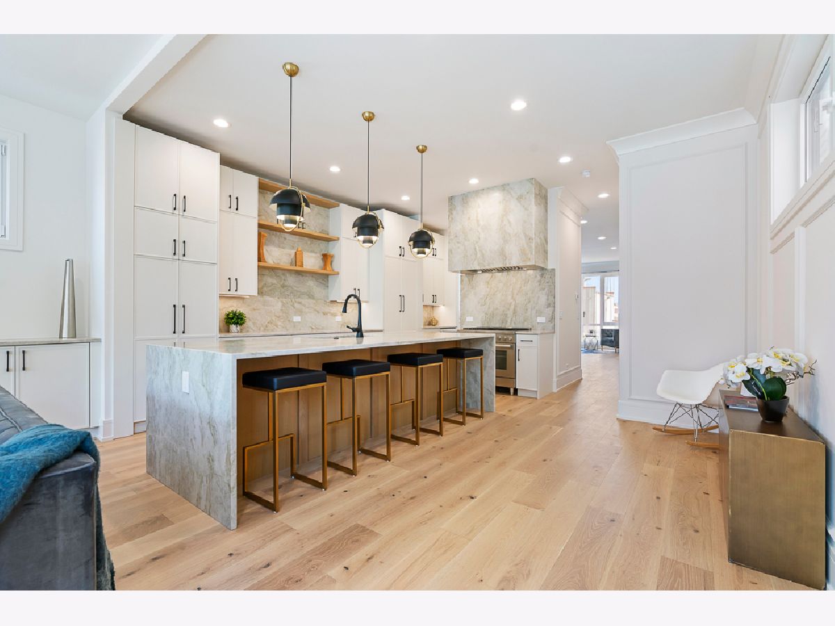 Stunning new construction single-family home in prime Bucktown location by a highly experienced builder. With 6 bedrooms and 4.2 baths, this residence combines suburban-scale living spaces with designer-curated materials and bespoke finishes to set a new standard for luxury. The main level is anchored by a chef's kitchen with Taj Mahal quartzite countertops and backsplash, a custom vent hood wrap, premium appliances, and two pantries, opening to a spacious living area with vented gas fireplace, custom built-ins, and detailed millwork. Large European windows throughout fill the home with natural light, tilt open for fresh air, and enhance the sense of quiet comfort inside. Upstairs, skylights flood the top floor with natural light and blue-sky views. The primary suite offers a generous layout with walk-in closet and a spa-like bath featuring dual vanities, a large steam shower, freestanding soaking tub, heated floors, and designer fixtures. Three additional bedrooms complete this level, including one with a connecting bath and another with an en-suite and walk-in closet, plus a conveniently located laundry room. The lower level is a true living space with 10-foot ceilings, radiant heated floors, jewel-toned designer tilework, a large recreation room with wet bar, a glass-enclosed office or bedroom, a private guest suite with en-suite bath and dual closets, and a second laundry center. Outdoor living includes a gated front yard, a private terrace at the back of the home, an oversized 2.5-car garage, and an expansive rooftop deck finished with tile, extending the living space for entertaining. Newly completed, this home is move-in ready.
