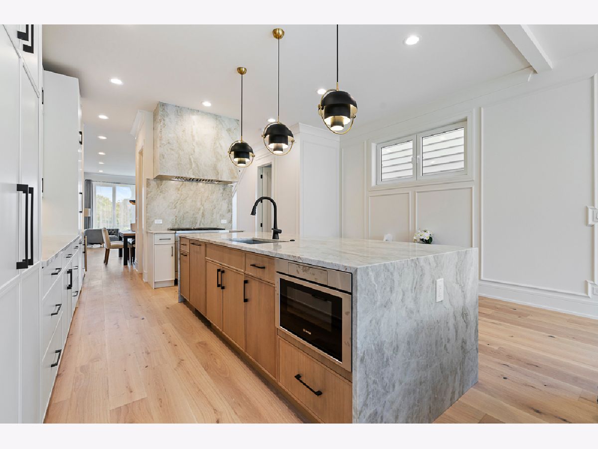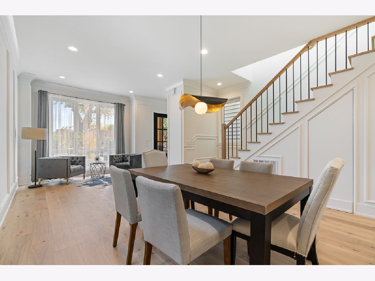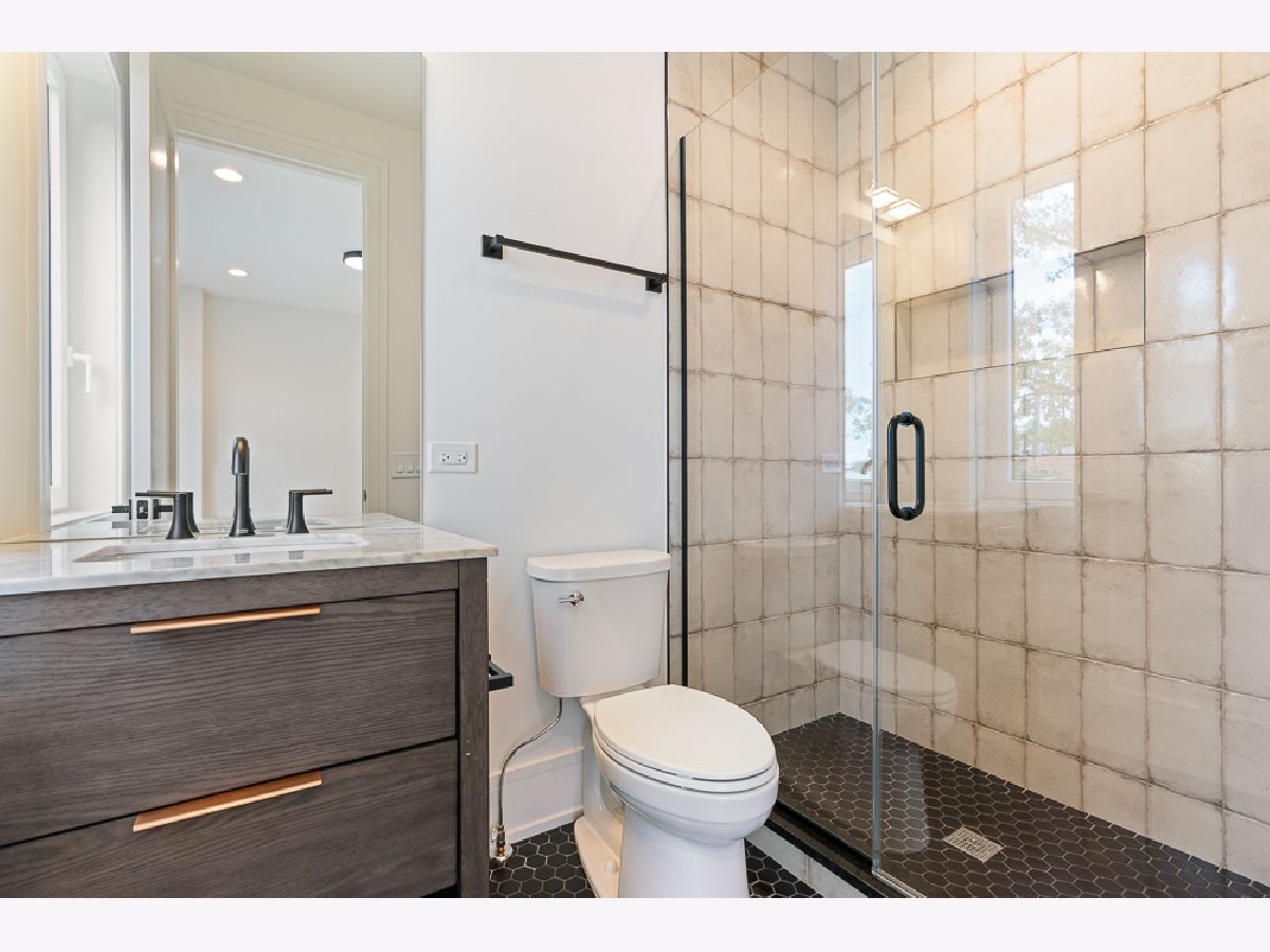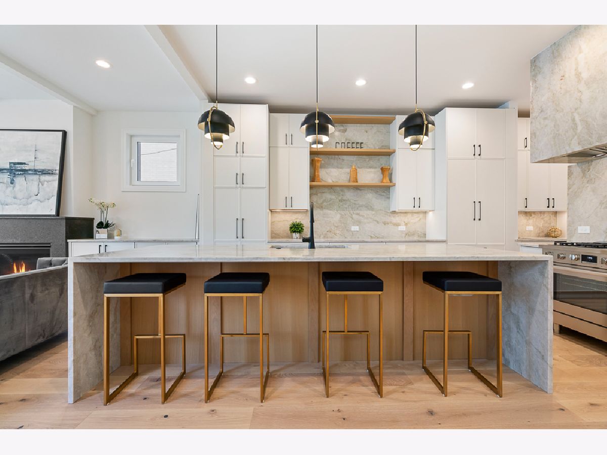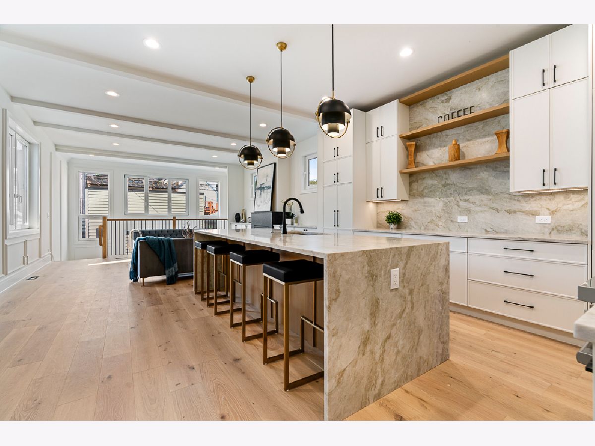 Stunning new construction single-family home in prime Bucktown location by a highly experienced builder. With 6 bedrooms and 4.2 baths, this residence combines suburban-scale living spaces with designer-curated materials and bespoke finishes to set a new standard for luxury. The main level is anchored by a chef's kitchen with Taj Mahal quartzite countertops and backsplash, a custom vent hood wrap, premium appliances, and two pantries, opening to a spacious living area with vented gas fireplace, custom built-ins, and detailed millwork. Large European windows throughout fill the home with natural light, tilt open for fresh air, and enhance the sense of quiet comfort inside. Upstairs, skylights flood the top floor with natural light and blue-sky views. The primary suite offers a generous layout with walk-in closet and a spa-like bath featuring dual vanities, a large steam shower, freestanding soaking tub, heated floors, and designer fixtures. Three additional bedrooms complete this level, including one with a connecting bath and another with an en-suite and walk-in closet, plus a conveniently located laundry room. The lower level is a true living space with 10-foot ceilings, radiant heated floors, jewel-toned designer tilework, a large recreation room with wet bar, a glass-enclosed office or bedroom, a private guest suite with en-suite bath and dual closets, and a second laundry center. Outdoor living includes a gated front yard, a private terrace at the back of the home, an oversized 2.5-car garage, and an expansive rooftop deck finished with tile, extending the living space for entertaining. Newly completed, this home is move-in ready.