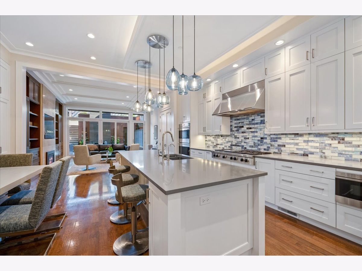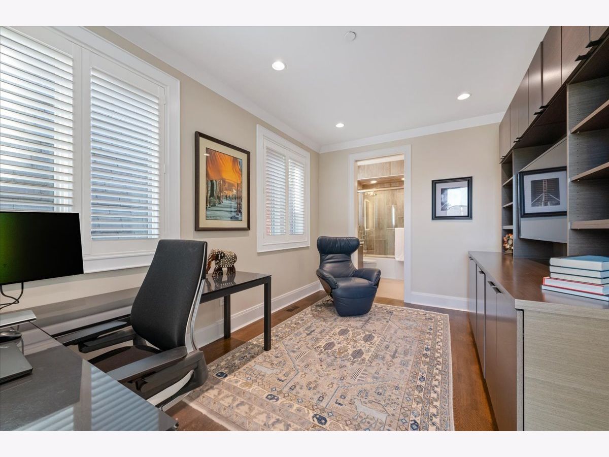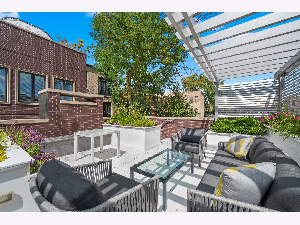 This meticulously updated limestone and brick residence spans four stories and over 5,122 square feet, offering a Extra-wide floorplan built to the full width of the property. Offering six bedrooms and 5.2 bathrooms, plus three completely rebuilt outdoor spaces, including a 900+sf penthouse-level rooftop retreat featuring the Chicago skyline views. Designed for the most discerning buyer, the home features refined custom finishes, custom built-ins, tray and beam ceilings, wainscoting, detailed moldings, soaring ceilings, and a fully integrated automation system that elevates modern living. The light-filled living room and separate dining room are thoughtfully designed with an open layout, complemented by a formal entry and framed by views of the tree-lined street. The upgraded gourmet kitchen serves as the heart of the home, showcasing white cabinetry with integrated lighting, stone countertops with an oversized island, a coordinating backsplash, and a built-in banquette. Enhancements include dual wine refrigerators and a reverse osmosis water filtration system, alongside a full suite of premium appliances, including Wolf double convection ovens, a 48" professional range with griddle, built-in microwave drawer, Dacor hood, SubZero refrigerator and freezer, two Bosch dishwashers, and a beverage center. The family room opens seamlessly to the outdoor spaces, creating a natural flow between indoor and outdoor living. Entertain or unwind on the beautifully renovated, raised patio with cozy fireplace and meticulously landscaped garage rooftop, complete with an aluminum pergola, a gas fireplace with a clad chimney, and both a Lynx gas grill and a Blaze aluminum charcoal grill. Enjoy large-format tiled flooring, an insulated ice chest, custom maintenance-free aluminum louvered fencing, a built-in irrigation system, and layered accent lighting with uplighting. The second floor is thoughtfully designed around an oversized primary suite overlooking the beautifully landscaped rooftop garage deck, offering three walk-in closets, a full wall of custom-built-ins for refined storage and organization, a serene marble spa bath, and two additional private en-suite bedrooms. The top floor features a private office and a fifth en-suite bedroom, offering flexible spaces for both work and comfortable living. Outdoor living is elevated by a fully rebuilt penthouse-level rooftop retreat featuring mahogany composite Azek decking, fiberglass planters, layered architectural lighting, and radiant heating beneath an aluminum-clad pergola designed to extend the entertaining season. Metal privacy screens and integrated irrigation complete this remarkable setting, framed by sweeping city views that define urban luxury. The lower level features a spacious, light-filled family room with heated floors, a sixth bedroom currently used as an exercise room, and a full en-suite bedroom with abundant storage. Laundry facilities are conveniently located on both the second floor and lower level. The home also offers a state-of-the-art infrastructure, including a snow-melt system for the front steps and garage walkway, a highly insulated roof designed by a LEED-certified architect, skylights with UV protection, and high-efficiency HVAC systems. Upgrades include two Carrier AC units, two Daikin DM97 modulating variable-speed furnaces with humidifiers, air scrubbers, purifiers, heat exchangers, and heat pumps, as well as an NTI TRX modulating boiler system with new zoning, pumps, air eliminator, and WiFi-enabled snow-melt controls. Additional improvements include a new ejector pump and water-powered sump pump. Situated in the heart of Lincoln Park, the home is just steps from Armitage's vibrant shopping and dining corridor, Oz Park, and Chicago's lakefront, placing the very best of city living at your doorstep.