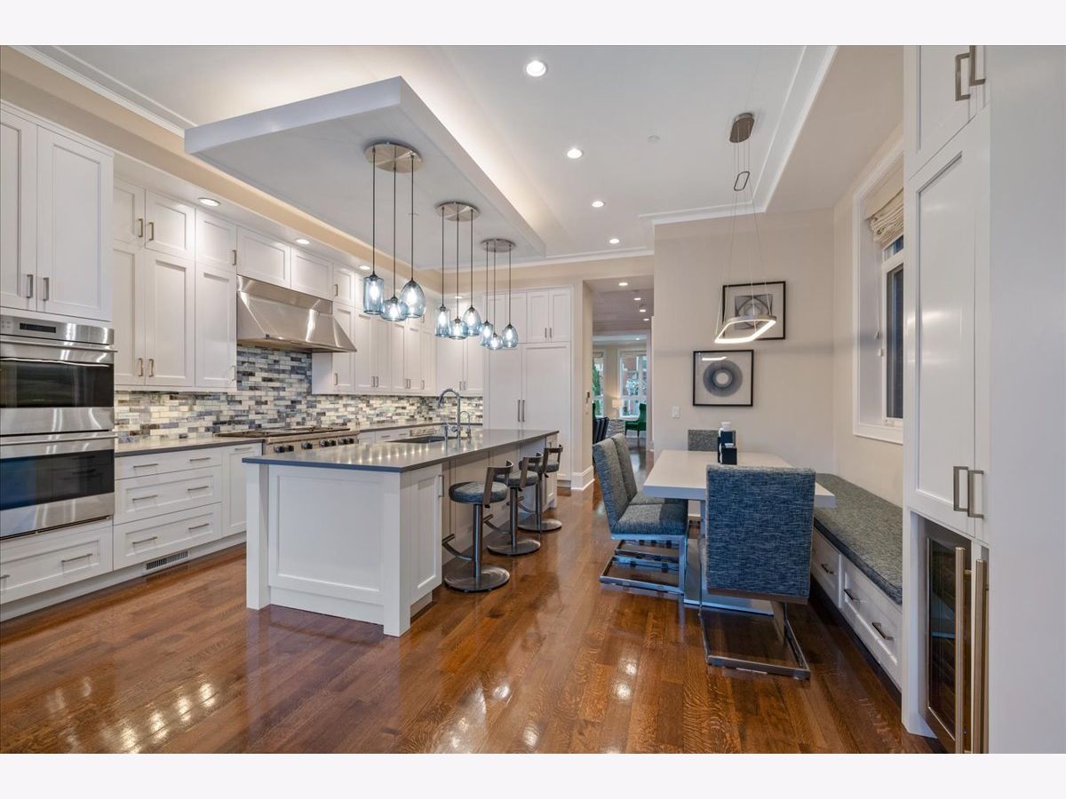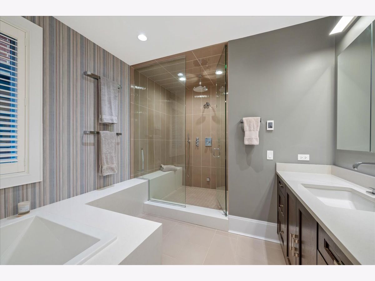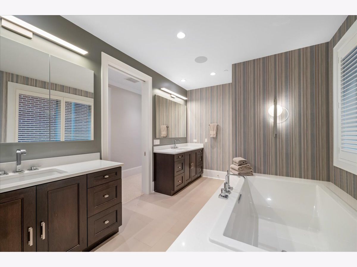 This meticulously updated limestone and brick residence spans four stories and over 5,122 square feet, offering a Extra-wide floorplan built to the full width of the property. Offering six bedrooms and 5.2 bathrooms, plus three completely rebuilt outdoor spaces, including a 900+sf penthouse-level rooftop retreat featuring the Chicago skyline views. Designed for the most discerning buyer, the home features refined custom finishes, custom built-ins, tray and beam ceilings, wainscoting, detailed moldings, soaring ceilings, and a fully integrated automation system that elevates modern living. The light-filled living room and separate dining room are thoughtfully designed with an open layout, complemented by a formal entry and framed by views of the tree-lined street. The upgraded gourmet kitchen serves as the heart of the home, showcasing white cabinetry with integrated lighting, stone countertops with an oversized island, a coordinating backsplash, and a built-in banquette. Enhancements include dual wine refrigerators and a reverse osmosis water filtration system, alongside a full suite of premium appliances, including Wolf double convection ovens, a 48" professional range with griddle, built-in microwave drawer, Dacor hood, SubZero refrigerator and freezer, two Bosch dishwashers, and a beverage center. The family room opens seamlessly to the outdoor spaces, creating a natural flow between indoor and outdoor living. Entertain or unwind on the beautifully renovated, raised patio with cozy fireplace and meticulously landscaped garage rooftop, complete with an aluminum pergola, a gas fireplace with a clad chimney, and both a Lynx gas grill and a Blaze aluminum charcoal grill. Enjoy large-format tiled flooring, an insulated ice chest, custom maintenance-free aluminum louvered fencing, a built-in irrigation system, and layered accent lighting with uplighting. The second floor is thoughtfully designed around an oversized primary suite overlooking the beautifully landscaped rooftop garage deck, offering three walk-in closets, a full wall of custom-built-ins for refined storage and organization, a serene marble spa bath, and two additional private en-suite bedrooms. The top floor features a private office and a fifth en-suite bedroom, offering flexible spaces for both work and comfortable living. Outdoor living is elevated by a fully rebuilt penthouse-level rooftop retreat featuring mahogany composite Azek decking, fiberglass planters, layered architectural lighting, and radiant heating beneath an aluminum-clad pergola designed to extend the entertaining season. Metal privacy screens and integrated irrigation complete this remarkable setting, framed by sweeping city views that define urban luxury. The lower level features a spacious, light-filled family room with heated floors, a sixth bedroom currently used as an exercise room, and a full en-suite bedroom with abundant storage. Laundry facilities are conveniently located on both the second floor and lower level. The home also offers a state-of-the-art infrastructure, including a snow-melt system for the front steps and garage walkway, a highly insulated roof designed by a LEED-certified architect, skylights with UV protection, and high-efficiency HVAC systems. Upgrades include two Carrier AC units, two Daikin DM97 modulating variable-speed furnaces with humidifiers, air scrubbers, purifiers, heat exchangers, and heat pumps, as well as an NTI TRX modulating boiler system with new zoning, pumps, air eliminator, and WiFi-enabled snow-melt controls. Additional improvements include a new ejector pump and water-powered sump pump. Situated in the heart of Lincoln Park, the home is just steps from Armitage's vibrant shopping and dining corridor, Oz Park, and Chicago's lakefront, placing the very best of city living at your doorstep.