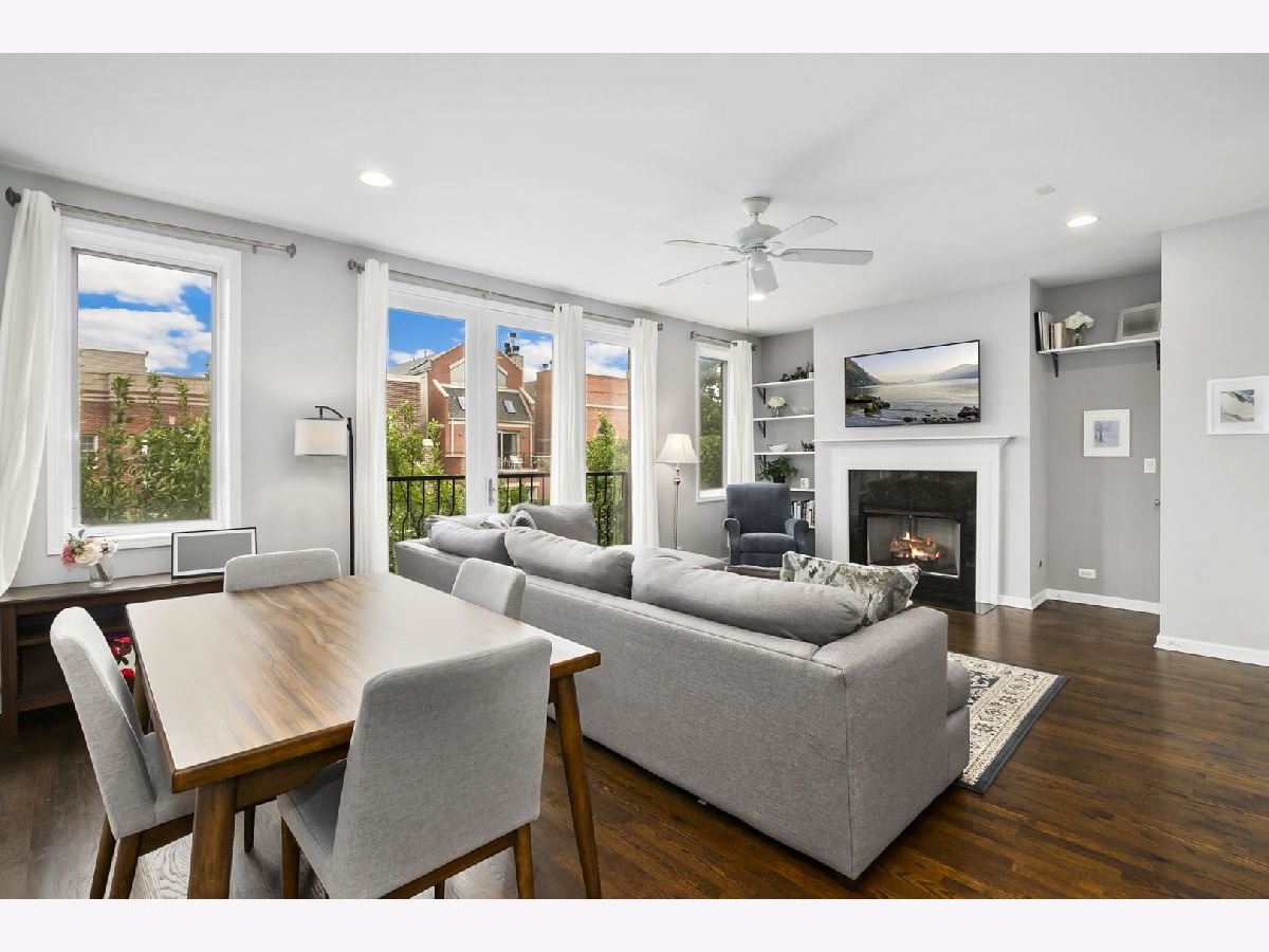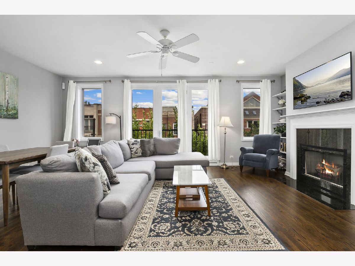 Experience refined city living in this beautifully appointed three-bedroom, two-bath residence nestled in the heart of Chicago's sought-after Roscoe Village/Lakeview neighborhood. Designed with both comfort and style in mind, this sun-filled home welcomes you with a sophisticated open-concept layout ideal for modern living and entertaining. The chef-inspired kitchen features elegant white cabinetry, stainless-steel appliances, and a generous breakfast bar that seamlessly flows into the expansive living and dining area, highlighted by a stunning gas fireplace that creates a warm and inviting focal point. Retreat to the spacious primary suite, complete with a luxurious ensuite bathroom featuring a double vanity and thoughtfully designed finishes. Two additional generously sized bedrooms and a well-appointed full bath offer flexibility for guests, a home office, or additional living space. Additional features throughout the home include rich hardwood floors, in-unit laundry, and a private balcony-perfect for enjoying morning coffee or evening sunsets. Two-car tandem parking is included for added convenience. Perfectly situated just steps from neighborhood favorites including restaurants, boutiques, parks, and grocery stores, with close proximity to Hamlin Park and Feller Park. Enjoy effortless access to public transportation, major highways, and Lake Shore Drive. Located within the highly regarded Jahn Elementary and Lake View High School districts. Moments from the vibrant destinations of Roscoe Street, the Southport Corridor, Wrigleyville, Bucktown, and Chicago's iconic lakefront, this exceptional home offers the best of luxury, lifestyle, and location. A rare opportunity to experience elevated living in one of Chicago's most desirable neighborhoods.
