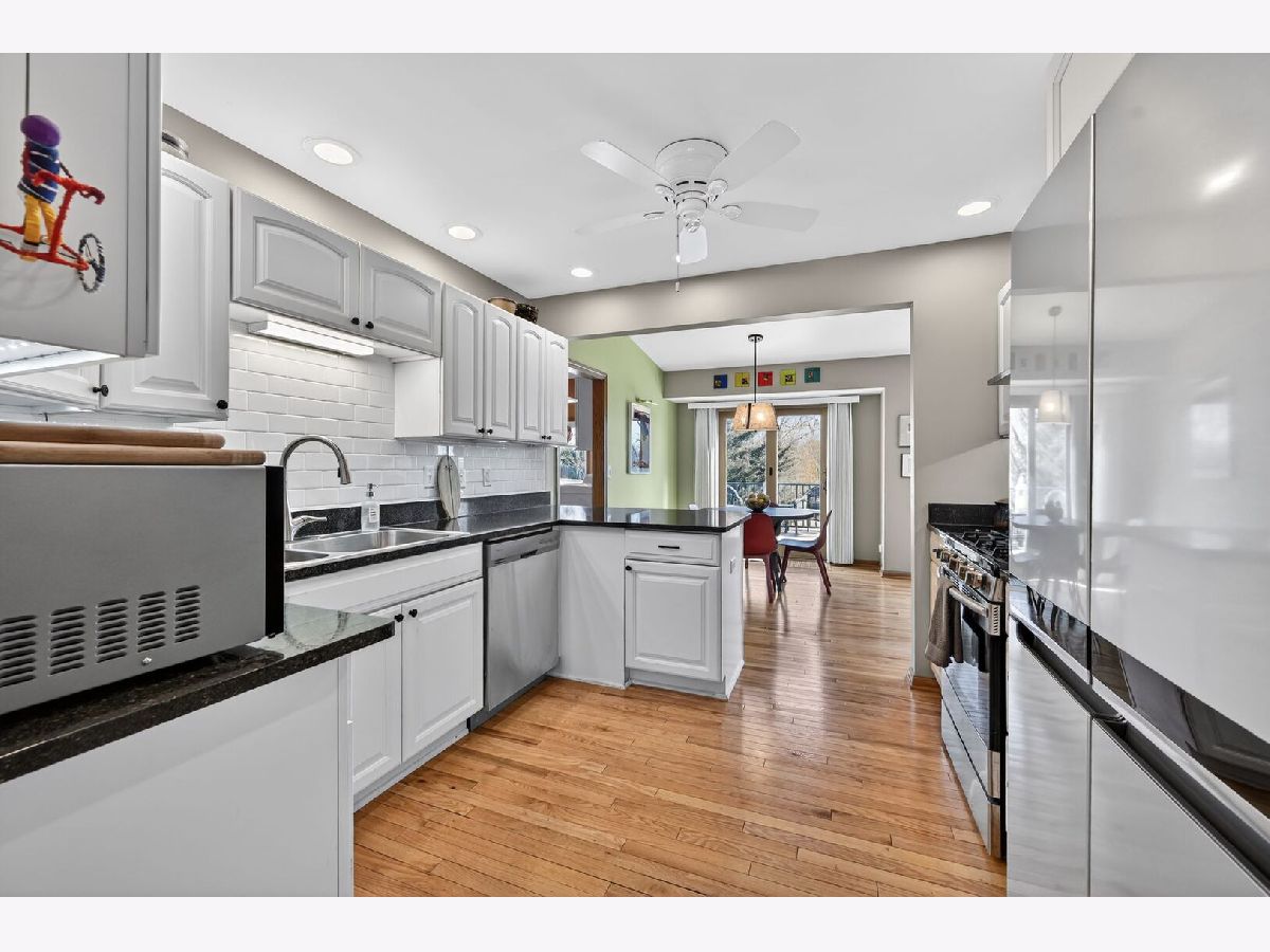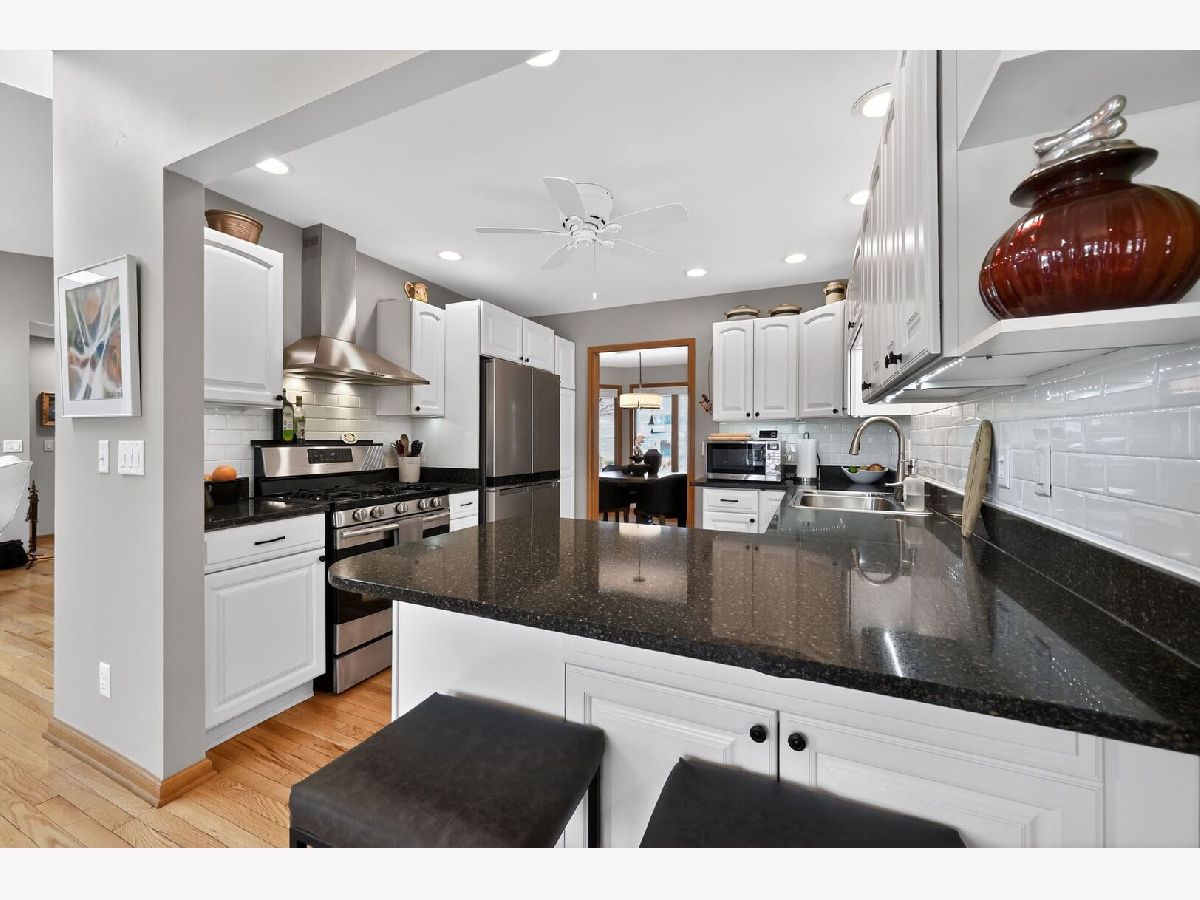 Experience the perfect blend of sophisticated modern updates and ranch-style comfort in this stunning move-in-ready home. Situated on a sprawling, professionally landscaped half-acre lot, this residence offers a rare combination of privacy and neighborhood convenience, just minutes from local shops and dining. As you enter, the foyer opens to gleaming oak hardwood floors and dramatic vaulted ceilings that flow through the main living areas. The heart of the home is the designer kitchen, which features a 2025 refresh including a stylish subway tile backsplash, under-cabinet lighting, a new high-end faucet, and a brand-new Whirlpool four-door refrigerator. The open-concept layout transitions effortlessly from the breakfast nook to a cozy living room anchored by a fireplace with gas logs, all bathed in natural light through new Levolor top-down/bottom-up cordless shades and custom hybrid window coverings. The main level offers three spacious bedrooms with brand-new plush carpeting and two beautifully remodeled bathrooms, including a primary suite designed for relaxation. Extending your living space is a full, finished walk-out basement that serves as the ultimate "flex" area for a home theater, gym, or recreation room, complete with a dedicated additional workshop area. Outdoor living is equally impressive, featuring a new rear deck with upgraded railings, new paver walkways, and a new retaining wall overlooking the massive backyard. Practicality meets luxury with a high-capacity Navien tankless water heater (2022), five linen closets for ample storage, and an oversized garage equipped with a workbench, wall-mounted shop vac, and water spigot. From the newer driveway to the 2025 interior lighting and ceiling fans, every detail of this home has been meticulously maintained and upgraded for the discerning buyer seeking a truly turn-key lifestyle.