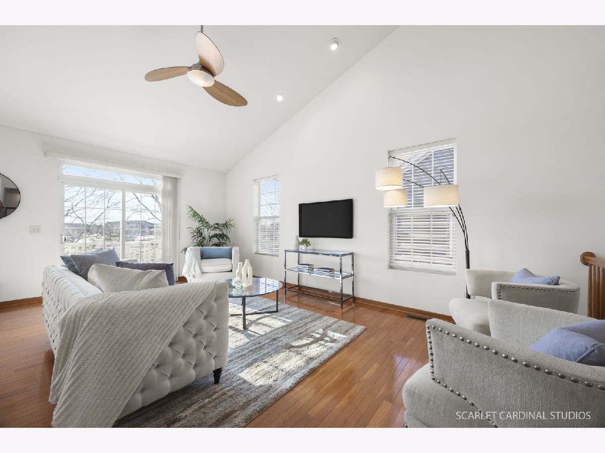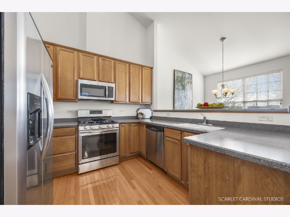 Premium end-unit in desirable North Naperville. This bright and spacious townhouse offers 3 beds, 3 full baths, vast living space with vaulted ceilings, windows galore and abundant storage. Open-concept kitchen is perfect for daily living and entertaining. The large dining and living areas lead to a private balcony overlooking the peaceful treetops and pond. Top grade oak hardwood floors throughout the main floor. Primary suite serves as a true retreat, featuring double vanities, separate shower, whirlpool tub, and expansive walk-in closet. Large 2nd bedroom and full bath also located on the main floor. Lower level expands your living options with a bright and cozy family room with more windows all around, third bedroom/office, full bath, laundry room, and attached oversized 2-car garage. Complimentary guest parking onsite. Common picnic area with volleyball court. Ideal location! Near Metra and major highways. Minutes from Downtown Naperville and Route 59 corridor. All the shopping and dining you need. Top-rated Naperville schools. Meticulously maintained with newer roof. Truly move-in ready and low maintenance living at its best. Time to call this home sweet home.
