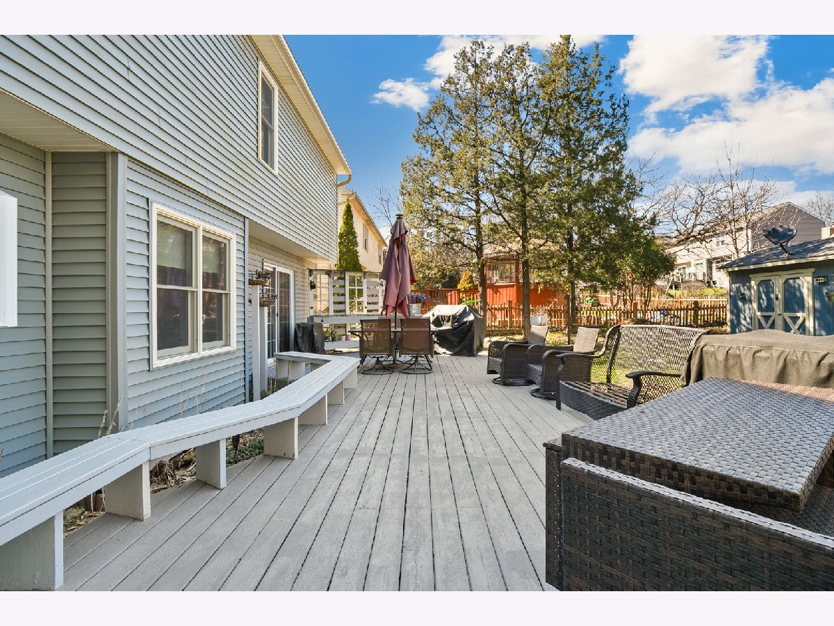 Experience this beautifully updated 2-story colonial in Century Oaks West. Spanning over 2,000 sq. ft., this 4-bedroom, 2.1-bathroom home is move-in ready with extensive recent upgrades. A charming covered front porch leads into a main level featuring crown molding, neutral paint, and stunning hardwood floors. The heart of the home is the updated kitchen with Schrock cabinetry, granite counters, 2019 black-stainless steel appliances, a 2024 refrigerator, & custom built-in seating. The updated family room features a refaced fireplace and views to the expansive fenced yard. The upper level holds four spacious bedrooms, including a primary suite with dual closets and private ensuite. The primary bathroom offers a brand new vanity, fresh grey paint, blue-tooth speaker/vent, & ample natural lighting. Guests will love their upgraded bathroom featuring a brand new vanity, mirror, light fixture, & fresh neutral paint. The finished basement adds significant living space with a recreation room, ample storage, and new carpet (2023), plus a 2024 pantry and updated laundry room. Major systems include a new furnace (2021) and A/C (2021). Entertain with ease in the spacious fenced yard offering an oversized deck, perennial garden, dedicated veggie garden, & custom outdoor bar/potting bench. Just blocks from the Big Timber Metra, Century Oaks Park, & Sherman Hospital. Neary major shopping, restaurants, & entertainment. Quick access to 90, 20, & Randall.