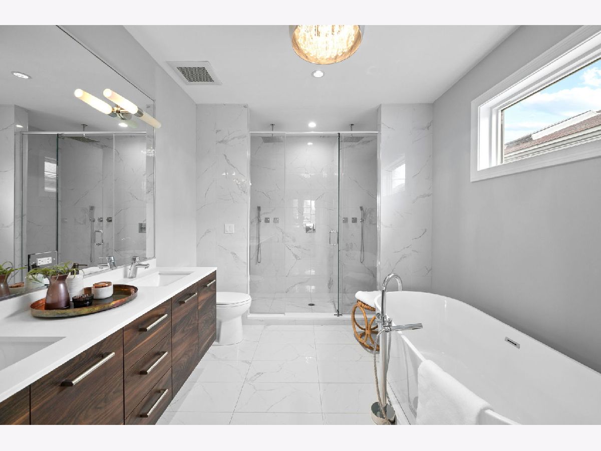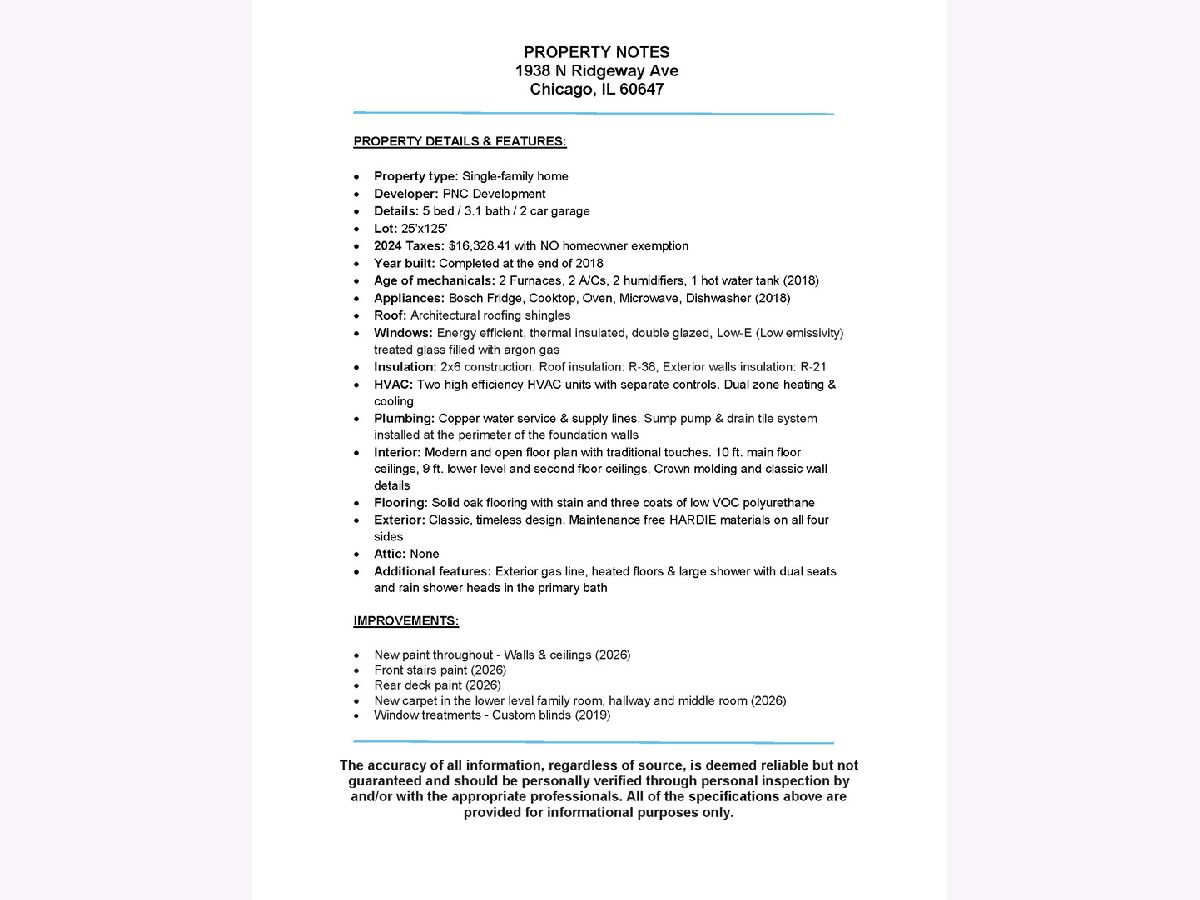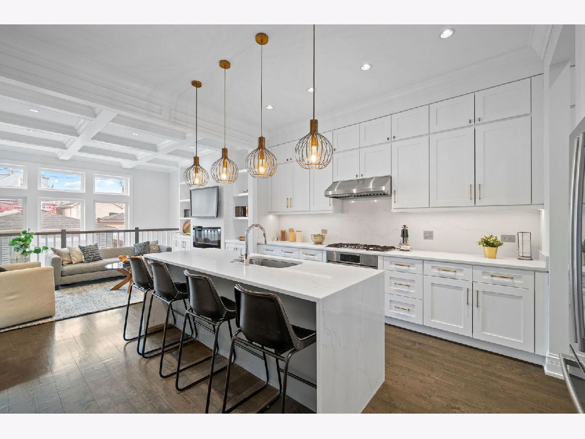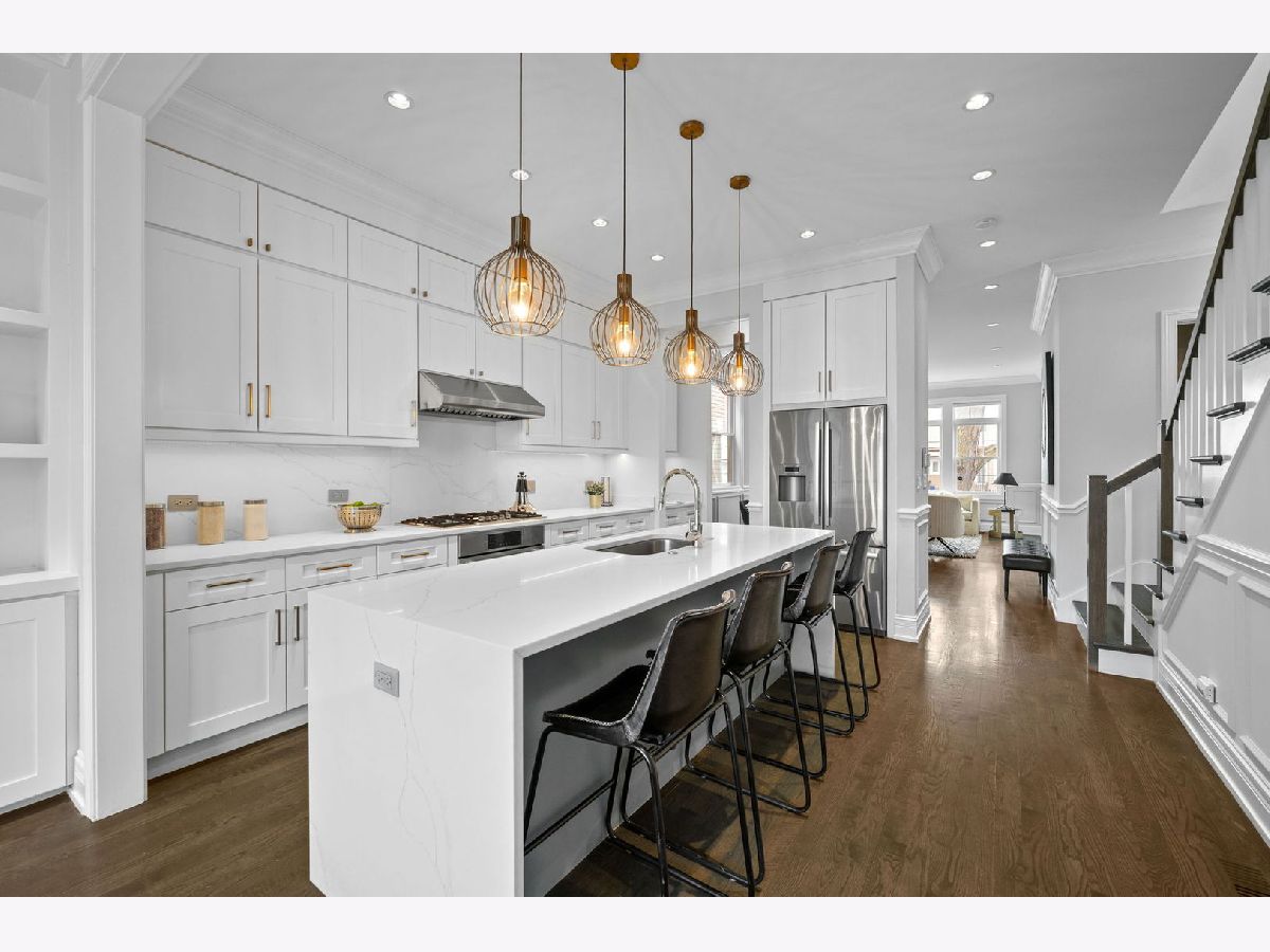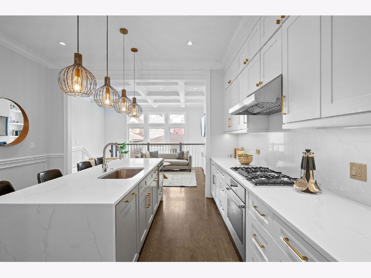 * Check out the video & the 3D tour of this home * Steps from the 606 trail in desirable Logan Square, this stunning & classy 2-story, 5-bedroom, 3.1-bath single-family home is ready to welcome you. Sitting on a 25'x125" lot, the fenced-in yard and patio off the home's family room are an entertainer's dream & perfect for grilling, relaxing, and watching your plants grow. This home has character and offers the perfect blend of modern architecture, classic charm, and craftsmanship. The main level features an open & airy floor plan complemented by traditional touches, wainscoting, classic wall details, coffered ceilings, crown molding, & designer finishes. Large living room & dining room showcasing a gas fireplace with stone surround, kitchen with single-panel designer cabinetry with elegant hardware, full-height tile backsplash, high-quality quartz countertops, large island with waterfall detail, Bosch appliances, butler's pantry, large pantry, powder room, and family room with built-in shelving & electric fireplace. Walk up to the 2nd level to the spacious master suite with vaulted ceilings, dual walk-in closets, & a spa-like master bathroom with heated floors, dual vanities, an elegant soaking tub, & a large shower with dual seats & rain shower heads. Two additional inviting bedrooms, a separate bathroom with a tub/shower featuring custom tilework, and a bright hallway with two skylights complete the 2nd level. Bright lower level with 2nd family room, wet bar, 2 additional guest bedrooms (office and gym), full bath with luxurious walk-in shower, large laundry room with sink and plenty of storage. Other features include high-efficiency mechanicals with two zones, a humidifier, a sump pump, an ejector pump, cathedral ceilings, a full Hardie board exterior, hardwood floors, a rear brick paver patio with a dedicated gas line, a two-car garage & new paint throughout. (Ask your agent for the full list of improvements.) This impeccable home is NOT a flip or investor-owned; it was maintained with meticulous attention to detail for the seller's use and still looks and feels brand new. Fall in love with all that Logan Square has to offer. Unbeatable location! One block from the 606 trail entrance & YMCA. Extremely walkable to public transit, popular restaurants/bars/retail, coffee shops, farmers market, & abundant green space. Welcome home!