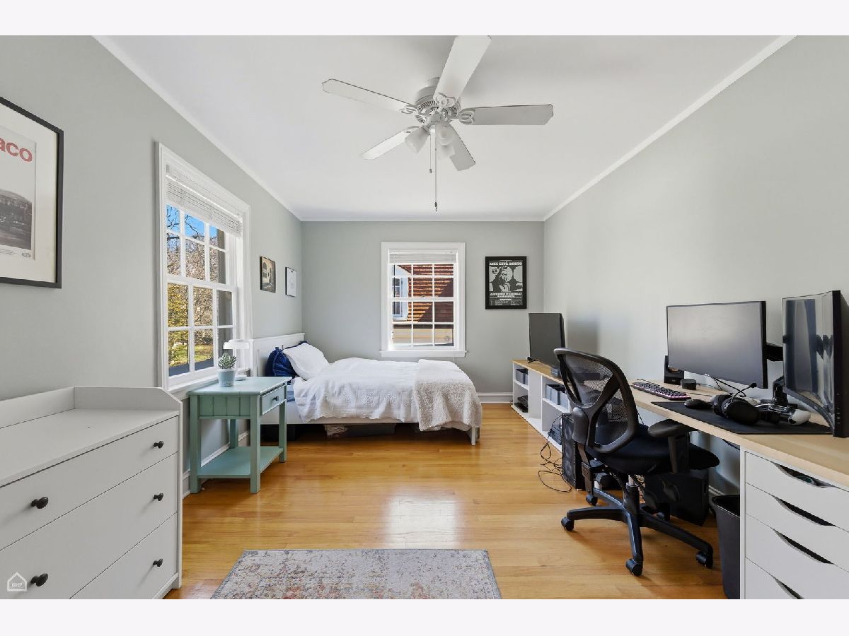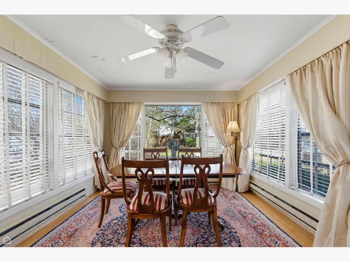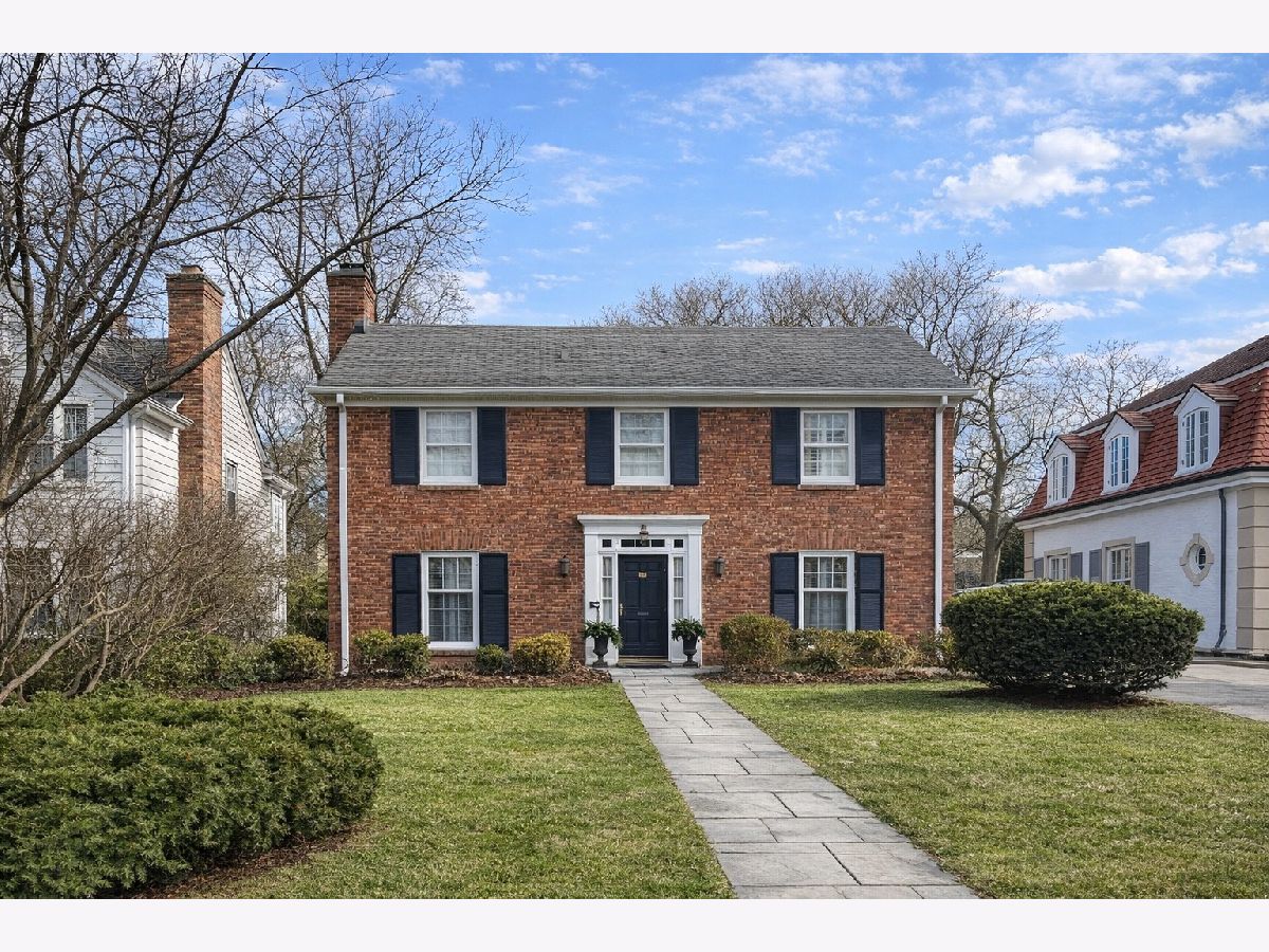 Set on one of Kenilworth Gardens' most desirable streets, this charming center-entry brick Colonial offers warmth, space, and an unbeatable location. The welcoming living room features a fireplace with marble surround, while the sunny dining room overlooks the yard and deep lot with room for expansion. A first-floor office adds flexibility, and hardwood floors throughout, along with high-end curtains, bring style and continuity to the home. The DeGiulio kitchen is well appointed with a Viking oven, Bosch dishwasher, two wall ovens, and a breakfast nook. The spacious primary bedroom includes a full bath, and a cedar closet in the hallway adds a special touch. The basement, fully rehabbed in 2021, provides exceptional additional living space with a fireplace, kitchenette with wine cooler, abundant storage, and two washers and two dryers. Complete with a sprinkler system, 2-car garage, and walk-to-train convenience, this property is being sold as is.