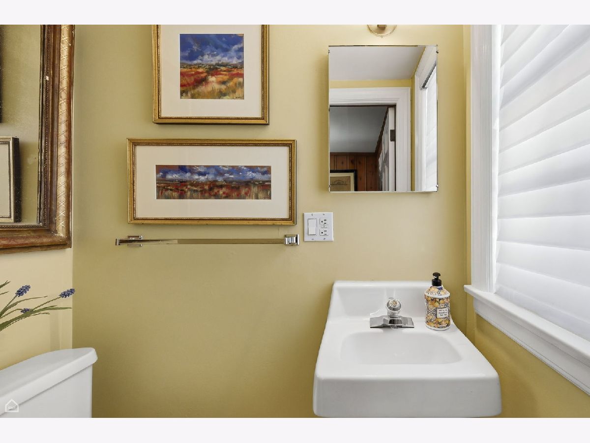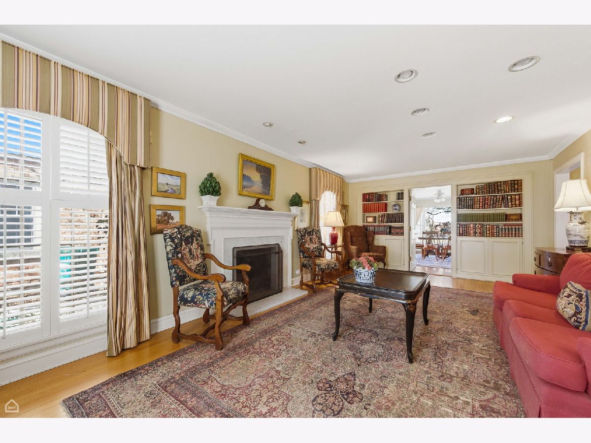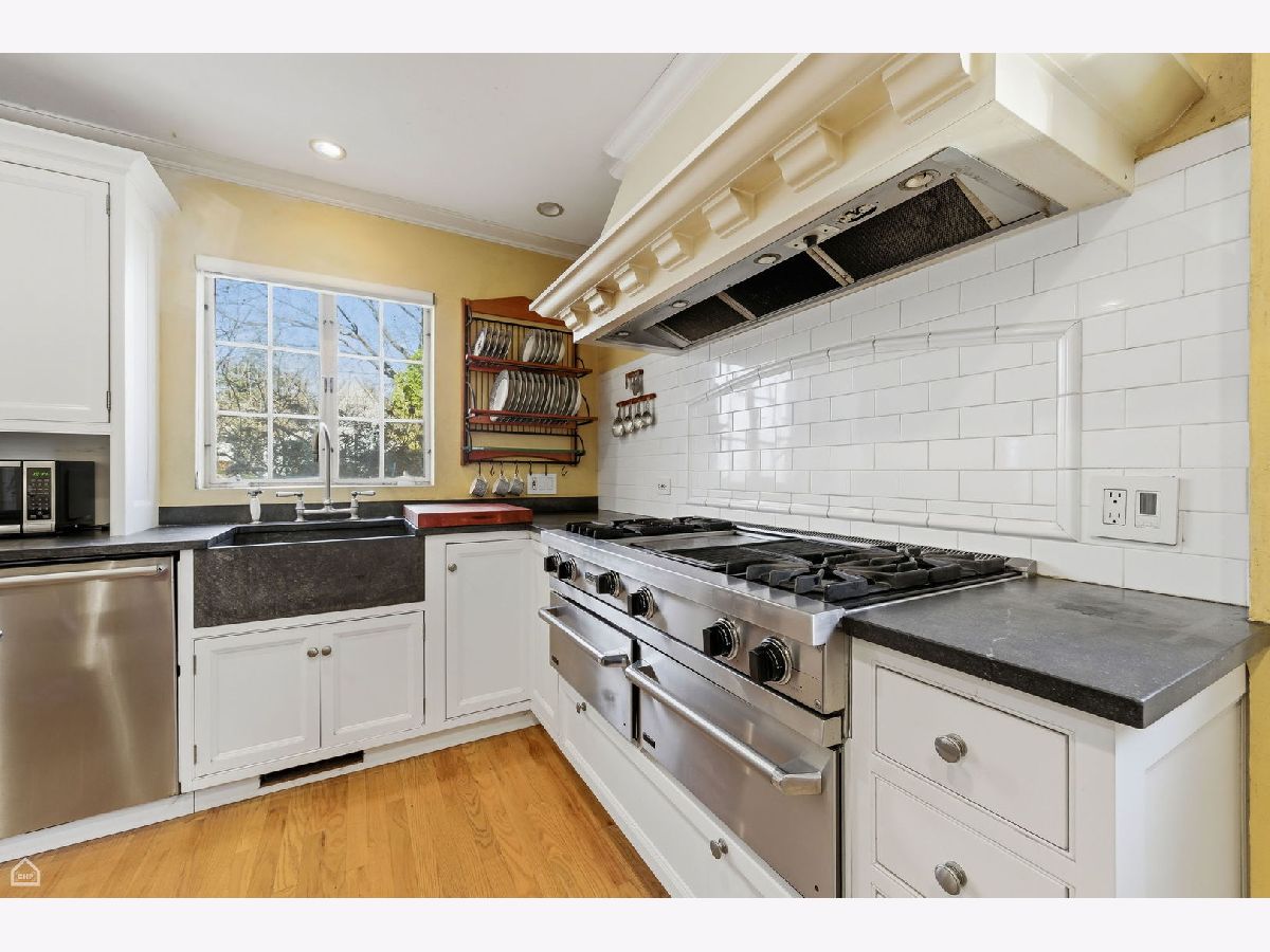 Set on one of Kenilworth Gardens' most desirable streets, this charming center-entry brick Colonial offers warmth, space, and an unbeatable location. The welcoming living room features a fireplace with marble surround, while the sunny dining room overlooks the yard and deep lot with room for expansion. A first-floor office adds flexibility, and hardwood floors throughout, along with high-end curtains, bring style and continuity to the home. The DeGiulio kitchen is well appointed with a Viking oven, Bosch dishwasher, two wall ovens, and a breakfast nook. The spacious primary bedroom includes a full bath, and a cedar closet in the hallway adds a special touch. The basement, fully rehabbed in 2021, provides exceptional additional living space with a fireplace, kitchenette with wine cooler, abundant storage, and two washers and two dryers. Complete with a sprinkler system, 2-car garage, and walk-to-train convenience, this property is being sold as is.