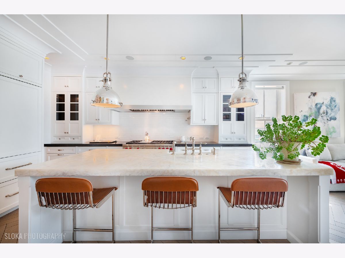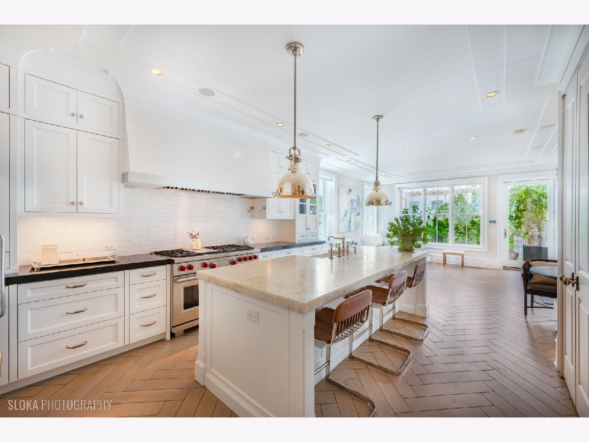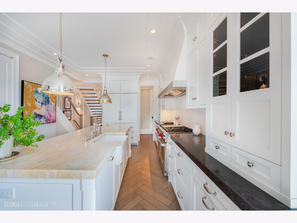 This extraordinary penthouse, built as the developer's personal residence, is being offered for the first time and is a rare opportunity to own this masterpiece crafted by the highly acclaimed developer - PLD Homes. Nestled in the highly desirable Southeast Lincoln Park. Boutique condo building with just 2 units.This luxurious home offers an unmatched living experience, with a private elevator, a 3-car heated attached garage, and expansive living spaces that rival those of a single-family home. Bright & Airy: With east, west, and south exposures, natural light floods the space throughout the day, highlighting the modern classic interior design that blends traditional elements with contemporary flair. The dual custom floating staircases are a striking focal point of the interior, paired with rift cut oak, herringbone, heated floors bringing warmth and elegance. No expense was speared, House of Rohl plumbing fixtures, exotic marble limestone, quartzite surfaces and countertops as well as an extensive trim work throughout add a layer of refinement. Multi-zone climate control, steam-forced central humidifier, and two domestic water heating systems ensure comfort and convenience. Chef's Kitchen:State-of-the-Art Appliances: Equipped with 2 Sub-Zero fridge/freezer columns, a 48" Wolf dual fuel range with griddle, and an external blower, 1200 CFM hood. Two Miele dishwashers, farmer's sink and a Pantry/Butler's pantry with an additional prep sink make this kitchen a chef's dream. An Iceberg countertop completes the room. A dramatic, oversized wood-burning fireplace with a French limestone mantel anchors the family room, while a wall of windows with south and west exposure floods the room with natural light. Motorized roller shades. The living and dining rooms boast ample space, enhanced by a built-in wet bar in rich, dark chocolate brown, rift cut oak with a dual-control Sub-Zero wine fridge. Cove lighting and custom sheers elevate the ambiance. Gracious double door into the primary suite, featuring 4 closets including a shoe closet with an inconspicuously built in custom beveled mirror. Primary bathroom exudes opulence with steam shower, free standing tub, and double vanity, enclosed water closet with washlet seat and custom paneling. Directly off the kitchen and family room, the 15'x10' terrace is an urban oasis. Ipe decking, pergola, privacy fencing, and professional landscaping with a sprinkler system create a serene environment. Gas, electric, and water connections, perfect for outdoor living and entertaining. Atop the building, the rooftop with sweeping city views is a private oasis. Enjoy the covered space with wet bar, dishwasher, sink, and beverage center, along with Ipe decking, a privacy fence, TV, and speakers. Mature landscaping, a lawn sprinkler system, and even a dog potty space make it a truly unique, luxurious outdoor retreat. Just steps from one of the largest and most enchanting parks in the city of Chicago at the Lincoln Park Zoo, farmer's market, lakefront, and vibrant dining and nightlife options in Lincoln Park, Old Town and downtown, this location is unparalleled. With easy access to public transportation, you're minutes away from everything the city has to offer.