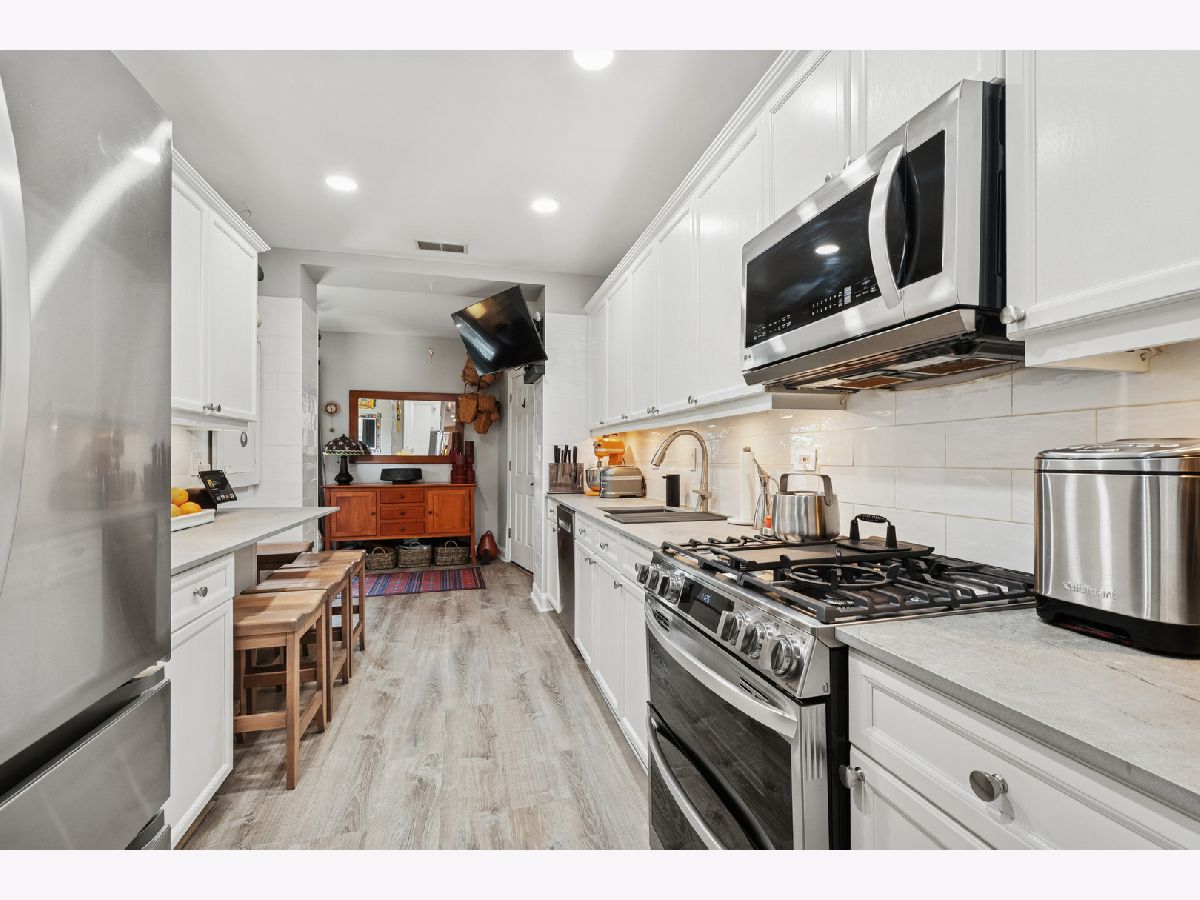 Sunny and spacious 2 bedroom 2 bath condo in Rogers Park with a New kitchen (2023) equipped with top-of-the-line appliances and finishes. From the LG Double oven (2025) and Refrigerator (2024), Bosch dishwasher (2023) to the stylish and durable sintered stone countertops, and breakfast bar, you'll love every feature. Adjoining the kitchen is an additional cozy space that walks out onto the deck. The extra large primary bedroom includes a huge walk-in closet and a gorgeous 'en suite. Completely remodeled (2025) top to bottom including new copper plumbing. A stunning walk-in shower complete with rain shower with custom tile. Lighted mirror, vanity & Toto bidet toilet. The extra-wide, light filled living room has a gas fireplace, an abundance of windows and tasteful lighting. The second bedroom is large enough for a queen-sized bed. Central air and heating provide comfort year-round. You'll love this spacious and sunny deck, large enough for entertaining. Laundry is a breeze with a Full-sized, in-unit LG W/D (2025) that includes extra-large storage and shelving. Closets galore throughout the condo. Every detail has been thought of, from additional outlets placed throughout, shelving, thoughtful accents and lighting. This pet friendly building is self-managed and has strong reserves. A PARKING SPOT is also included! Conveniently located near great restaurants, shopping, multiple CTA busses, trains and Metra. Less than 10 minutes from Evanston and the Lake!