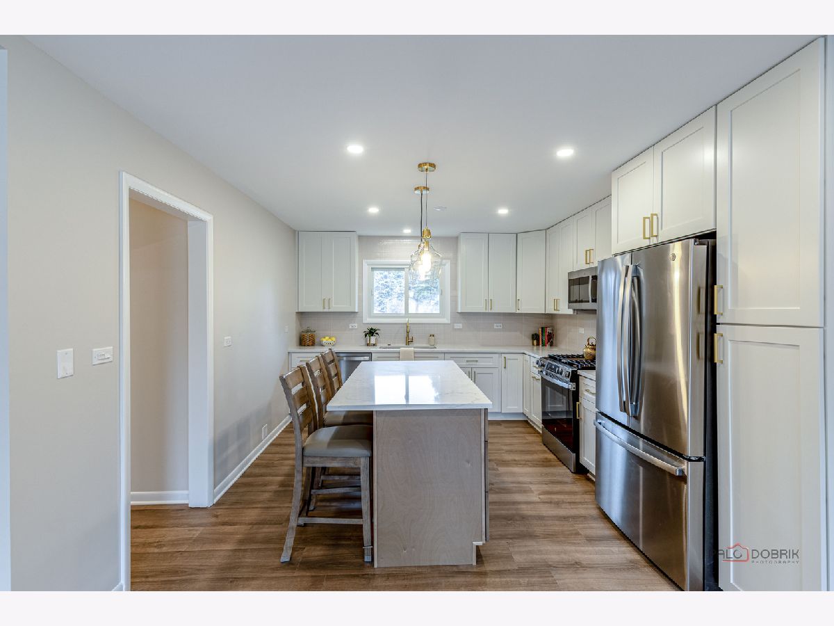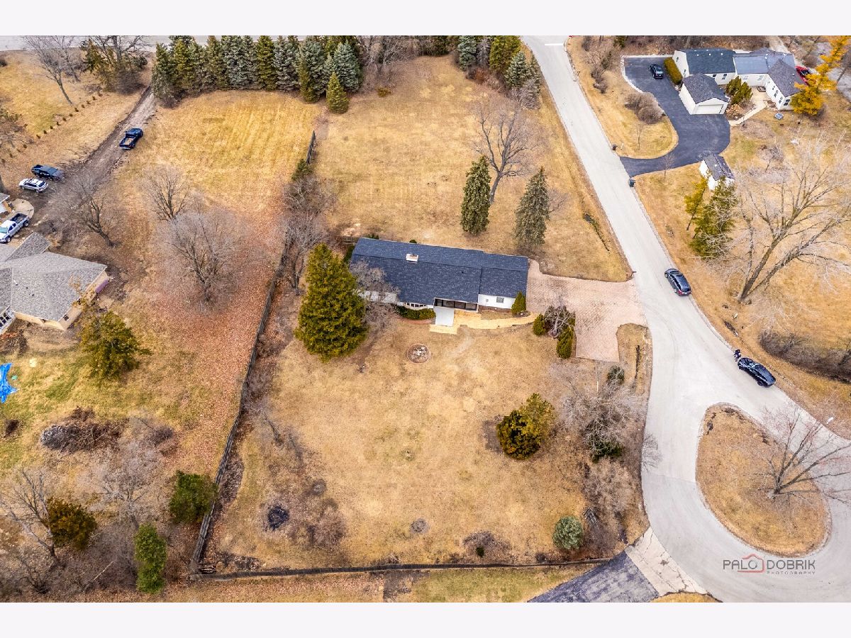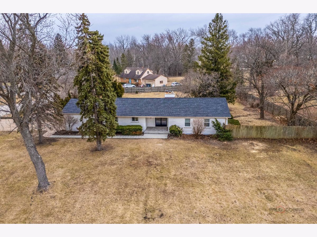 COMPLETELY REMODELED, TURN-KEY RANCH ON A PRIVATE 1.28-ACRE CUL-DE-SAC IN TOP-RATED SCHOOL DISTRICTS! This beautifully reimagined home blends today's most sought-after finishes with a functional layout - all just minutes from Independence Grove, the Metra, I-94, shopping, and dining, and located in the highly acclaimed Oak Grove Elementary and Libertyville High School districts. From the moment you arrive, the fresh limewashed brick exterior creates a crisp, modern first impression, complemented by a NEW roof, NEW windows, NEW A/C, and an inviting NEW screened-in porch (all 3 months new). Inside, brand-new luxury vinyl plank flooring flows seamlessly throughout the home, complemented by fresh paint in today's trending color palette, while new fixtures and thoughtful upgrades enhance every space. Front and center, the sun-drenched living room showcases a large bayed window and a dramatic floor-to-ceiling stone fireplace with raised hearth offering the perfect focal point for everyday living and entertaining. The completely remodeled designer kitchen (2026) is a standout feature, offering gorgeous quartz countertops, a center island with breakfast bar seating, stainless steel KitchenAid appliance package, and ample space for a dining table. A sliding door leads to the screened-in porch, creating seamless indoor-outdoor living where you can enjoy meals while taking in sweeping views of your expansive backyard all while being comfortably sheltered from the elements. When it's time to unwind, the primary suite offers a cozy desk nook, barn door entry to a large walk-in closet with custom shelving, and a beautifully updated private bath featuring a dual-sink vanity and tiled shower. Two additional bedrooms, two additional fully remodeled baths, and a convenient laundry area with new washer and dryer complete the main level. The finished basement offers incredible bonus living space, featuring white brick walls, modern ceiling, luxury vinyl floors, a spacious rec room with a wood-burning fireplace, wet bar, half bath, and flexible areas ready for your home gym, office, or hangout space. Additional highlights include an attached 2-car garage, an extra-long paver driveway with side apron providing abundant parking, and brand new electrical panel. Move-in ready, extensively updated, and ideally located; this is the one that checks every box.