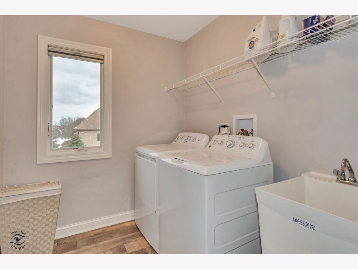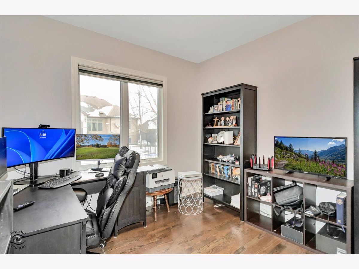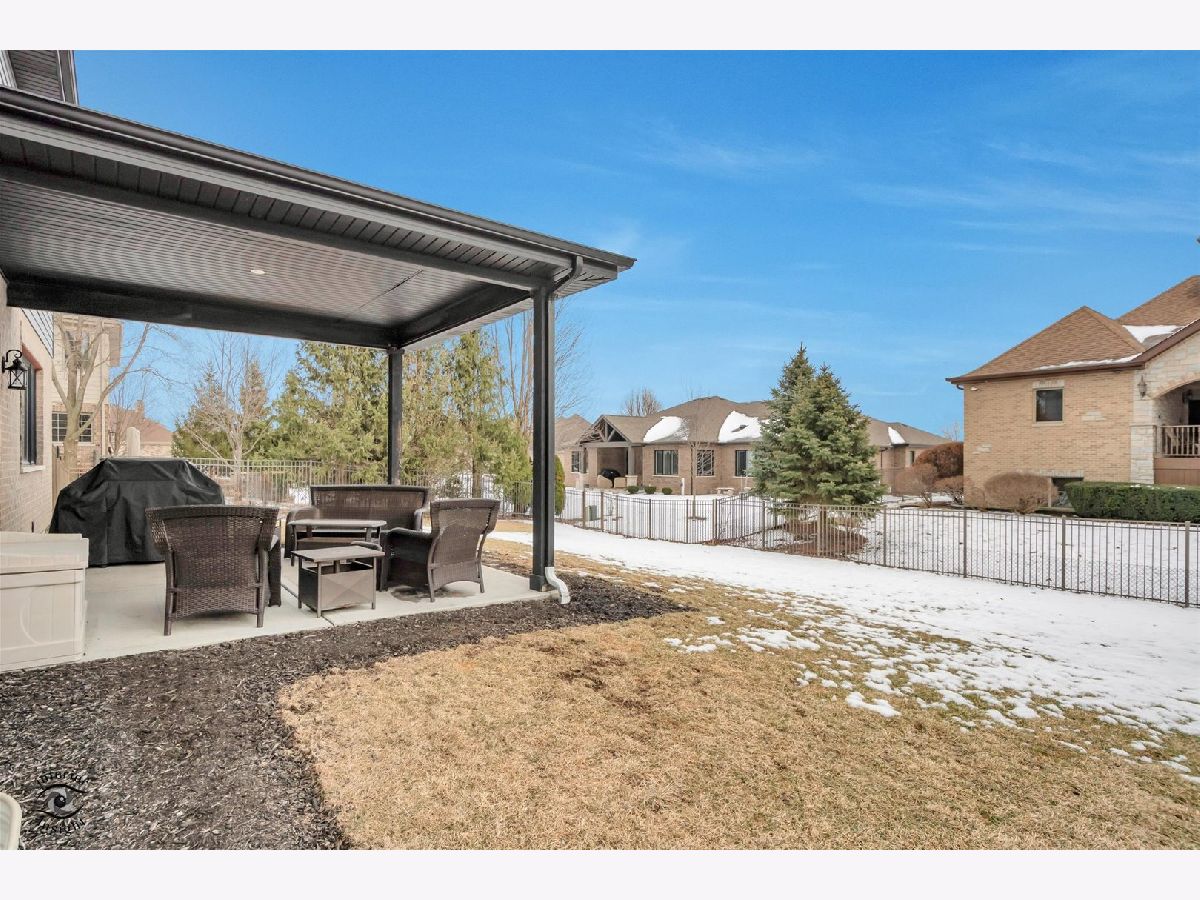 Now available in the highly sought-after Water Chase Estates of New Lenox, this gorgeous custom Camelot-built home (2018) is loaded with premium upgrades and thoughtful design throughout. The striking exterior showcases stone and upgraded siding, enhanced by upgraded garage doors and a spacious 3-car garage. Step into the large, fully fenced backyard featuring a covered patio, perfect for relaxing or entertaining. Inside, the home impresses with hardwood flooring and an open, entertainer-friendly main level. The chef's kitchen offers abundant 42" cabinets with crown molding, granite countertops, a subway tile backsplash, large center island, generous dining area, and a walk-in pantry. Additional main-level highlights include a private office, convenient mudroom off the garage, and excellent natural light throughout. Upstairs, enjoy the convenience of second-floor laundry near the bedrooms. The spacious loft-originally an optional fourth bedroom-can easily be converted if desired. The primary suite is a true retreat, featuring a tray ceiling, huge walk-in closet, and a luxurious ensuite bath with dual sinks, built-in vanity, and a large, tiled shower with bench seat and glass doors. The full basement offers incredible potential with 10-foot ceilings, thick foam insulation for exceptional temperature control, a Honeywell Zone control panel, and rough-in plumbing for a future bathroom. Ideally located in the award-winning Lincoln-Way Central School District, this home is close to shopping, dining, and easy access to I-80-combining luxury, comfort, and convenience in one exceptional property.
