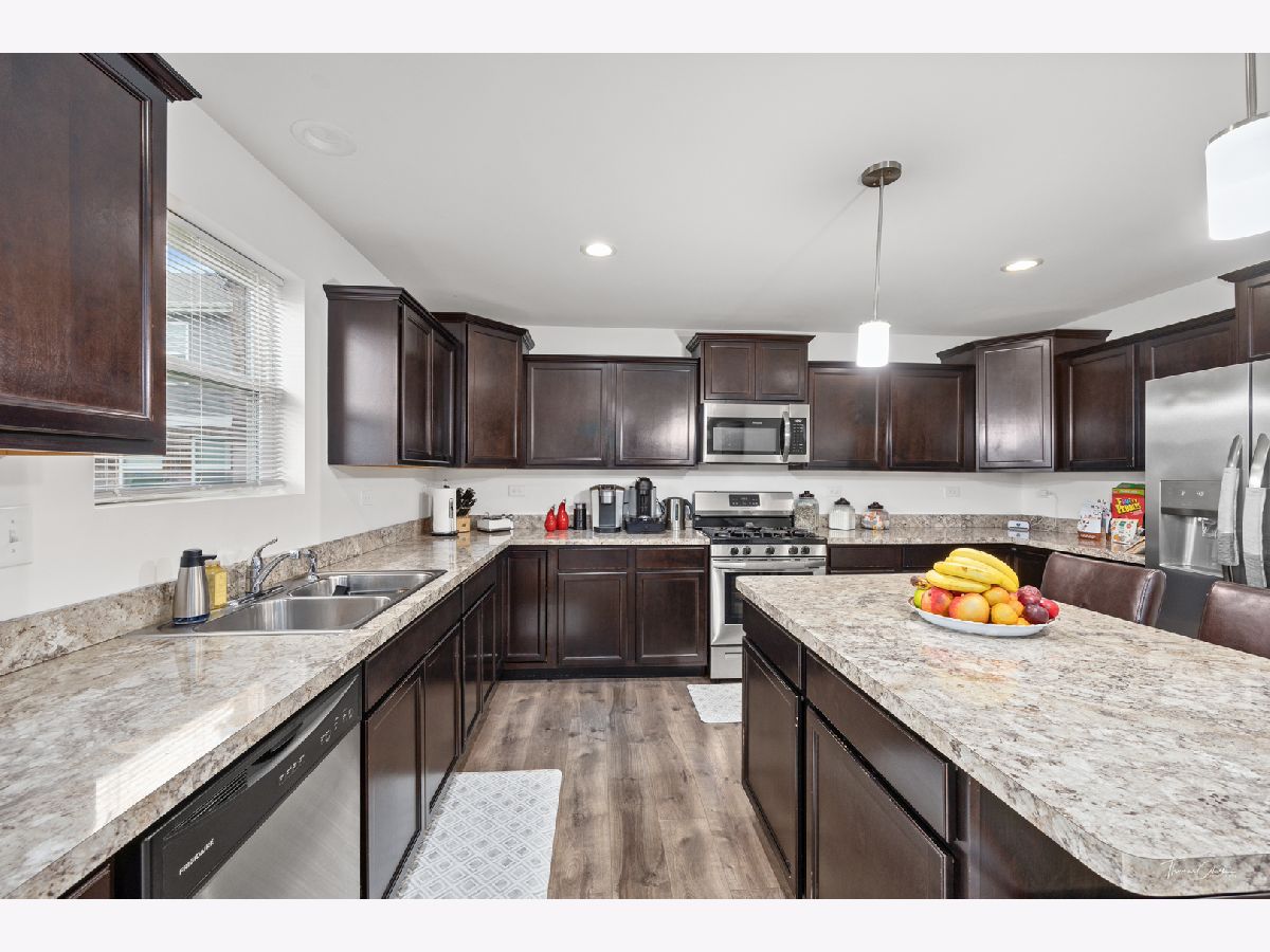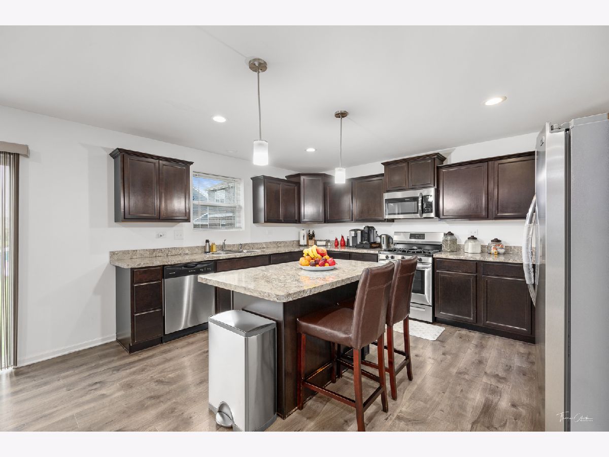 Stunning 3 bed, 2.5 bath home in the Bristol Park subdivision in New Lenox checks all the boxes! This 2018 home features a 2-car garage, family room, flex room, and unfinished basement with limitless possibilities. Spacious kitchen features designer cabinets, recessed can lighting, convenient pantry, abundant granite counter space, stainless steel appliances, and island with pendant lighting overlooking open concept breakfast and family room areas. Private master bath with transom window. Architectural shingles and elegant brick detail on exterior! All located in the highly-rated New Lenox school district.