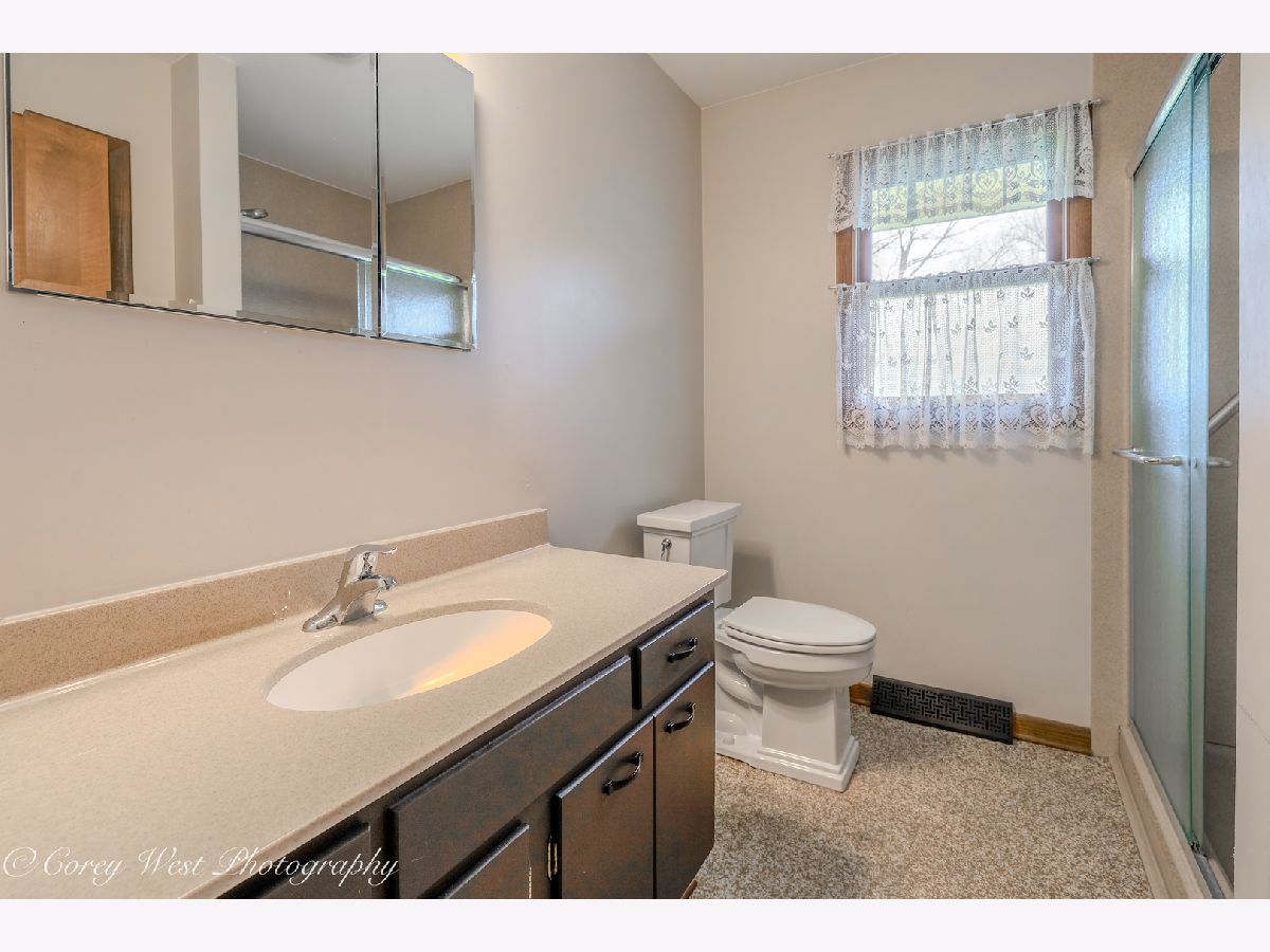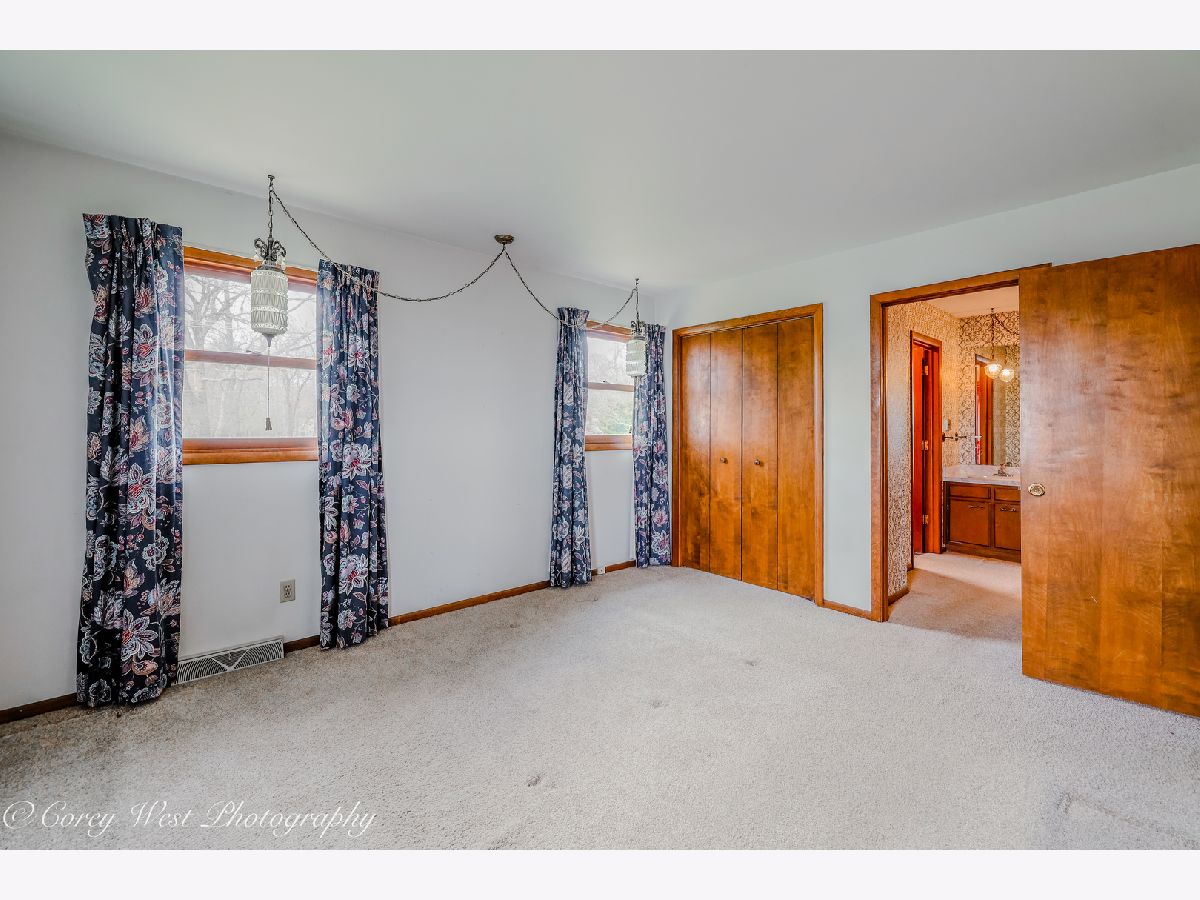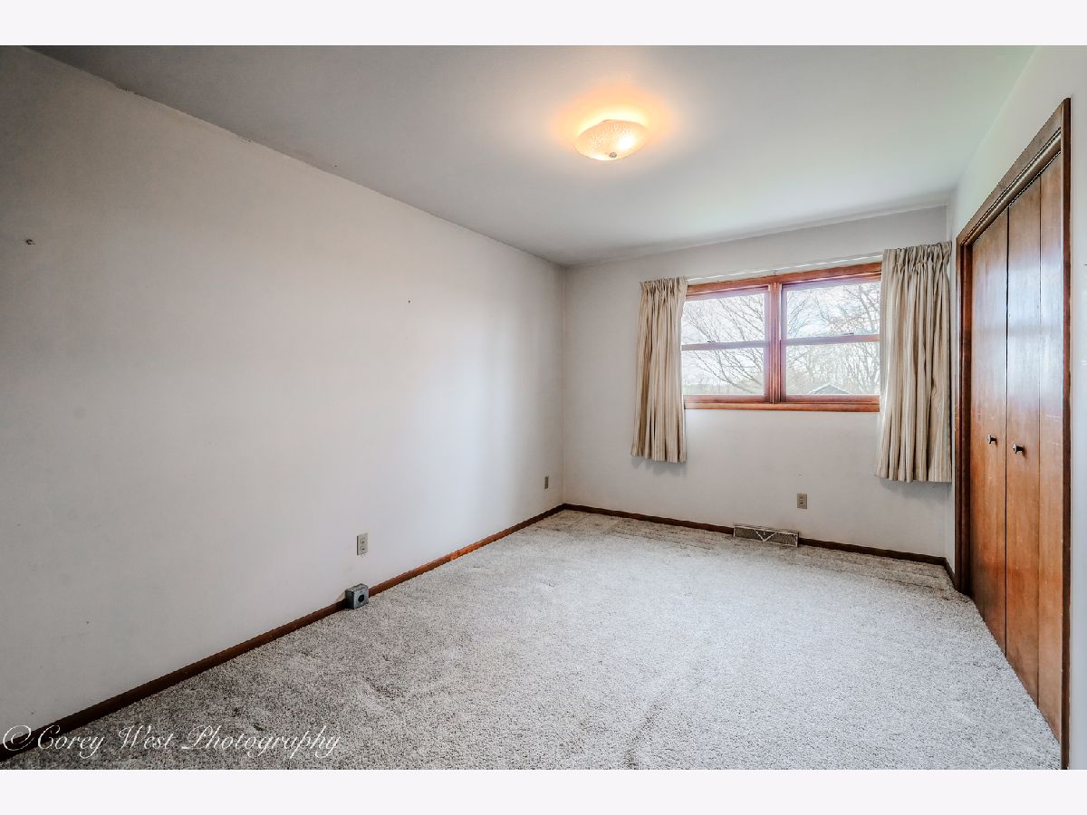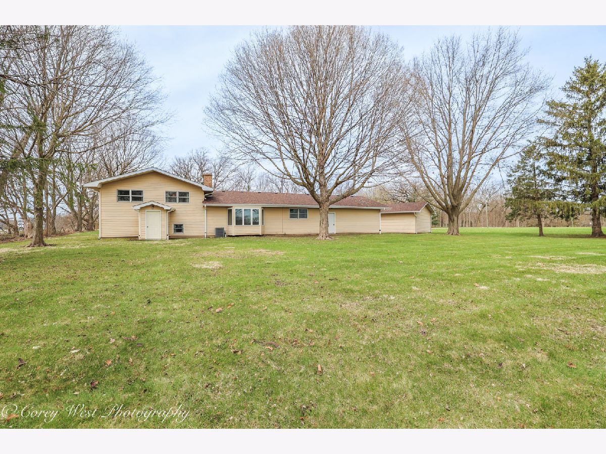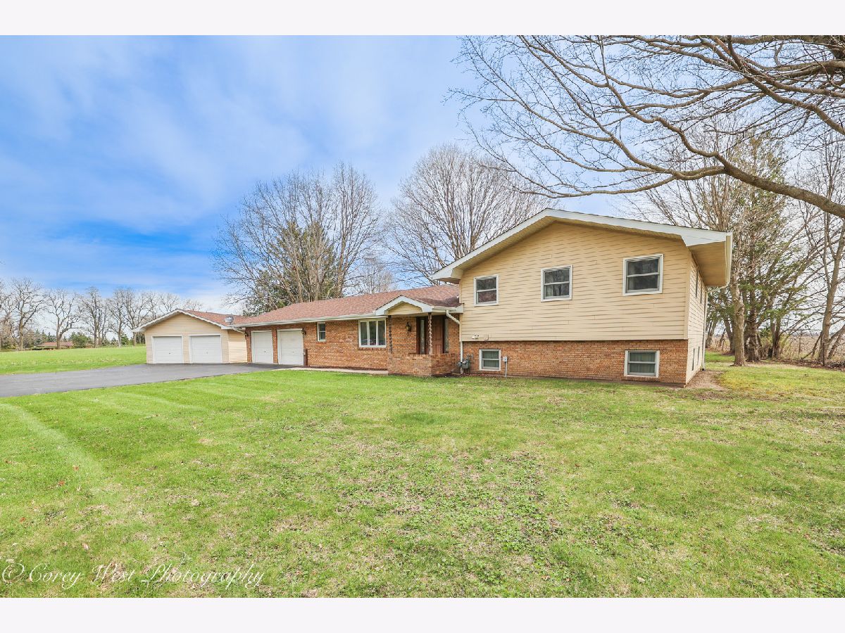 Enjoy a touch of country living in this well-loved, one-owner home. A welcoming foyer opens into a spacious living room featuring a custom brick fireplace with built-in shelving and serene views of the surrounding farmland. The kitchen offers ample cabinet space, all appliances, and generous counter space, along with room for a large dining table-perfect for gatherings. The main level also includes a versatile bedroom or office and a updated full bath. Upstairs the master bedroom provides shared access to a full bath with a separate vanity area for added convenience. Two additional generously sized bedrooms complete the second level. The walkout lower level is ideal for entertaining or relaxing, featuring a second brick fireplace (with gas line available), a full wet bar with included barstools. You'll also find a laundry/mechanical room and access to a large crawl space offering excellent storage. Home has a central vacuum system for your convenience. Additional highlight is the detached 26x23 two-car garage, perfect for hobbies, storage, or a workshop complimented by a long driveway and side apron that provides abundant parking. Conveniently located near forest preserves, shopping, and interstate access, this home is ready to welcome its next owner.