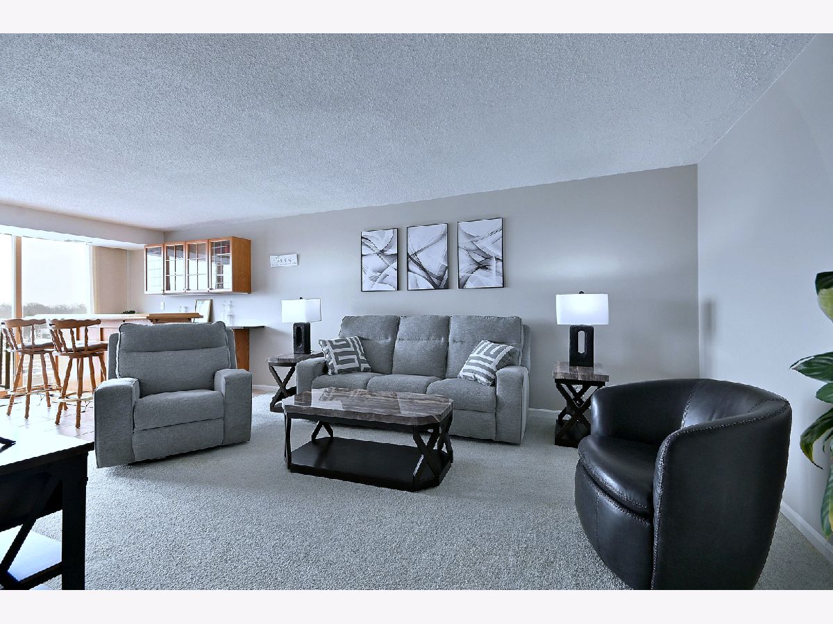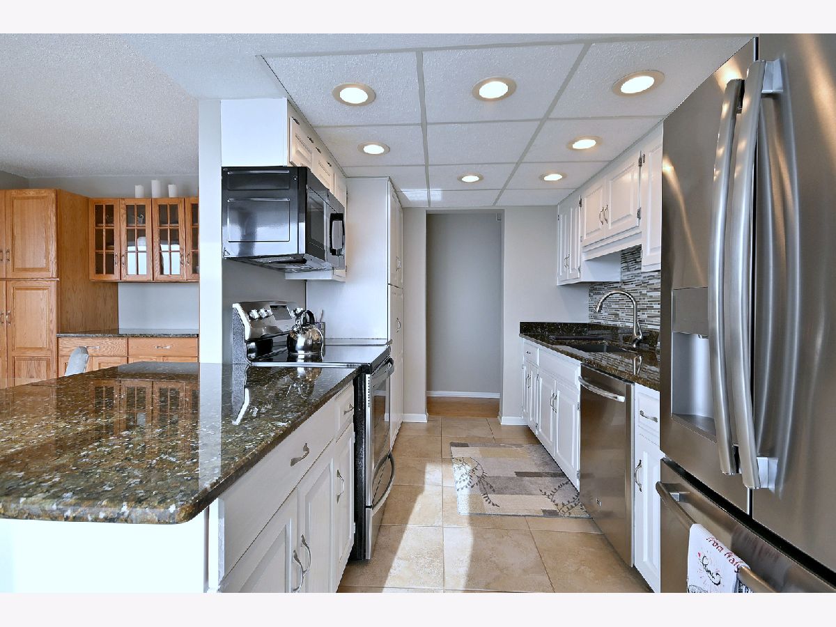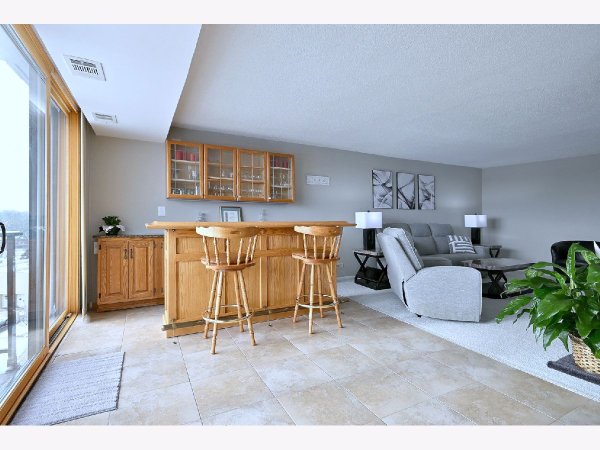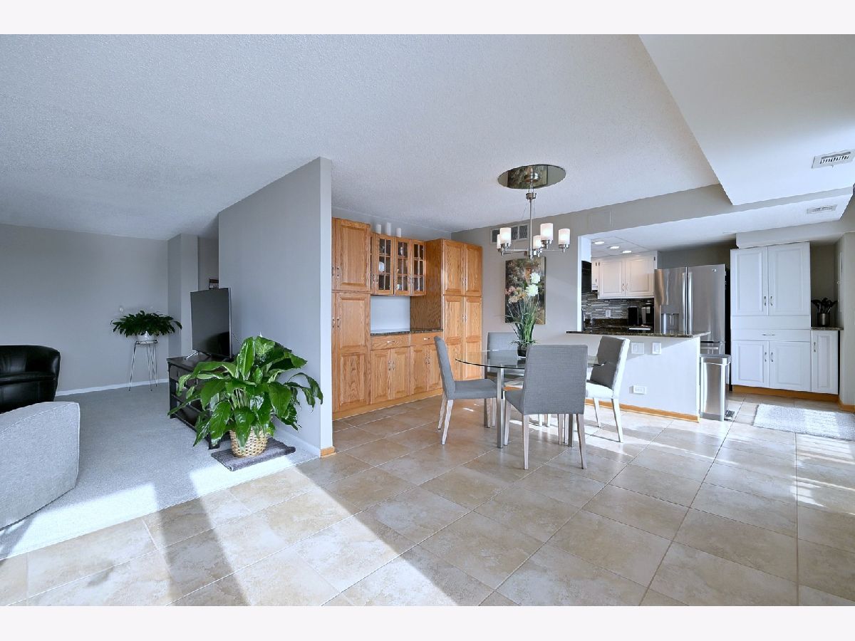 Welcome to elegant living at the Atrium in South Elmhurst. This location is ideally situated with access to major expressways, minutes from Oak Brook Center, great schools with bus service. This penthouse view unit faces east and is a highly sought after 1900+ square foot condo featuring: three spacious bedrooms, two full bathrooms and in unit laundry room with newer front loading stackable washer and dryer. Step through the dramatic double doors into a welcoming spacious foyer with gleaming hardwood flooring and a large coat closet. The entertainment-sized living room features a built-in bar area and has access to a balcony, perfect for relaxing or hosting guests. The separate dining room is filled with natural light from expansive windows and showcases a custom built-in buffet with cabinets which creates the perfect space for gatherings or dinner parties. The open concept modernized kitchen has been thoughtfully updated with attractive stainless steel appliances, granite countertops, ceramic tile flooring, pantry storage and even has a convenient pass-through breakfast bar area that connects seamlessly to the dining room. Retreat to the luxurious primary en suite featuring a beautifully updated bathroom with double vanity sinks, a large step-in shower and impressive sized walk-in closet. This suite also offers private balcony access providing a peaceful place to start or end your day. Two additional bedrooms are comfortable in size have double door closets and each offering their own balcony access. Other highlights include indoor parking, secure elevator building with controlled access, resort like amenities: indoor/outdoor pools, beautiful clubhouse, locker rooms with saunas, tennis/pickleball court and even a dog park. Luxury living and soon you can call it home! Please note all of the sliding glass doors have been replaced and are not the originals, additional storage cage provided at the end of the 6th floor hallway.