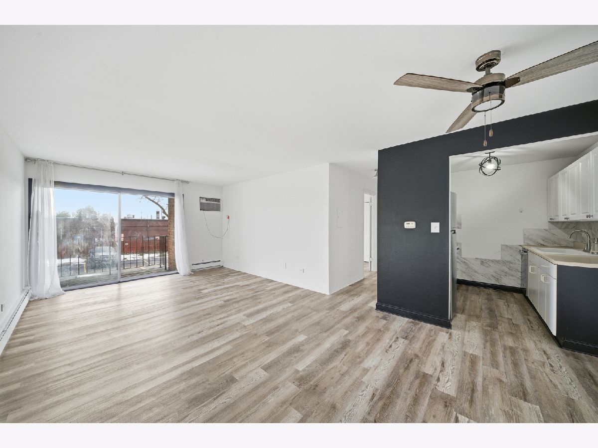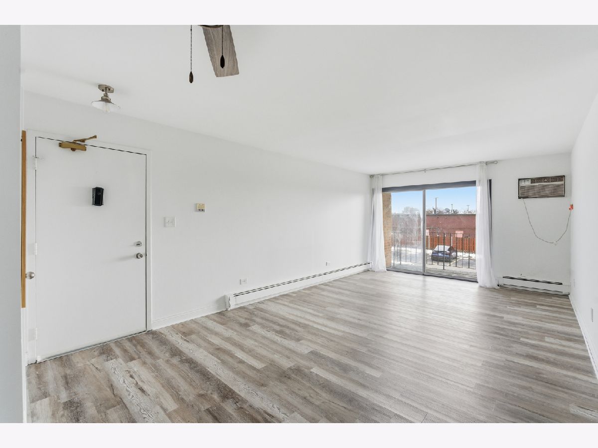 Welcome to this charming 1-bedroom, 1-bath condo filled with natural light from large windows that create a warm, inviting feel. The open living and dining area flows effortlessly to a private balcony-perfect for morning coffee or unwinding in the evening. The kitchen provides ample cabinet space and practical workspace for everyday cooking. The spacious bedroom includes generous closet storage, offering both comfort and functionality. Two wall A/C units keep the home cool and comfortable throughout the summer months. Ideally located near shopping, dining, parks, and major commuter routes, this condo offers the perfect balance of comfort and convenience.