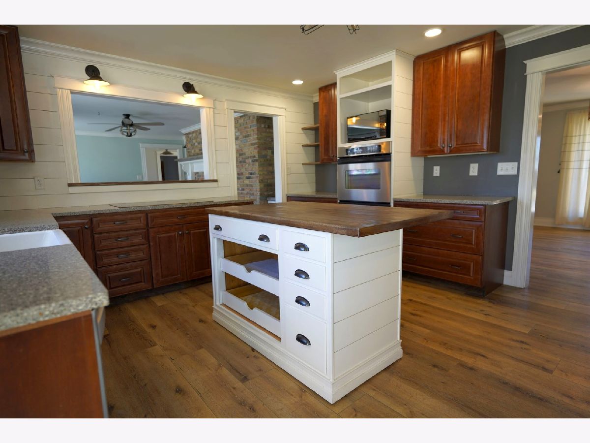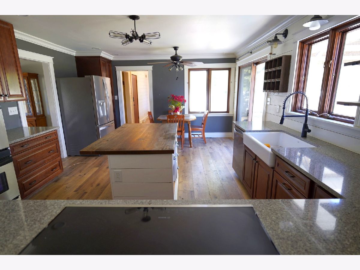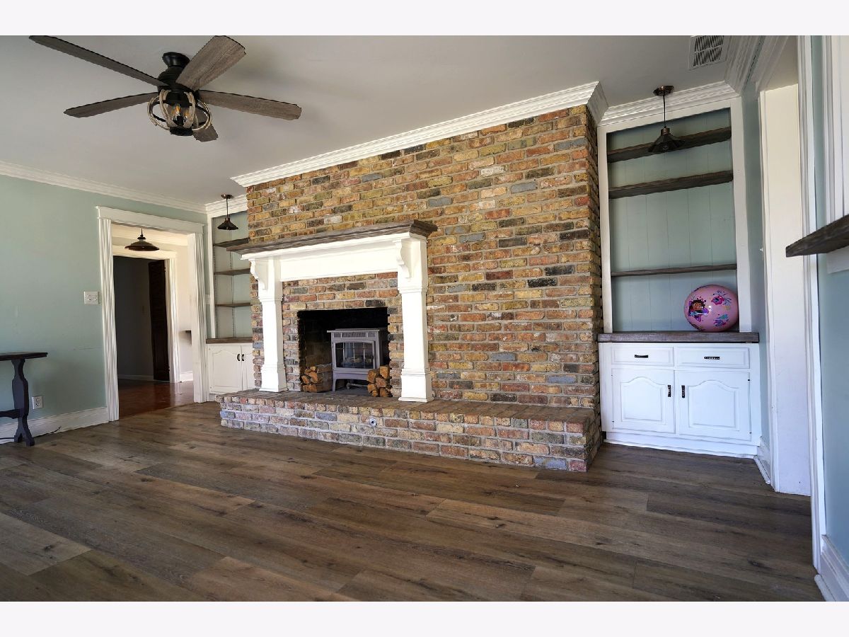 Welcome to this beautiful all-brick ranch home perfectly situated on a large corner lot! This home features 4 bedrooms and 2.5 baths with a spacious and inviting open floor plan. The main living areas include a formal dining room and a bright, spacious living room featuring a cozy wood-burning/gas fireplace. The fabulous updated eat-in kitchen is truly the heart of the home, showcasing 42" maple cabinets with LED under-cabinet lighting, abundant drawers, quartz countertops, shiplap walls, and high-end stainless steel appliances, including a Bosch induction cooktop and convection oven. A large island provides additional prep and gathering space, while sliding glass doors lead directly to the deck, making indoor-outdoor entertaining effortless. The cozy family room features a dramatic floor-to-ceiling brick fireplace (wood-burning and gas) along with built-in bookshelves-an ideal space to relax or gather with guests. A convenient laundry room with extensive built-in cabinetry adds everyday practicality. Much of the first floor features luxury vinyl plank flooring, combining durability with modern style. The primary suite includes a beautifully remodeled bath featuring an open, walk-in shower designed to offer both comfort and accessibility. The full, partially finished basement provides additional living space with a recreation room, bedroom or office, and extensive storage. Step outside to a backyard designed for relaxing and entertaining. The expansive 14' x 54' Trex deck overlooks mature trees and beautiful landscaping, and the yard also features a firepit, dedicated BBQ area, and plenty of space for gatherings, games, and outdoor dining. A fully fenced yard offers added peace of mind for both pets and children. Additional highlights include 220 electric service in the garage, two Franklin infrared fireplace inserts, dual furnaces and a roof replaced in 2019. A wonderful home offering space, warmth, accessibility, and exceptional outdoor living-perfect for everyday comfort and memorable gatherings. You won't want to miss this one!