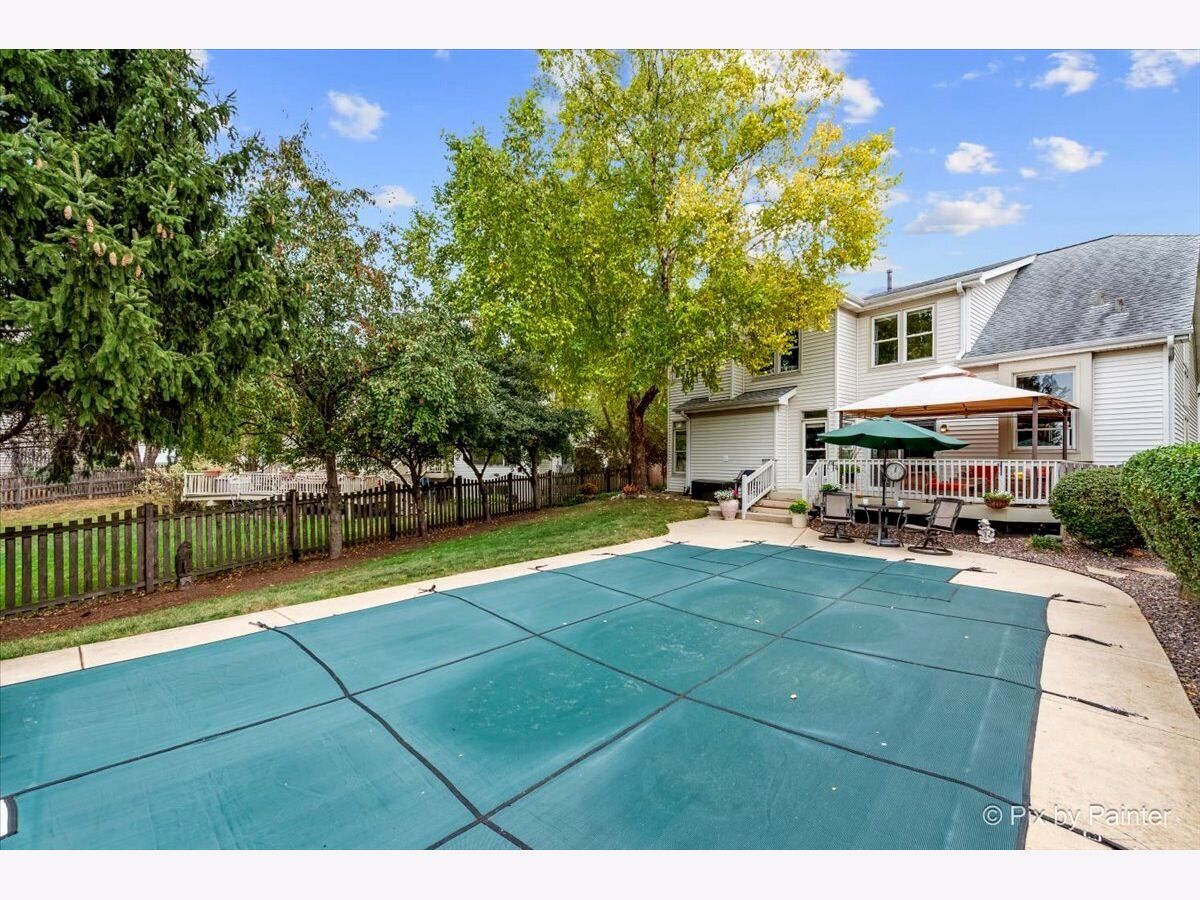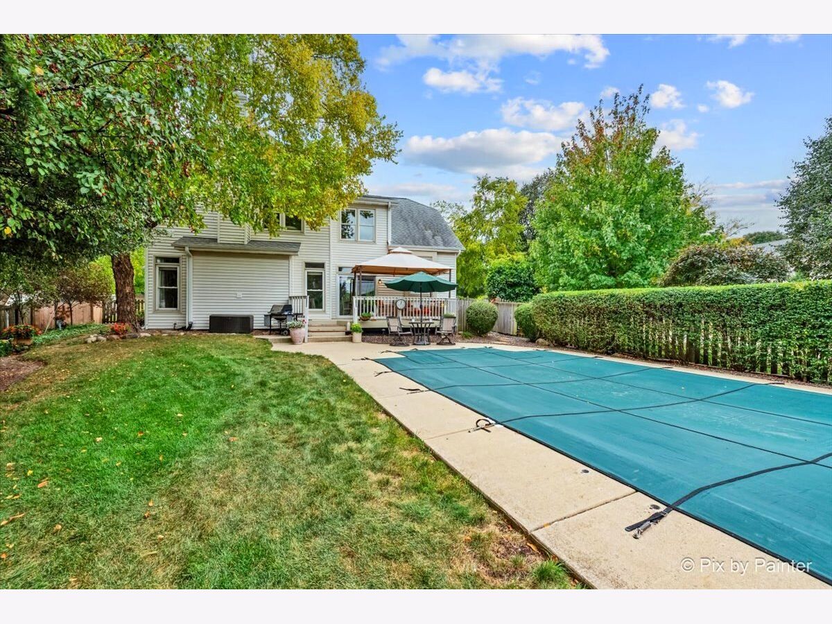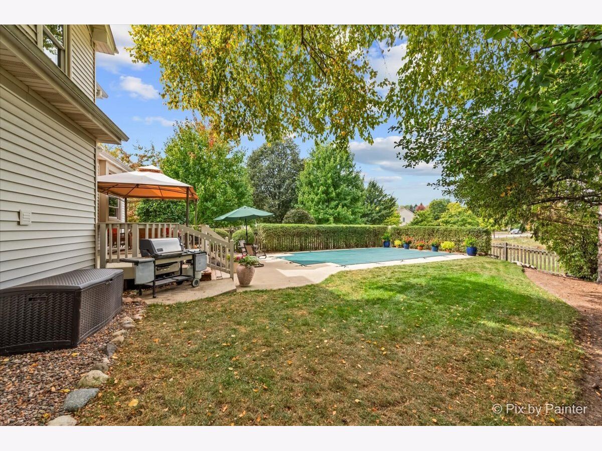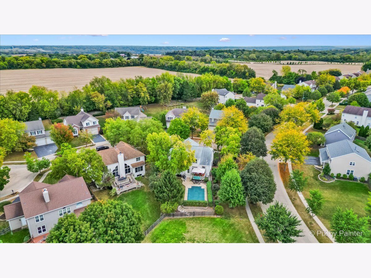 Welcome to 2 White Chapel Ct. - This stunning, desirable and rarely available "Madison" Model home offers 2,612 sq. ft. (above grade) of beautifully designed living space in the highly sought-after Willoughby Farms subdivision of Algonquin. Perfectly situated on a large, professionally landscaped corner lot with underground sprinklers, this 4-bedroom, 3-bath home (including a first-floor in-law/office/craft room with adjacent full bath) with 3 car garage combines timeless style, modern upgrades, and an outdoor oasis featuring your very own deck and in-ground heated pool. From the moment you arrive, the curb appeal is undeniable. With its strategically placed lights that subtly light up the beautiful landscaping at night accenting mature river birch trees, this home will impress from the start. Step inside to be greeted by a soaring two-story foyer and majestic staircase (highlighted by lit recessed built-ins ideal for displaying your favorite artwork or family treasures). Freshly painted and re-carpeted, every inch of this home radiates pride-of-ownership that sets the stage for the elegance found throughout. Off to your left is your formal living and dining areas with voluminous soaring ceilings and stained-glass windows providing the perfect spaces for entertaining and serving an incredible meal. At the heart of the home lies your gourmet kitchen - a true chef's delight with 42" maple-glazed cabinetry, dovetail self-closing drawers, granite countertops, stone tile backsplashes, under-cabinet lighting, and a large granite-topped island with added storage. Stainless steel KitchenAid professional series appliances, including a gas cooktop and separate convection oven, make preparing meals a joy. The spacious eat-in area provides casual dining with views of your private backyard retreat through sliding glass doors with built-in blinds. The kitchen flows seamlessly into the family room, where a cozy gas fireplace invites you to unwind after a long day. Nearby, a spacious laundry room with front-loading washer and dryer, sink, shelving, and hanging racks adds everyday convenience. Tucked away on the main level is your flexible office/in-law/guest room, adjacent to a full bath for true multi-generational living. A three-car garage with cabinets and an extended pad ensures plenty of room for vehicles, storage, and hobbies. Upstairs, retreat to your luxurious master suite sanctuary featuring a sitting room, vaulted ceiling, and spa-like en-suite. Pamper yourself with a whirlpool tub, separate stand-up ceramic tiled shower, dual sink vanity, heated bathroom floors, and an expansive walk-in closet with California Closet organizers. Additional bedrooms and a loft area provide ample space for family and guests. The partially finished basement is designed for entertaining, complete with a built-in bar, full-size refrigerator, and a massive crawl space for all your storage needs. Step outside and discover your private backyard oasis. A large deck with canopy overlooks the heated in-ground pool, surrounded by lush landscaping and unmatched privacy with no homes directly behind you - (notice the extra green / conservation space behind gate at rear of property!). Whether it's morning coffee, weekend barbecues, or evening swims, this is your perfect spot for making memories with family and friends. Updates and upgrades provide peace of mind: new furnace and A/C with UV light purification (2017 - w/transferable warranty), roof w/powered attic vent replaced 2014 (according to previous owners, shingles are a 50 year shingle), siding (2021), new water softener (2024), pool heater (9 years old), whole house water filtration system and recent paint and carpeting. An ADT security system adds an extra layer of comfort. This home is just minutes from downtown Algonquin's thriving restaurants and shops, award-winning District 300 schools, the tranquil Fox River, Golf Club of Illinois, and easy access to the I-90 corridor. Schedule your showing today!