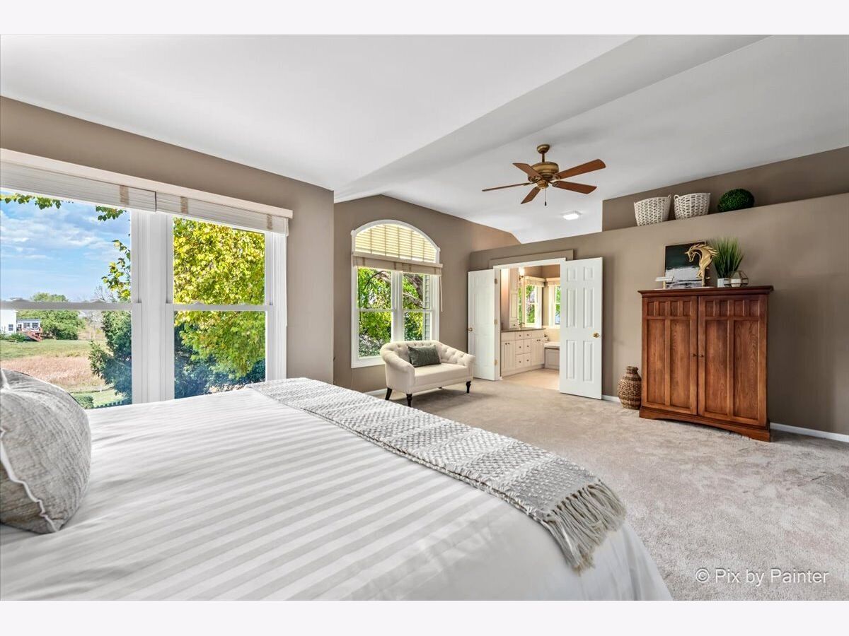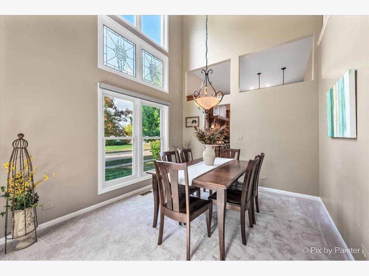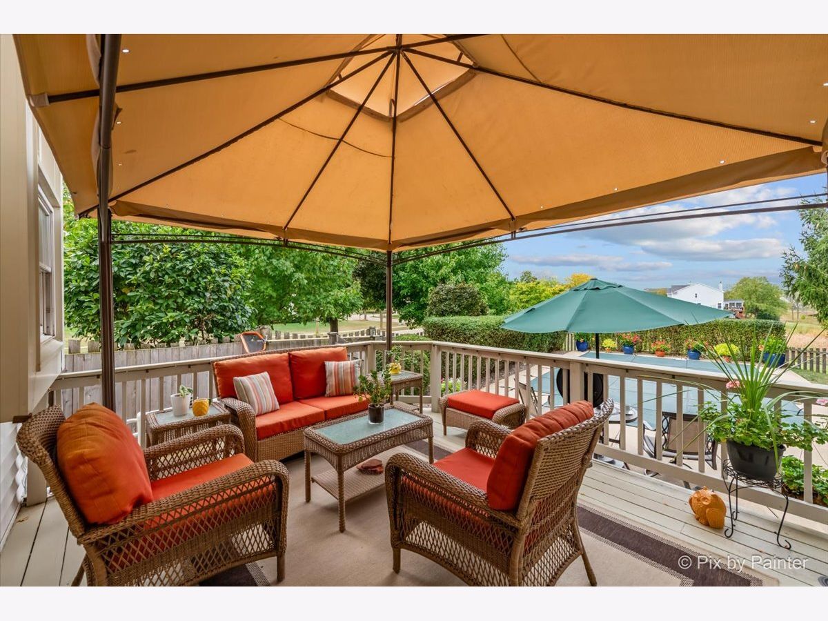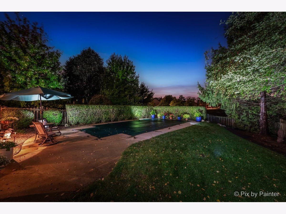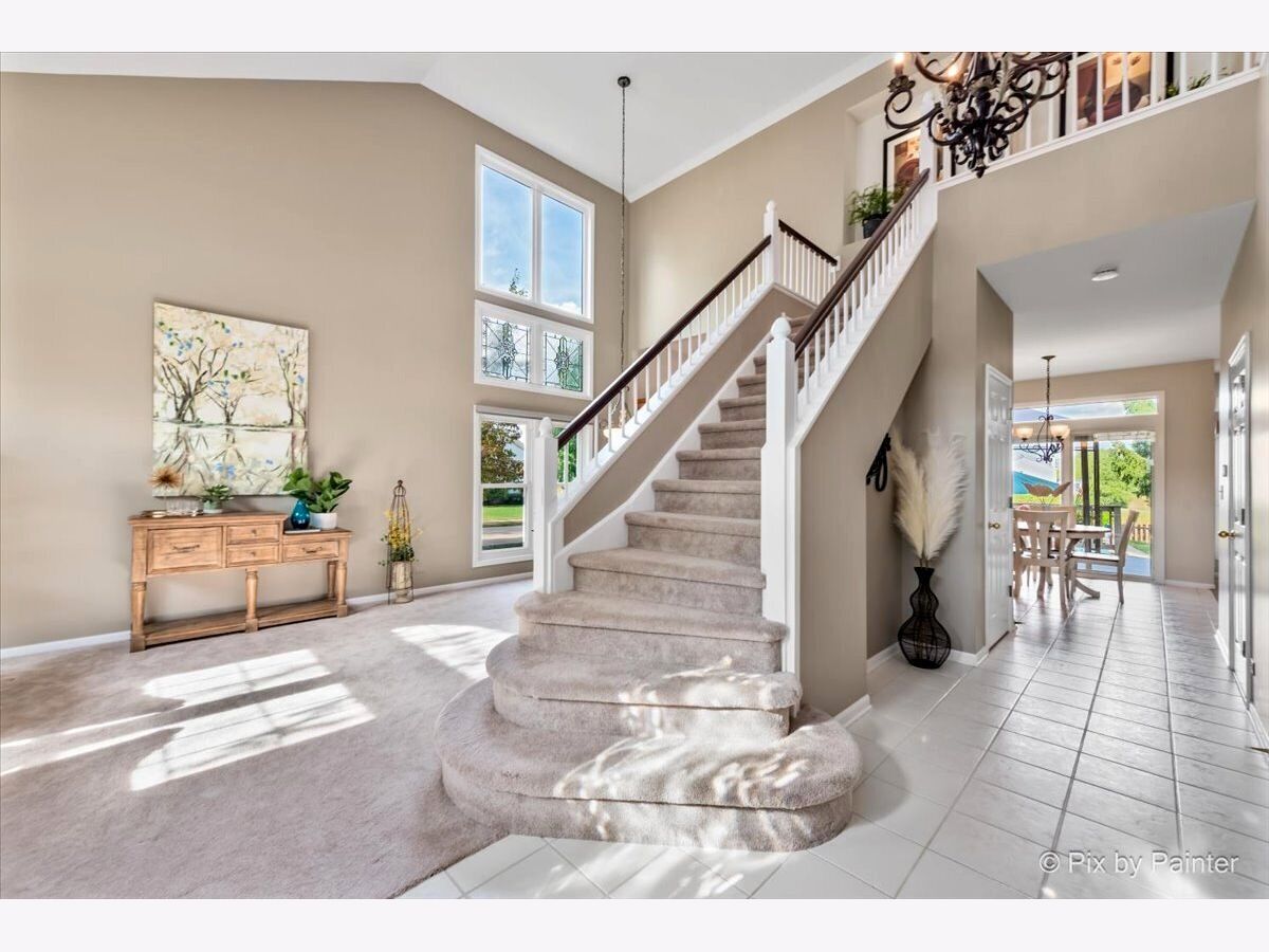 Welcome to 2 White Chapel Ct. - This stunning, desirable and rarely available "Madison" Model home offers 2,612 sq. ft. (above grade) of beautifully designed living space in the highly sought-after Willoughby Farms subdivision of Algonquin. Perfectly situated on a large, professionally landscaped corner lot with underground sprinklers, this 4-bedroom, 3-bath home (including a first-floor in-law/office/craft room with adjacent full bath) with 3 car garage combines timeless style, modern upgrades, and an outdoor oasis featuring your very own deck and in-ground heated pool. From the moment you arrive, the curb appeal is undeniable. With its strategically placed lights that subtly light up the beautiful landscaping at night accenting mature river birch trees, this home will impress from the start. Step inside to be greeted by a soaring two-story foyer and majestic staircase (highlighted by lit recessed built-ins ideal for displaying your favorite artwork or family treasures). Freshly painted and re-carpeted, every inch of this home radiates pride-of-ownership that sets the stage for the elegance found throughout. Off to your left is your formal living and dining areas with voluminous soaring ceilings and stained-glass windows providing the perfect spaces for entertaining and serving an incredible meal. At the heart of the home lies your gourmet kitchen - a true chef's delight with 42" maple-glazed cabinetry, dovetail self-closing drawers, granite countertops, stone tile backsplashes, under-cabinet lighting, and a large granite-topped island with added storage. Stainless steel KitchenAid professional series appliances, including a gas cooktop and separate convection oven, make preparing meals a joy. The spacious eat-in area provides casual dining with views of your private backyard retreat through sliding glass doors with built-in blinds. The kitchen flows seamlessly into the family room, where a cozy gas fireplace invites you to unwind after a long day. Nearby, a spacious laundry room with front-loading washer and dryer, sink, shelving, and hanging racks adds everyday convenience. Tucked away on the main level is your flexible office/in-law/guest room, adjacent to a full bath for true multi-generational living. A three-car garage with cabinets and an extended pad ensures plenty of room for vehicles, storage, and hobbies. Upstairs, retreat to your luxurious master suite sanctuary featuring a sitting room, vaulted ceiling, and spa-like en-suite. Pamper yourself with a whirlpool tub, separate stand-up ceramic tiled shower, dual sink vanity, heated bathroom floors, and an expansive walk-in closet with California Closet organizers. Additional bedrooms and a loft area provide ample space for family and guests. The partially finished basement is designed for entertaining, complete with a built-in bar, full-size refrigerator, and a massive crawl space for all your storage needs. Step outside and discover your private backyard oasis. A large deck with canopy overlooks the heated in-ground pool, surrounded by lush landscaping and unmatched privacy with no homes directly behind you - (notice the extra green / conservation space behind gate at rear of property!). Whether it's morning coffee, weekend barbecues, or evening swims, this is your perfect spot for making memories with family and friends. Updates and upgrades provide peace of mind: new furnace and A/C with UV light purification (2017 - w/transferable warranty), roof w/powered attic vent replaced 2014 (according to previous owners, shingles are a 50 year shingle), siding (2021), new water softener (2024), pool heater (9 years old), whole house water filtration system and recent paint and carpeting. An ADT security system adds an extra layer of comfort. This home is just minutes from downtown Algonquin's thriving restaurants and shops, award-winning District 300 schools, the tranquil Fox River, Golf Club of Illinois, and easy access to the I-90 corridor. Schedule your showing today!