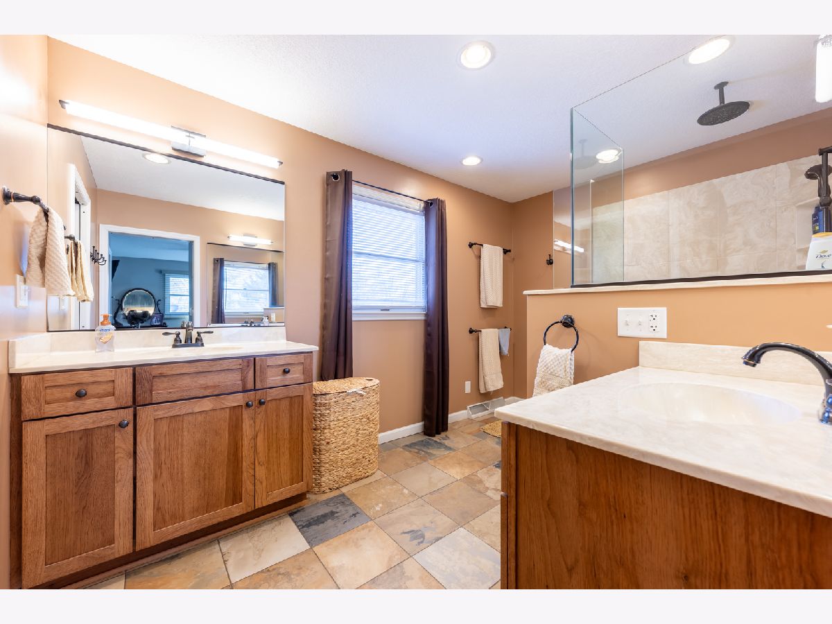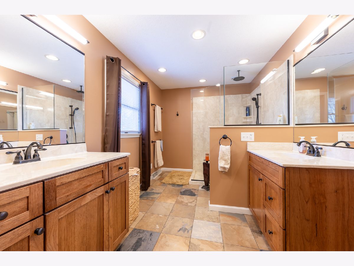 Tucked away in the quiet, but centrally located, Ayrshire Subdivision in south central Champaign, this home combines a great location with extraordinary updates, resulting in luxurious living and exceptional entertaining spaces! This home sits on a quiet horseshoe lane that has no through traffic. The 160-foot-deep lot backs up to the Champaign Park District's Boulware Trail, a 1.25-mile paved trail that runs along a creek and ends at nearby Mattis Park. Multiple bus lines (Yellow and Brown) have stops less than two blocks away. Numerous restaurants, a grocery store, coffee shops, hardware store, and convenience store are all located within half a mile. Outside, this home features newer PlyGem Mahogany siding, mature landscaping, and a screened porch overlooking the fenced backyard. Inside, the expanded first floor offers extraordinary spaces. The 30'x17' great room features a fireplace, cathedral ceiling, abundant natural light, recently replaced flooring, and French doors leading to the screened back porch. A 25'x14' open kitchen and dining space features recently replaced tile flooring, acres of cabinets and counter space, upscale stainless steel appliances, and natural light from windows facing three directions. There is also a first floor full bath that gives Zen spa vibes, featuring a soaking tub and a vent fan with built-in Bluetooth speaker. The second floor was updated to transform the former small 4th bedroom into a luxurious en suite bathroom for the primary bedroom suite. The 17'4"x13'5" bedroom features two closets, and the all-new bathroom features custom tile floor, separated dual vanities with custom cabinetry, private toilet, and an extraordinary walk-in shower with custom glass and multiple showerheads. The other two bedrooms share a full hall bath. High efficiency furnace and a/c were replaced in 2024. See 3D immersive virtual tour and HD photo gallery.