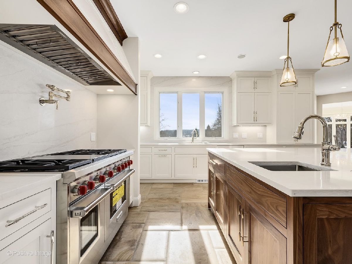 Rarely available and highly exclusive, this Old Oak Brook estate has been completely reimagined with uncompromising attention to detail and craftsmanship throughout. From the moment you arrive, the quality is unmistakable-beginning with the custom 3-inch solid wood front entry door with beveled glass and extending to the fully finished, walk-out lower level designed for both luxury living and entertaining. The lower level walkout offers extraordinary versatility, featuring a third full kitchen and laundry, wine cellar, theater area, fitness room, fifth bedroom, and expansive recreation space with wet bar-ideal for guests, related living, or private entertaining. The exterior has been thoughtfully updated with a new composite Brava 50-year assignable warranty cedar-shake style, complete with copper flashings, valleys, gutters and downspouts. Fresh exterior paint complements the paver brick driveway leading to a heated six-car garage with epoxy floors. Decorative stone half-walls with irrigated planter beds frame the home and driveway, while two bluestone patios-one off the kitchen and one off the lower level-create seamless indoor-outdoor living. Designed with flexibility in mind, the home offers a first-floor bedroom suite plus a separate in-law suite complete with its own kitchen and living room-perfect for extended family or guests seeking privacy. At the heart of the home is a stunning chef's kitchen tailored for today's lifestyle. Custom crafted cabinetry, an oversized island with breakfast bar, quartz countertops, and designer lighting define the space. White perimeter cabinetry is beautifully accented by a walnut-finished island, while premium Sub-Zero, Wolf, and Bosch appliances, a walk-in pantry, and generous eat-in area make this kitchen as functional as it is striking. The main level features French imported pillowed limestone flooring, soaring ceilings, a newly redesigned staircase with custom railings and balustrade, and updated lighting throughout. The primary suite is truly celebrity-worthy, offering volume ceilings, hardwood floors, a fireplace, private sitting area, and custom built-in cabinetry. The expansive 17' x 17' walk-in "Her "closet includes its own island and fully customized closet systems, complemented by a separate "His" closet. The spa-inspired primary bath features an oversized shower with bench seating, body sprays, handheld and rain shower heads, and separate his-and-her water closets. Additional highlights include a whole-house generator, 400-amp electrical service, two new central vacuums, security system, new irrigation system, four-zone HVAC, and two 75-gallon water heaters-ensuring comfort, efficiency, and peace of mind. A truly turnkey estate offering exceptional value in one of Oak Brook's most coveted neighborhoods.