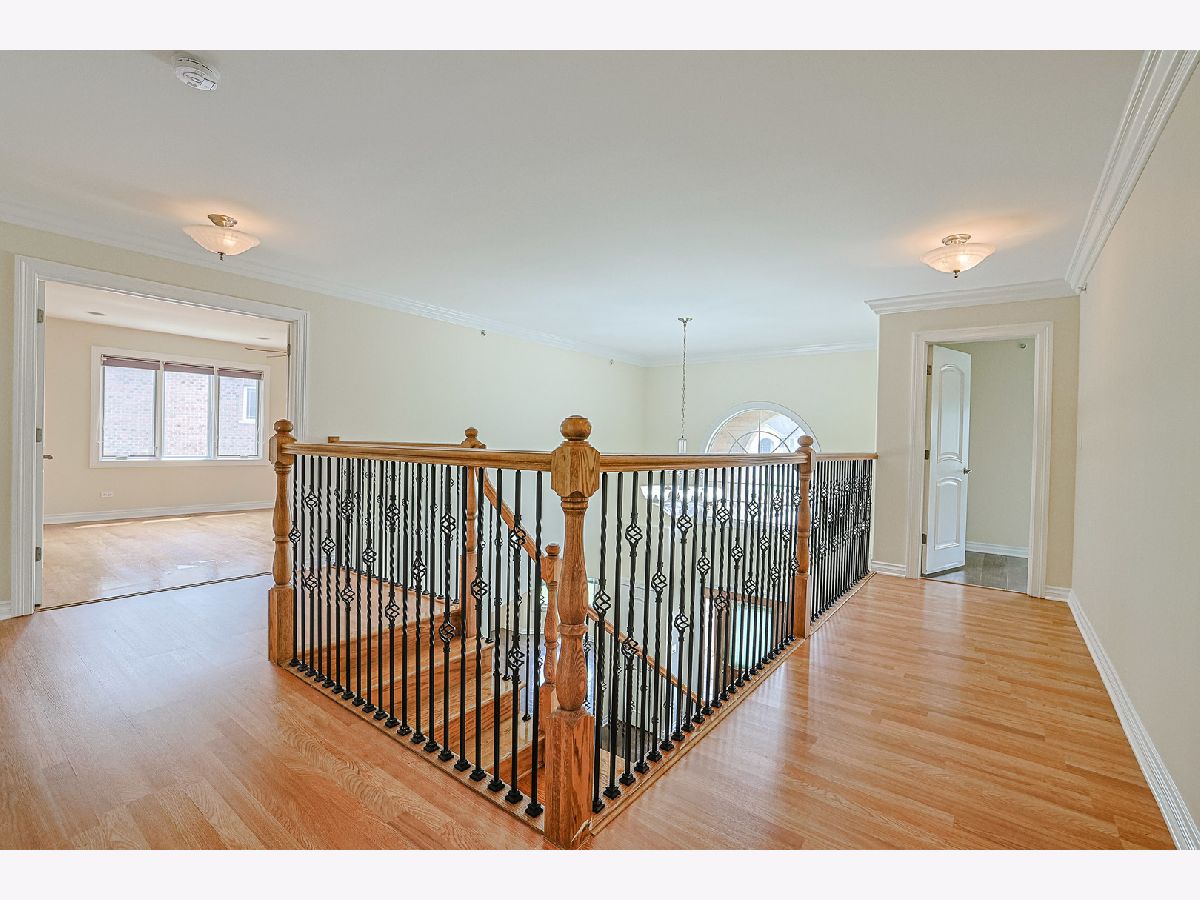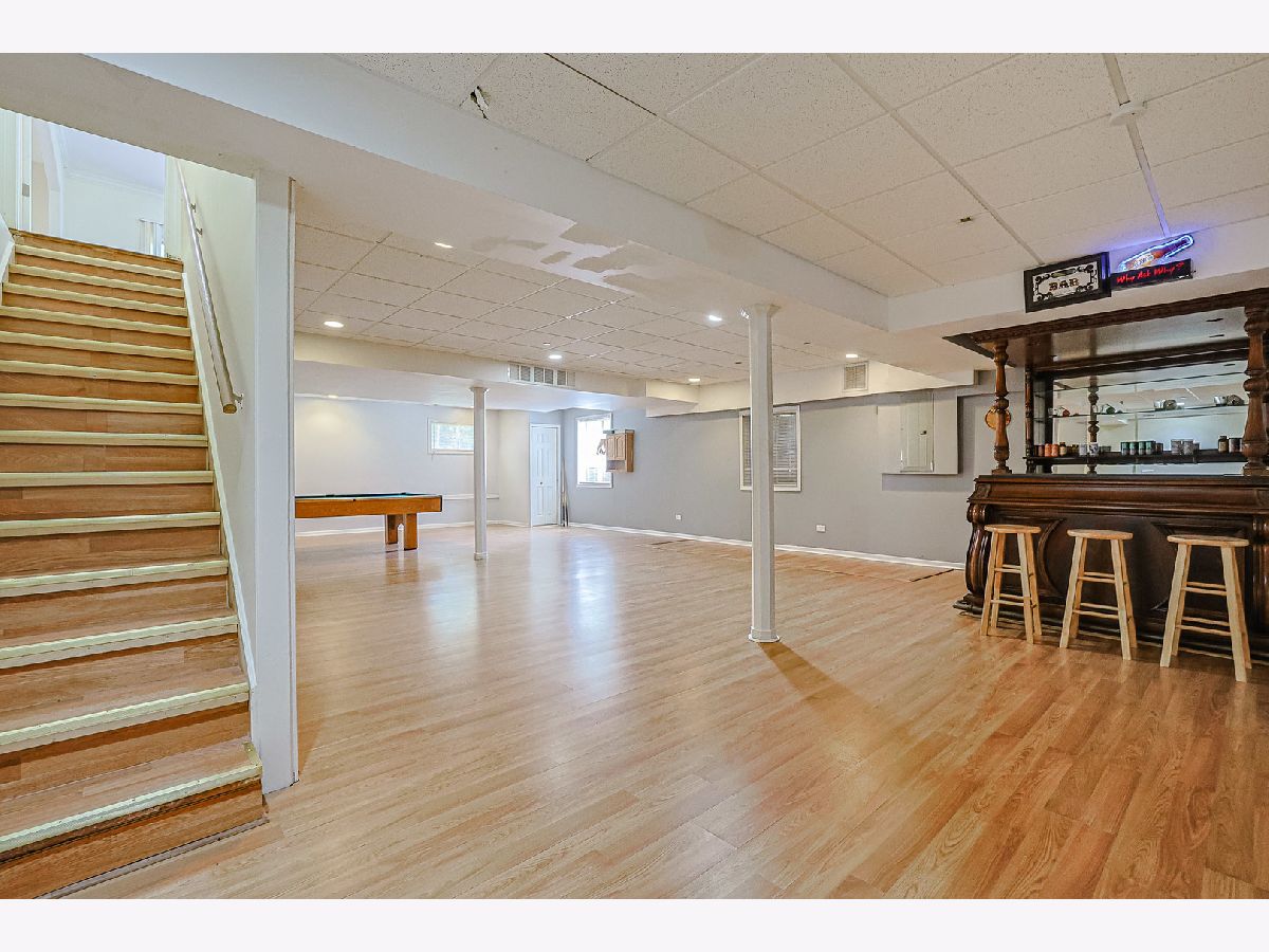 This impressive all-brick home offers an open floor plan with nearly 5,000 square feet of beautifully finished living space, highlighted by vaulted ceilings with crown molding throughout. The residence features five spacious bedrooms and five full baths, each appointed with elegant marble tile. The expansive gourmet kitchen is designed for both function and style, showcasing granite countertops, a coordinating backsplash, maple cabinetry, a large center island, and stainless steel appliances. The luxurious primary suite includes a sitting area, dual walk-in closets, and a spa-inspired bath with double vanities, a whirlpool tub, and a separate standing shower. Additional bedrooms are generously sized with walk-in closets and share a well-appointed Jack-and-Jill bath. Formal living and dining rooms provide ideal spaces for entertaining, while the family room features a cozy fireplace. A first-floor den or office, complete with a full bath, offers flexible use as a guest or in-law suite. The fully finished basement adds exceptional living space with an additional bedroom, full bath, and bar. Additional highlights include a sprinkler system, dual-zone air conditioning, and a water heater replaced in October 2018.