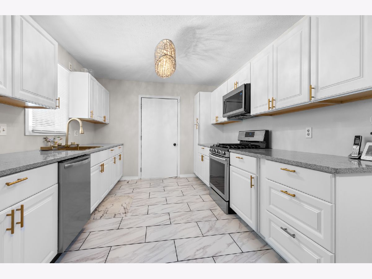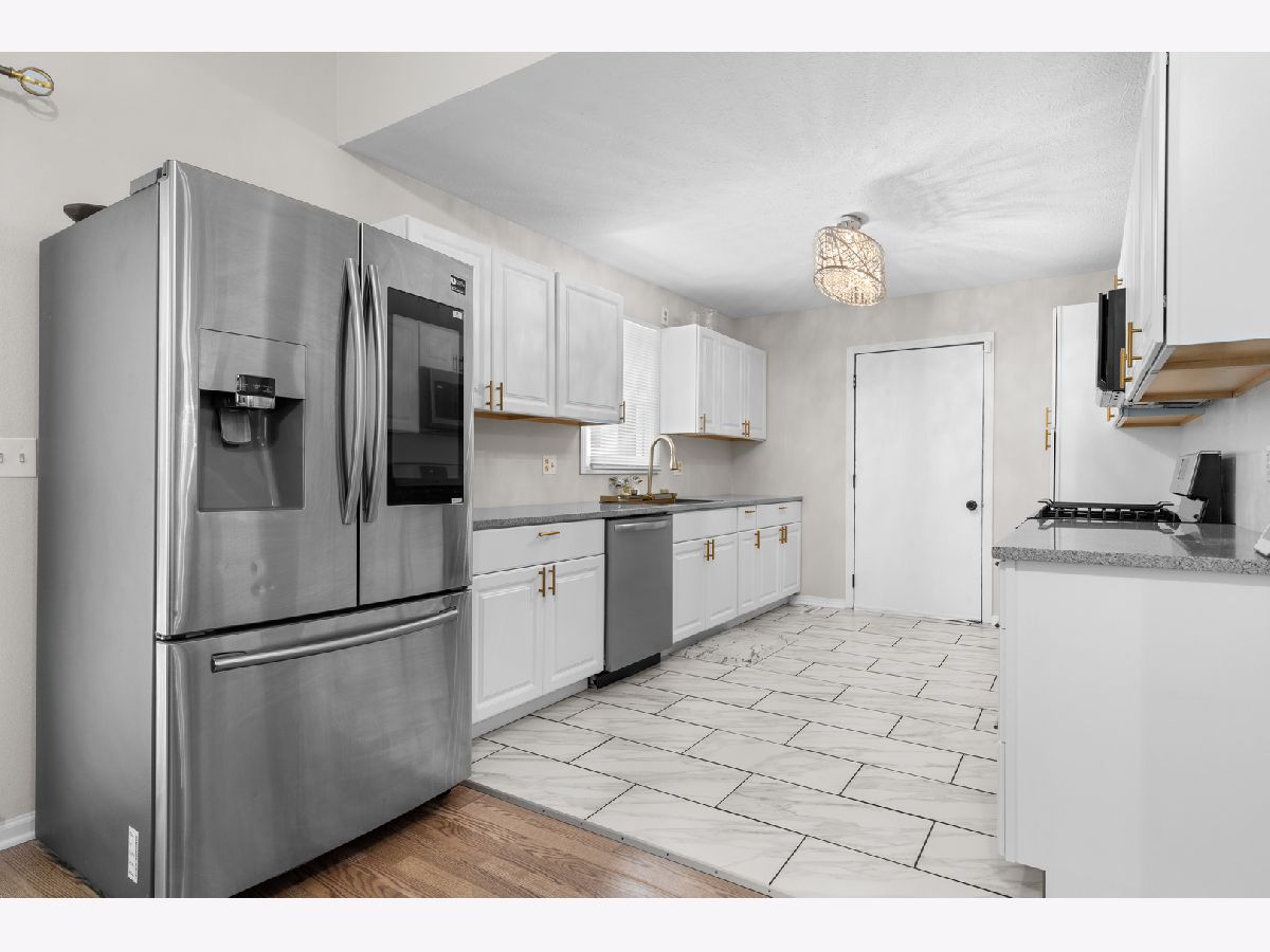 This beautifully updated home offers over 2800 sq ft of thoughtfully designed living space. Step into a spacious foyer with new tile flooring that opens to a stunning living room featuring vaulted ceilings and a cozy wood-burning fireplace. The fully remodeled kitchen is a standout, complete with granite countertops and a striking gold waterfall sink. The main level includes three generously sized bedrooms, two full bathrooms and convenient main-floor laundry. The lower level expands your living space even further, featuring a large recreation room, family room, fitness area, and a versatile bonus room, along with an additional full bathroom- perfect for guests or entertaining. The attached garage offers two front parking spaces plus a rear garage door with a third stall, and includes a electric vehicle outlet. Enjoy the wooded lot from your private concrete patio- ideal for relaxing or entertaining outdoors. Extensive updates throughout the home include a high-efficiency furnace with April Aire system and central air (new 2024) updated lighting and plumbing fixtures, new carpet in bedrooms, and new flooring in kitchen and entry way. Located in the gated Candlewick Lake community, residents enjoy access to a clubhouse with fitness center, pool, lake access, golf and community events