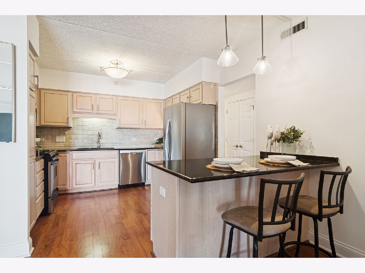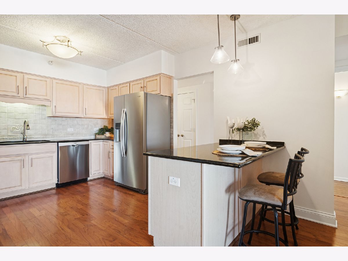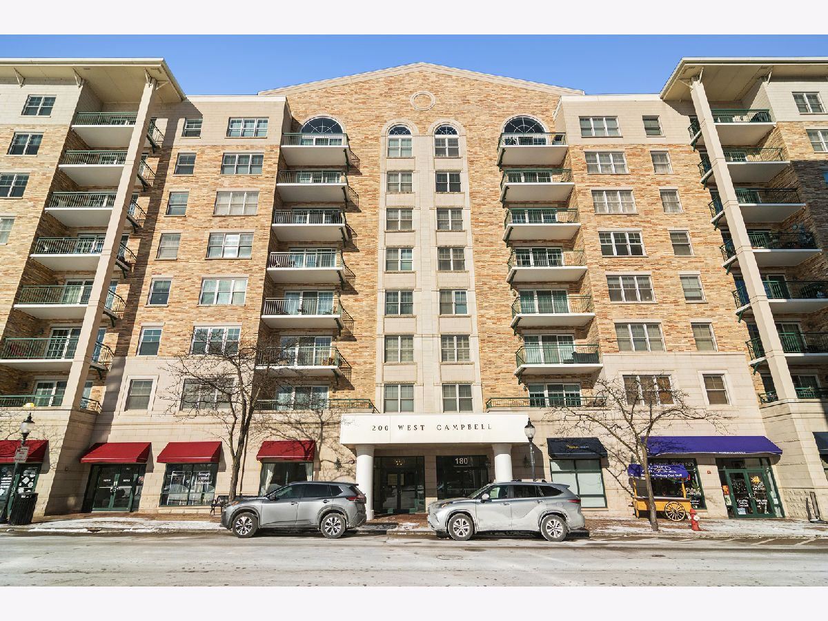 YOU WILL LOVE THE LIFESTYLE this beautiful and rare 2-bedroom/2-bathroom Campbell Courte condominium brings. Enjoy upscale amenities in this walk-to-everything home in the HEART OF DOWNTOWN Arlington Heights. You'll be steps from restaurants, coffee & specialty shops, the Metra train, the summer al-fresco scene, local live entertainment, & so much more. This 7th floor unit is open and airy with oversized windows offering Northern exposures and a large balcony. The living/dining area flows perfectly from the kitchen, working well for everyday living or entertaining guests and has plenty of room to accommodate your larger furniture. The kitchen features an island for casual eating, serving, scrolling your computer, or conversation with guests perched on their stools. The generously sized primary bedroom has a private ensuite bathroom and a walk-in closet. The second bedroom works well for guests, office, exercise room, or any combination that fits your needs. There is a second full bathroom that can be utilized by guests. The unit is neutral, freshly painted in on trend colors, and has newer wood flooring through the main living space and bedroom. The upscale lobby makes a wonderful first impression on your visitors and offers space to gather with friends to chat or watch the downtown activity. You'll find convenient in-unit laundry, same floor storage cage, an Amazon drop off area in the lobby, interior access to your garage space, and more! Assessment of $725.94 covers heat, water, gas, garbage, basic cable & internet. Nice building with thoughtful details-as example there is radiant heat about a foot out from the sliders and bedroom windows to combat coldness from the concrete. Owner pays for their own electricity. Move in and enjoy exciting downtown Arlington Heights!