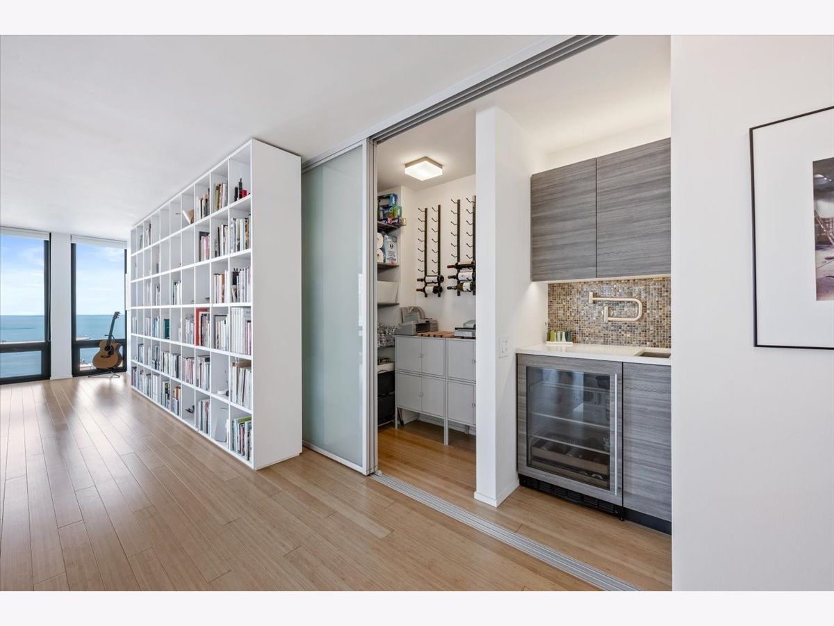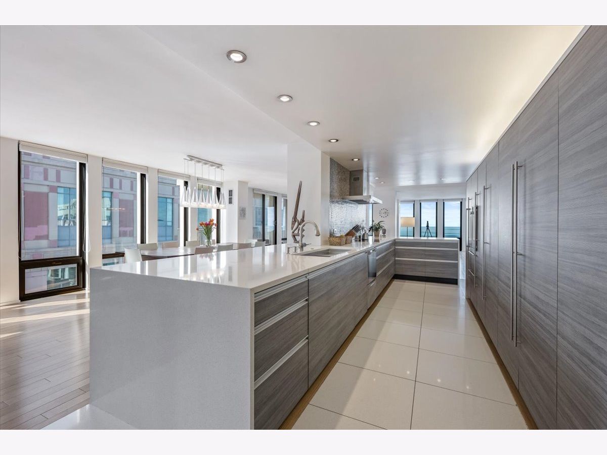 Dazzling on Delaware! Exceptionally reimagined by Wheeler Kearns Architects, this high floor residence is a seamless combination of two units, creating an expansive, one-of-a-kind home with approx 3,100 square feet of beautifully designed living space w floor-to-ceiling windows featuring amazing views to the north, south & west. This home boasts 4 large bedrooms, 4 bathrooms inc a private guest/in-law suite. This remarkable home is filled with natural light, showcasing incredible lake and city views. Two private balconies provide the perfect setting for grilling, outdoor dining, entertaining, or enjoying lake breezes and city vibes. The kitchen is sublime: thoughtfully designed chef's kitchen features premium Gaggenau appliances inc a 5-burner induction cooktop, steam oven, convection oven, 2 warming drawers, and built-in microwave. A Liebherr BioFresh refrigerator and freezer, beverage refrigerator, extensive custom cabinetry provides tons of storage, plus an impressive 20 foot storage wall provides stylish functionality. The spa inspired bathrooms feature radiant heated floors with elegant glass tile and porcelain finishes. Additional conveniences include 2 sets of in unit washers and dryers & multi-zoned heating & cooling. The home also includes a large double storage unit. Indoor amenities include a recently renovated lobby, fitness center, party room, package room, bike room, onsite management, and 24 hour door staff. Garage valet parking is available in the building for residents & guests for an additional monthly fee. Outdoor amenities include a heated pool w sun deck, multiple grilling and dining areas, lounge seating, fire pit, and a dog run. The building also includes a grocery store. Ideally located near oak street for the best shopping & dining, oak st beach, the lakefront trail, and an abundance of dining & shopping options on the magnificent mile. The Museum of Contemporary Art, Lake Shore Park, Lake Shore Drive, & nationally ranked hospitals Northwestern Memorial & Lurie Children's Hospital are just blocks away as are CTA buses lines 143, 146, 147, 148 & 151. This is a dazzling, well-designed home in the heart of chicago.