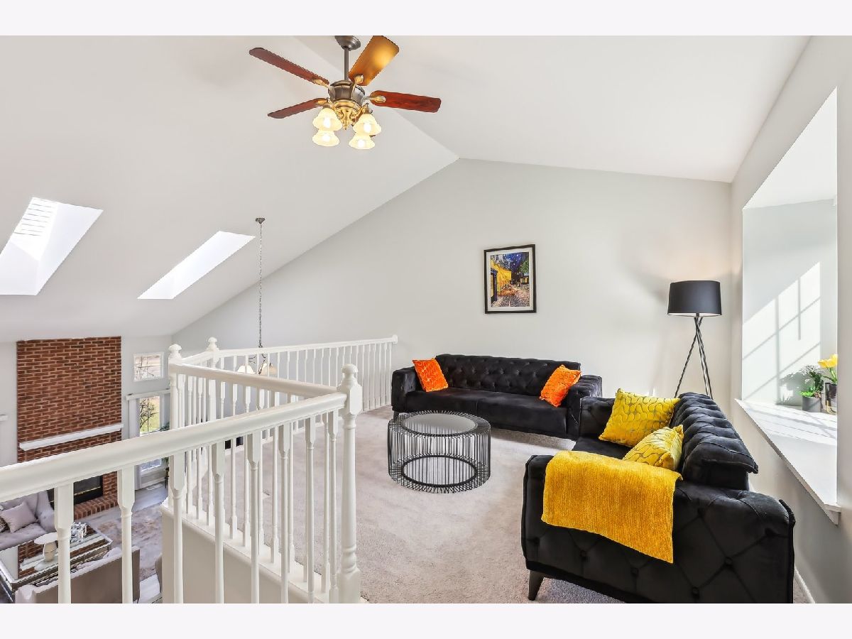 Bright and sunny 2 bed, 2.5 bath townhome in desirable Towne Place of Schaumburg! The spacious main floor features large windows, updated flooring, and an open living/dining area with a dramatic two-story brick fireplace and skylights. The updated kitchen offers white cabinetry, stainless steel appliances, a pantry cabinet, and table space. The first-floor primary suite includes a completely renovated en suite with dual vanity and walk-in shower, plus two closets-one of them a walk-in. Convenient main floor half bath for guests and laundry room with extra storage & direct access to the attached 2-car garage. Upstairs you'll find a second bedroom with a walk-in closet, an updated full bath, a cozy loft family room, and a huge bonus room perfect for an office, playroom, or additional storage. Enjoy your private back patio and take advantage of community amenities including a pool and clubhouse. Just blocks to Paul Revere Park, Veterans Park, shopping, and dining. Zoned to top-rated Schaumburg schools and Hoffman Estates High School! Property is move in ready but sold as is.