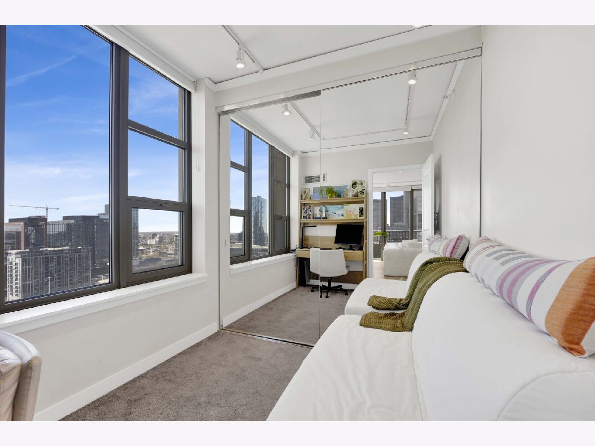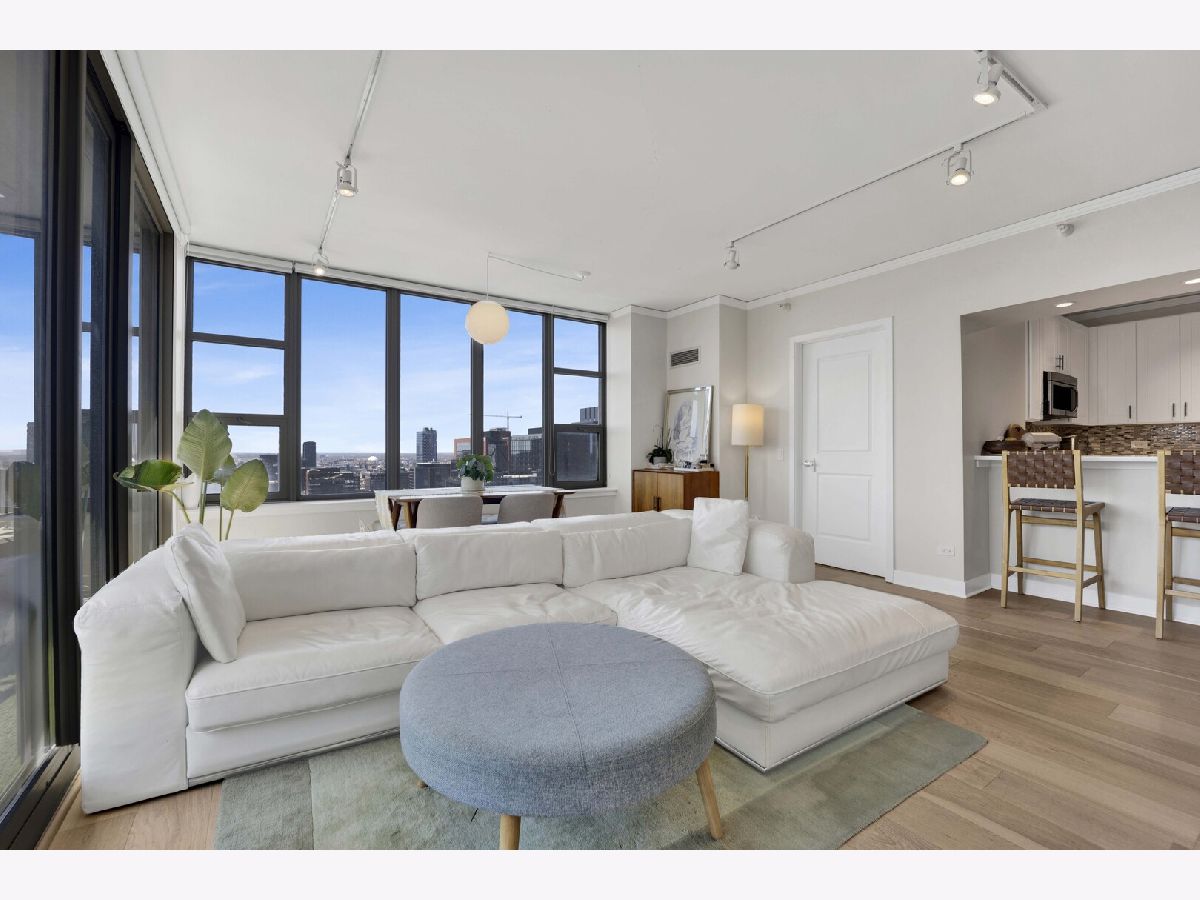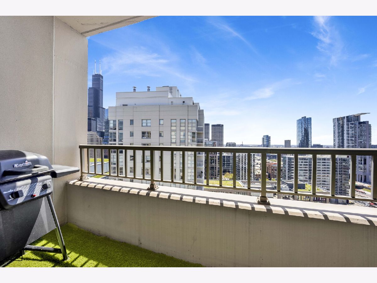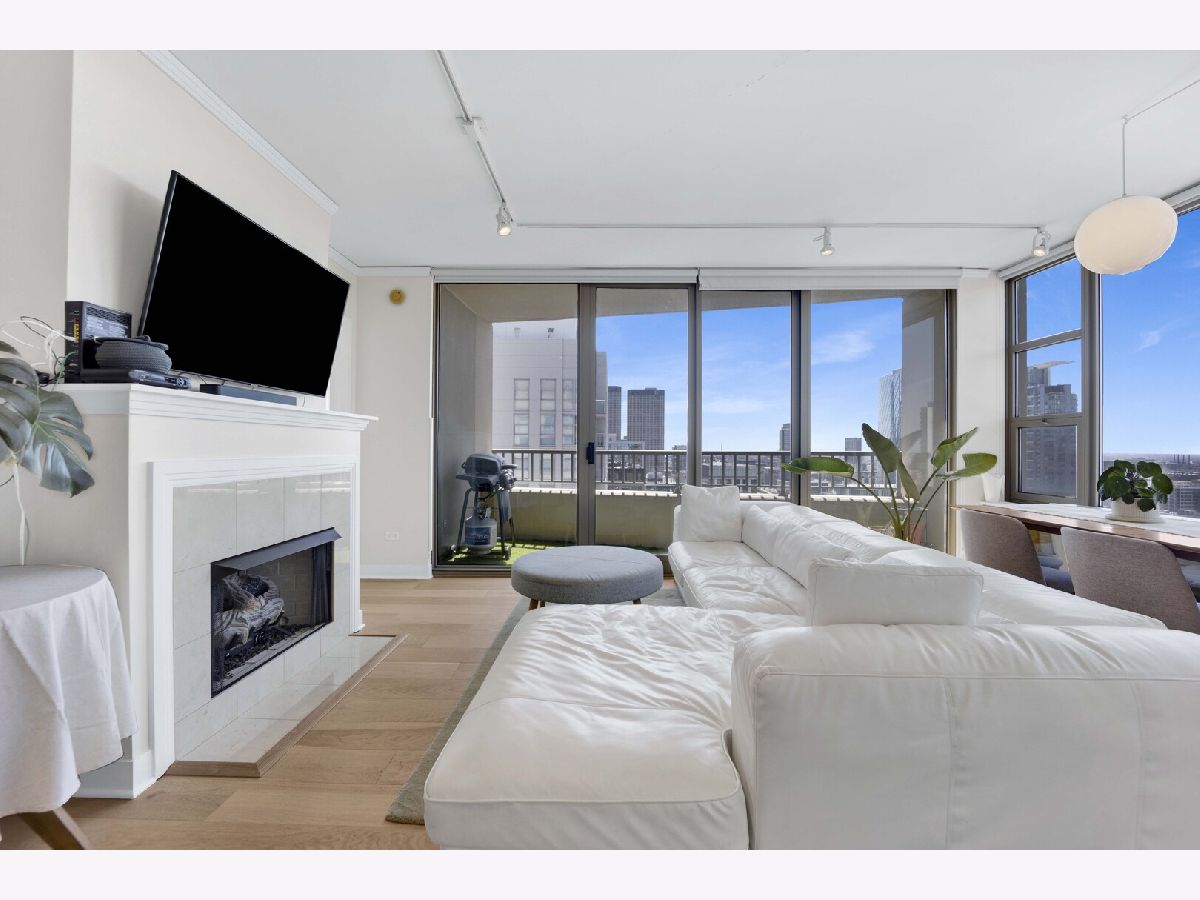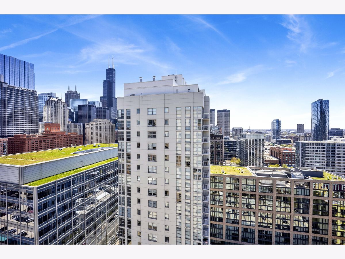 Premier southwest corner unit featuring 2 bedrooms and 1.5 baths on the 23rd floor. Enjoy sweeping views through expansive floor-to-ceiling windows, along with thoughtfully designed custom closets, window treatments, upgraded lighting throughout, new engineered oak flooring throughout the kitchen/living space, and a brand new kitchen with stainless appliances and quartz counters. The spacious primary suite includes a full bath and walk-in closet, while additional highlights include a gas fireplace, in-unit washer and dryer, and a private balcony. The second bedroom is versatile-perfect for a home office or nursery. Jefferson Tower offers full-service amenities, including an attached garage, nearly 24-hour door staff, on-site management, sundeck, fitness center, bike room, and storage. The building also features convenient on-site retail such as Starbucks, a cleaner, and FedEx. Ideally located in a highly walkable area with easy access to Fulton Market, Randolph Street dining, grocery stores, the Riverwalk, parks, and everything the West Loop has to offer. Commuting is a breeze with nearby Metra, CTA trains, and bus lines.