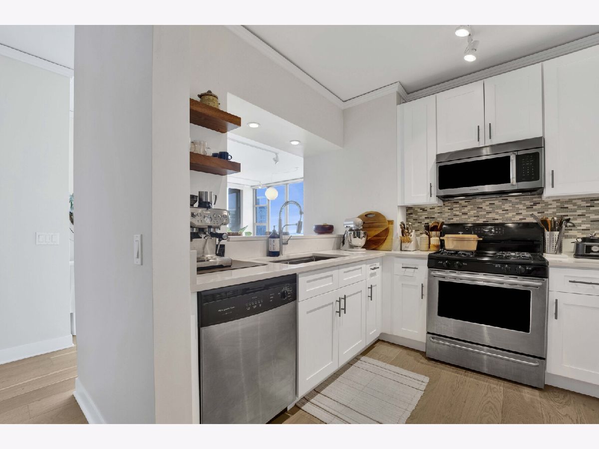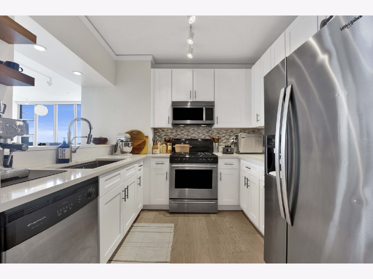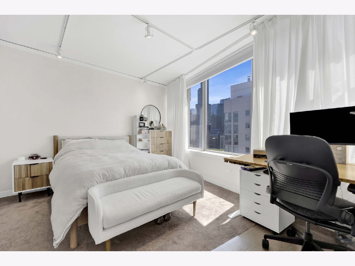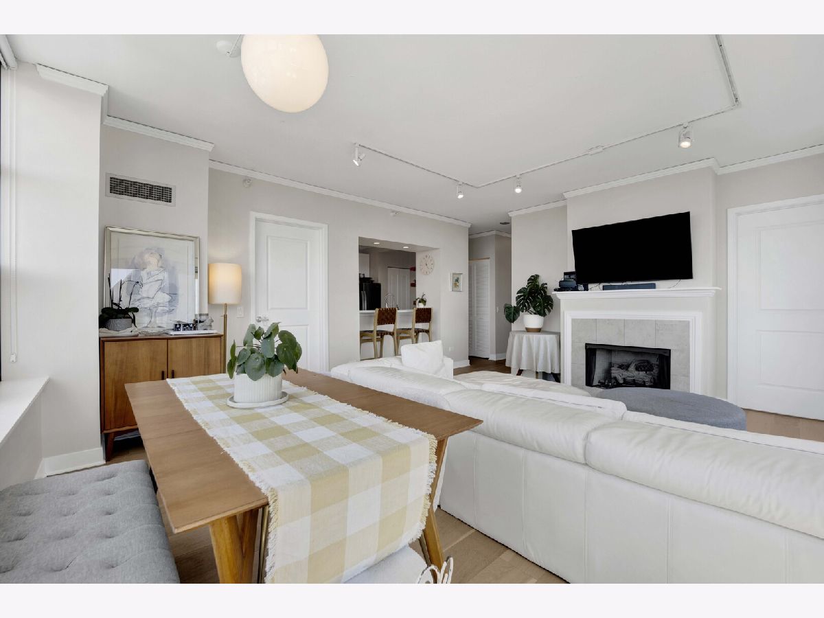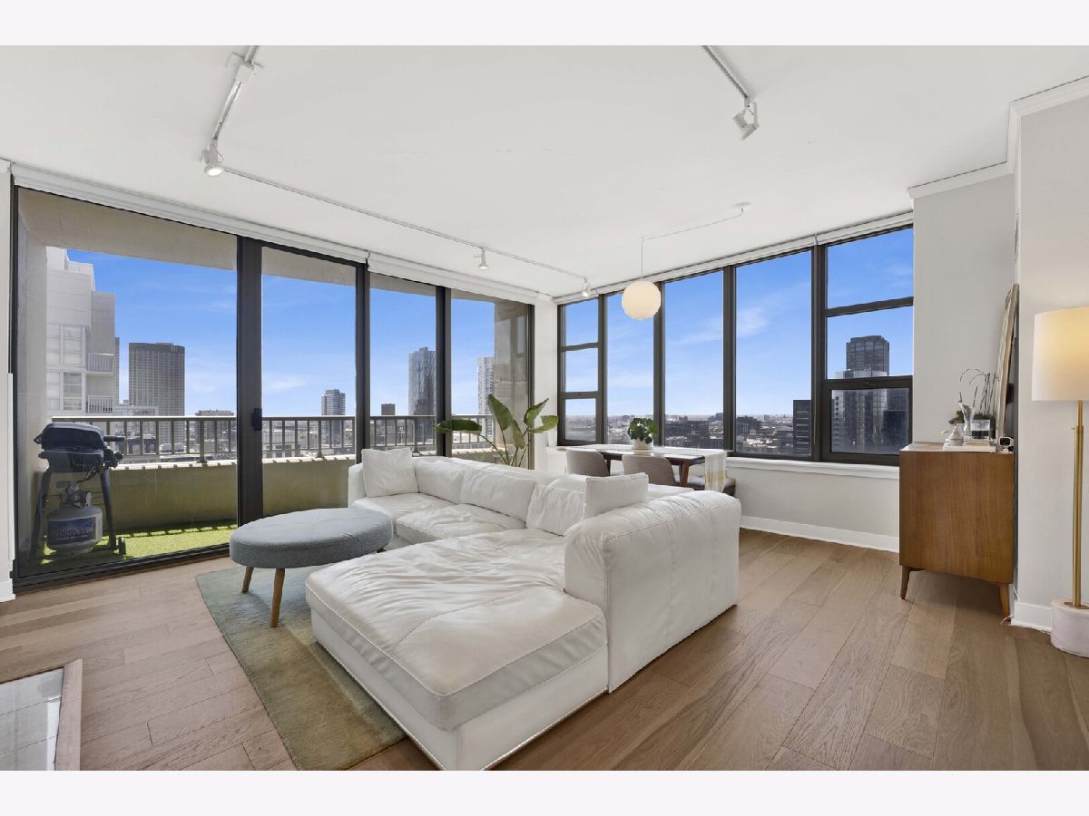 Premier southwest corner unit featuring 2 bedrooms and 1.5 baths on the 23rd floor. Enjoy sweeping views through expansive floor-to-ceiling windows, along with thoughtfully designed custom closets, window treatments, upgraded lighting throughout, new engineered oak flooring throughout the kitchen/living space, and a brand new kitchen with stainless appliances and quartz counters. The spacious primary suite includes a full bath and walk-in closet, while additional highlights include a gas fireplace, in-unit washer and dryer, and a private balcony. The second bedroom is versatile-perfect for a home office or nursery. Jefferson Tower offers full-service amenities, including an attached garage, nearly 24-hour door staff, on-site management, sundeck, fitness center, bike room, and storage. The building also features convenient on-site retail such as Starbucks, a cleaner, and FedEx. Ideally located in a highly walkable area with easy access to Fulton Market, Randolph Street dining, grocery stores, the Riverwalk, parks, and everything the West Loop has to offer. Commuting is a breeze with nearby Metra, CTA trains, and bus lines.