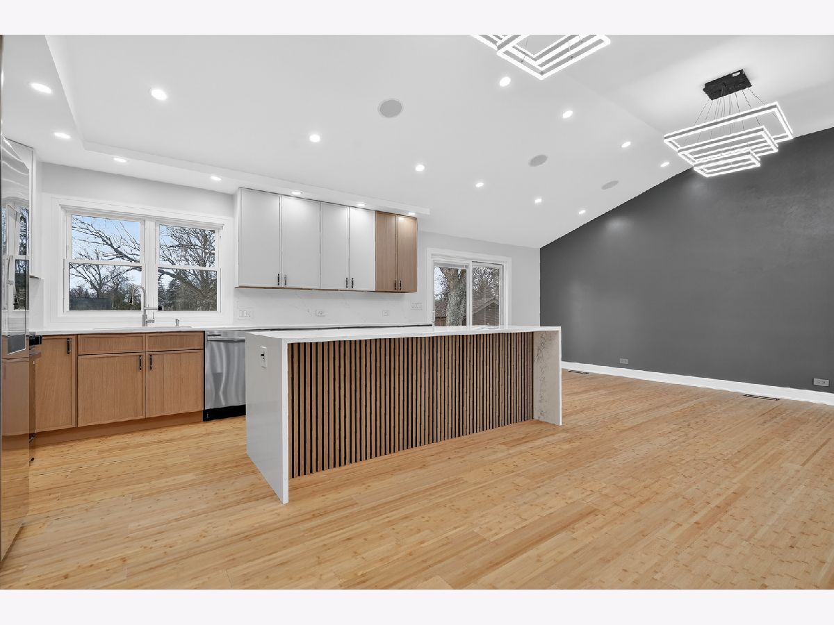 Experience refined luxury in this fully renovated, exclusive split-level residence set on an expansive over half-acre lot in the heart of Prospect Heights, within the highly sought-after John Hersey High School District. This exceptional 5-bedroom, 4-bath home seamlessly blends modern elegance with thoughtful design and premium finishes throughout. The open-concept main level is highlighted by vaulted ceilings, creating a light-filled and airy atmosphere ideal for both everyday living and entertaining. The stunning living, dining, and kitchen spaces flow effortlessly together and are enhanced by built-in speakers for an elevated lifestyle experience. The luxurious kitchen features high-end Samsung appliances, beautiful quartz countertops and backsplash, and sleek cabinetry-perfectly designed for both form and function. Every detail has been carefully curated, from the custom closets throughout to the brand-new mechanicals, offering peace of mind and modern efficiency. The spacious lower levels, including a sub-basement, provide exceptional flexibility for recreation, work, or guest accommodations. Step outside to enjoy the brand-new oversized deck, ideal for entertaining or relaxing while overlooking the expansive private grounds-an increasingly rare find. This is a truly turnkey luxury home offering space, style, and location, all in one of Prospect Heights' most desirable settings.