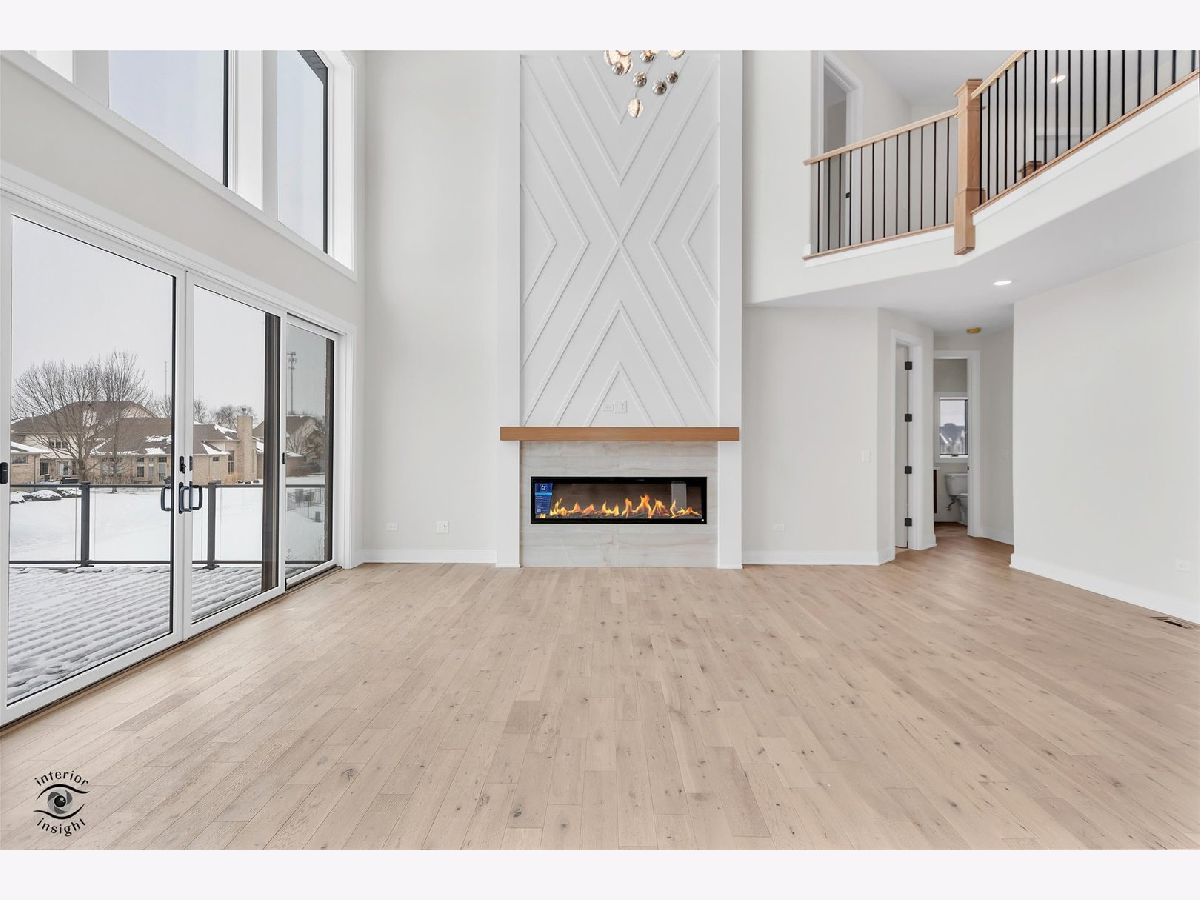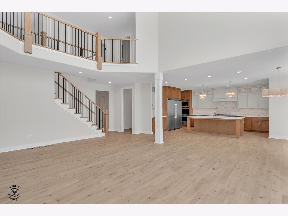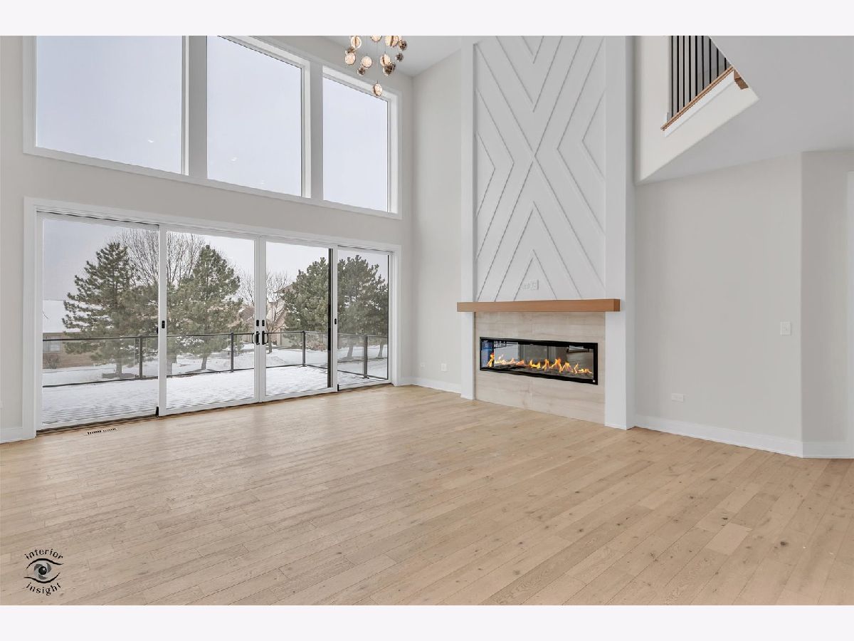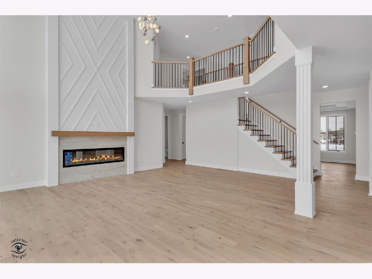 Welcome to this stunning 3,856 square foot custom residence offering 4 bedrooms, 3.5 baths, and a full walk-out basement with roughed in plumbing, designed with exceptional craftsmanship and elevated finishes throughout. The home features 9-foot ceilings and a dramatic two-story greatroom highlighted by a striking two-story wood fireplace facade with electric fireplace, creating an impressive focal point. The spacious family room is enhanced by panoramic 16' x 8' sliding glass doors, flooding the space with natural light and seamlessly connecting indoor and outdoor living. The gourmet kitchen showcases custom cabinetry, high-end stainless steel appliances, and thoughtful design ideal for entertaining. The primary suite offers a true retreat with a spa-like bath featuring a walk-in glass shower with body sprays, along with his and her walk-in closets, including custom shelving in the her closet. All secondary bedrooms include walk-in closets, providing generous storage. Additional highlights include white oak custom stairs, detailed woodwork throughout, and high-end custom lighting and bath fixtures. Outdoor living is elevated by a Trex deck with sleek glass panel railings, spanning across two sets of sliding doors and perfect for enjoying the surrounding views. This thoughtfully designed home blends luxury, functionality, and timeless style, making it ideal for both everyday living and elegant entertaining.