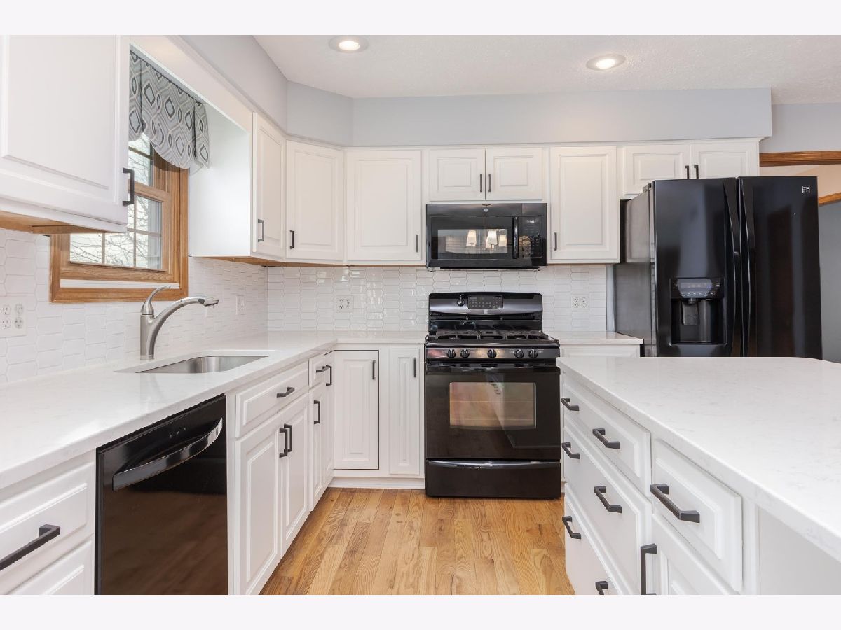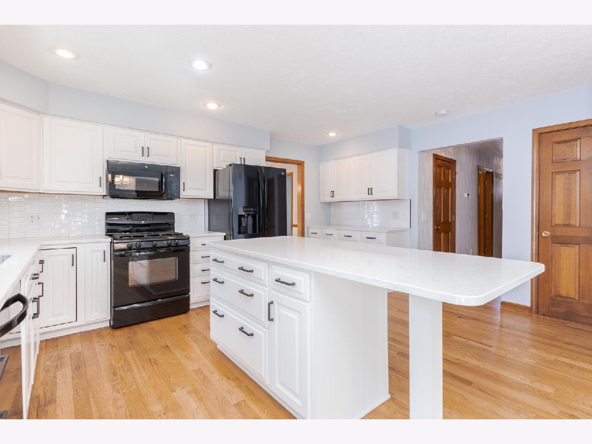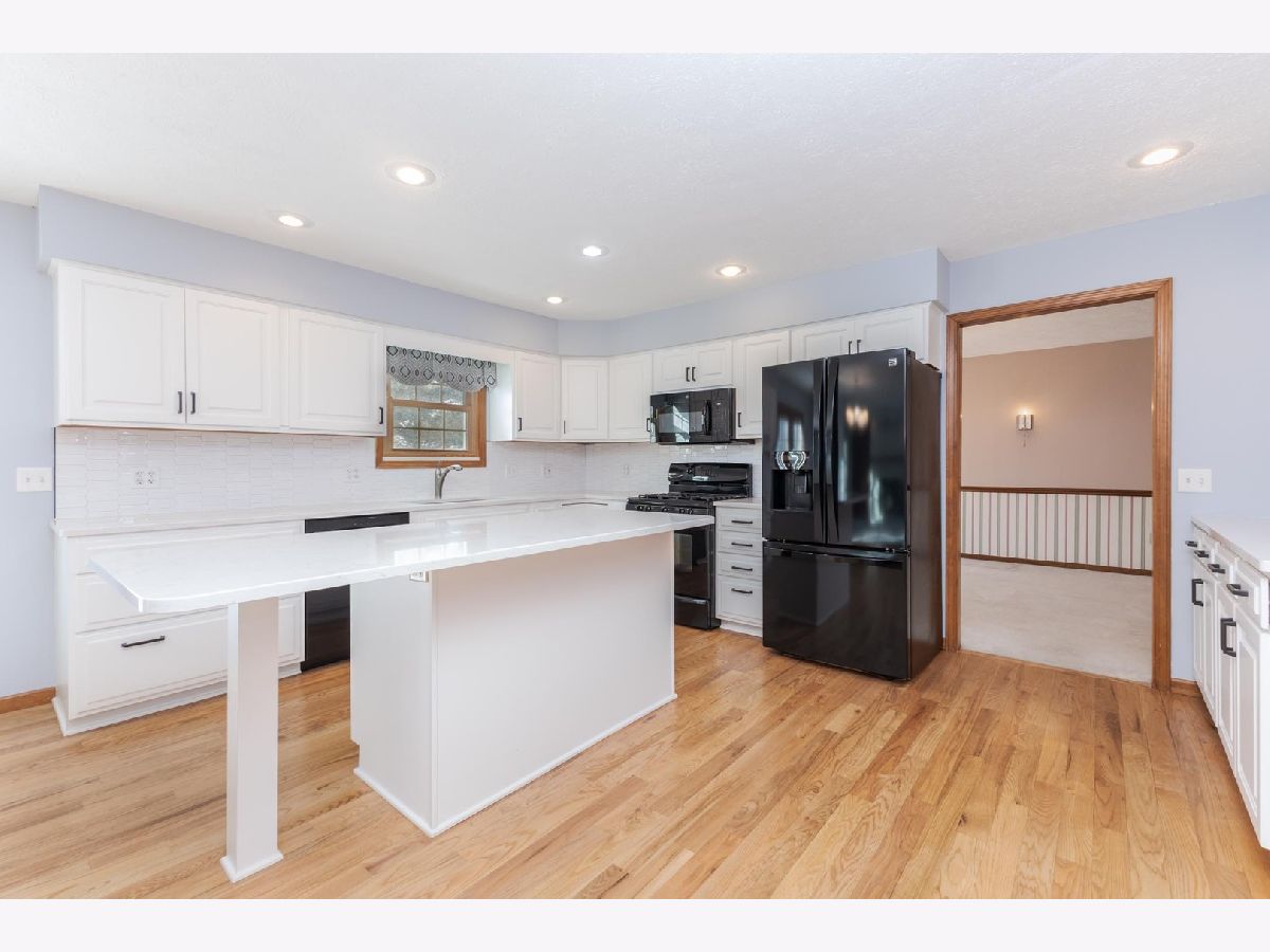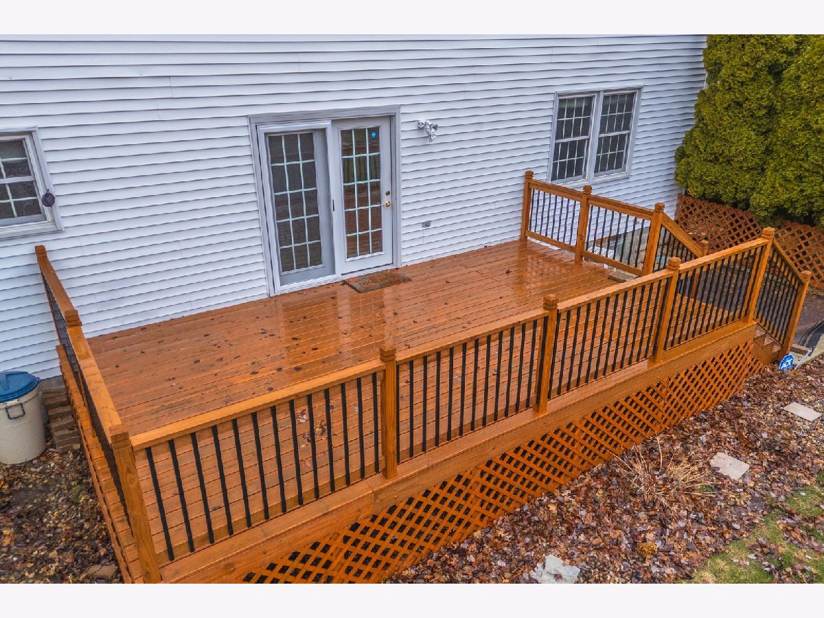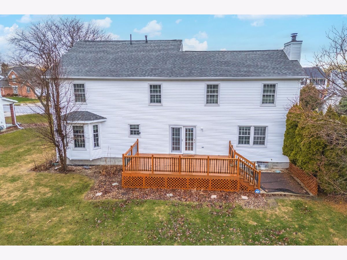 Spacious 5-bedroom, 2.5-bath home located in the Ironwood subdivision. Woodfront Kitchens updated the kitchen in 2018. The kitchen features quartz countertops with a tile backsplash, newer refaced cabinets, an island with a breakfast bar, and plenty of counter space. The kitchen opens into the family room, perfect for entertaining. The spacious walk-in pantry and 1/2 bath had a facelift in 2020. Beautiful hardwood flooring was refinished in 2020. Grandville 5000 model windows were installed by Nordines in 2019. There is a large primary bedroom with its own full bathroom and a walk-in closet measuring 5x10 feet. The roof is approximately 2020. The basement is plumbed for another bathroom. In addition to the 12x21 deck (2023), there is a 13x12 concrete patio. The home has no backyard neighbors. The oversized garage is approximately 26x25. This home is easy to show and ready for its new owner.