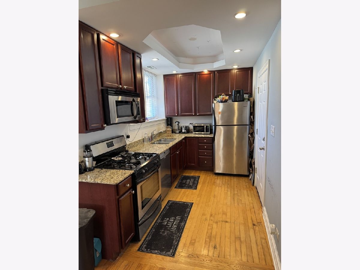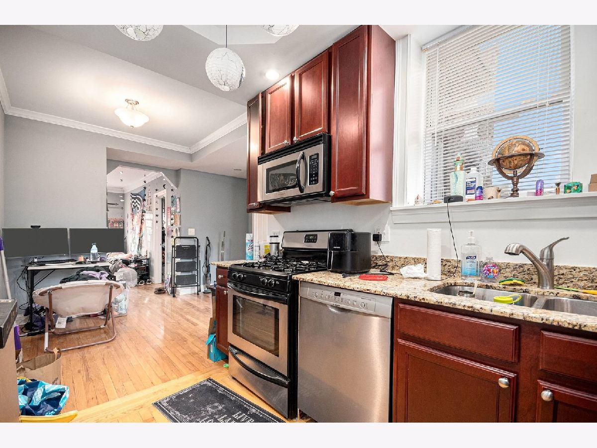 Beautifully maintained 1-bed / 1-bath condo on a quiet, tree-lined street surrounded by classic single-family homes-perfect for an owner-occupant or a low-maintenance rental investment. This inviting home offers the rare combination of tranquility and city convenience, with ample street parking and a highly desirable location. The kitchen features a lighted tray ceiling, 42" cherry cabinetry, granite countertops, and stainless steel appliances, flowing seamlessly into the living space. The living room is warm and welcoming with hardwood floors, crown molding, abundant natural light, and a gas fireplace-perfect for cozy fall and winter evenings. Step outside to enjoy both a front balcony and a rear deck, ideal for morning coffee or evening relaxation. Additional highlights include hardwood floors throughout, in-unit washer/dryer, dedicated storage, and thoughtful finishes that make the space feel elevated and move-in ready. Unbeatable location within walking distance to Metra rail and the CTA Red Line, plus easy access to local shops, restaurants, and neighborhood amenities. Units in this building are rarely available and move quickly-don't miss this opportunity to own in a well-kept, high-demand building.