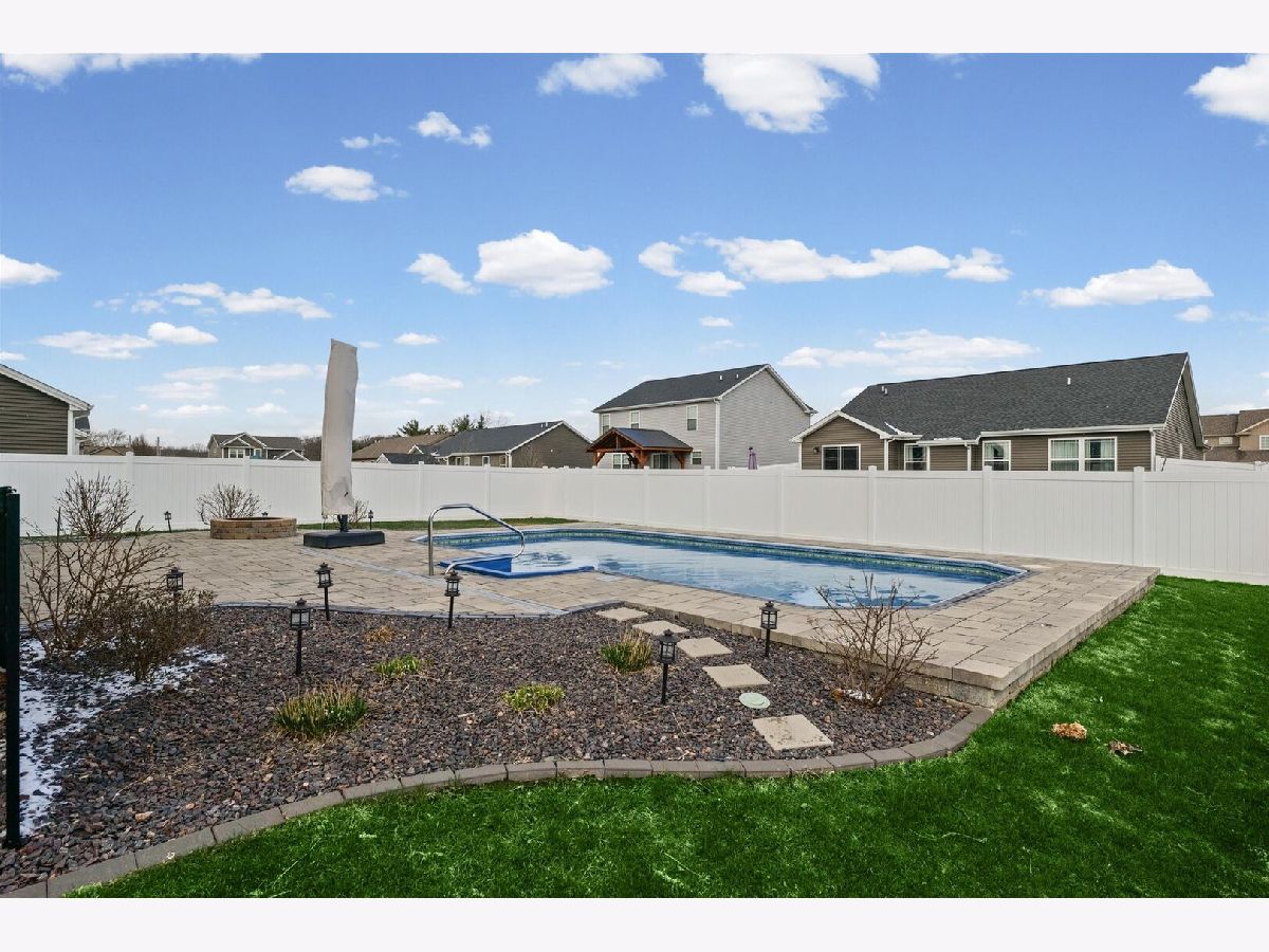 Modern farmhouse style and a spacious two-story design make this beautiful home at 2008 Rylan Rd., Mahomet a standout in the highly desirable Prairie Crossing neighborhood and the Mahomet-Seymour School District. Prairie Crossing is known for its welcoming atmosphere, scenic walking paths, and neighborhood fishing pond, offering a wonderful balance of community living and outdoor recreation. This thoughtfully designed four-bedroom home offers a functional and flexible floor plan with multiple gathering spaces and comfortable private bedroom areas, making it ideal for everyday living and entertaining. Large windows throughout the home provide abundant natural light, creating a bright and inviting atmosphere. The interior of the home, including the garage, has been freshly painted, giving the property a clean, updated, move-in-ready feel. A major advantage of this home is the full unfinished basement, offering excellent potential for future expansion. The space could easily accommodate a fifth bedroom, additional living or recreation area, home office, or third full bathroom, providing flexibility for future needs. The backyard creates a true outdoor retreat. The private fenced yard features a heated in-ground swimming pool surrounded by beautiful inlaid stone decking, creating a resort-style setting perfect for relaxing or entertaining. A dedicated outdoor firepit area offers the perfect place to gather with friends and family on cool evenings. Additional highlights include a two-car attached garage, professional landscaping, immediate possession, and a one-year Achosa Home Warranty for added peace of mind. With its modern farmhouse design, heated pool, freshly painted interior, basement expansion potential, and prime Prairie Crossing location, this home offers a rare opportunity in one of Mahomet's most sought-after neighborhoods.