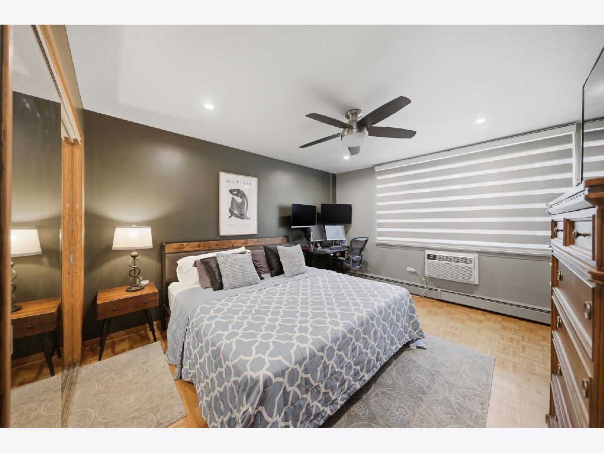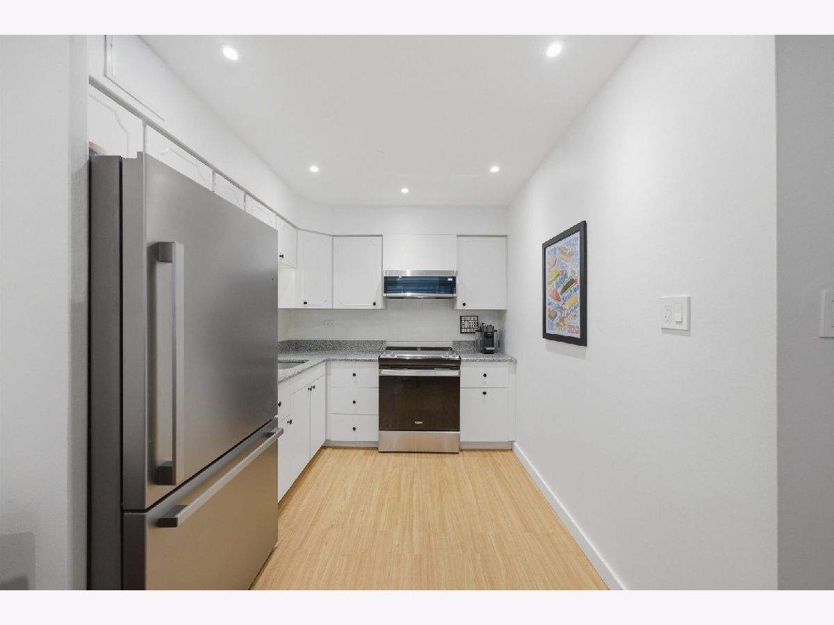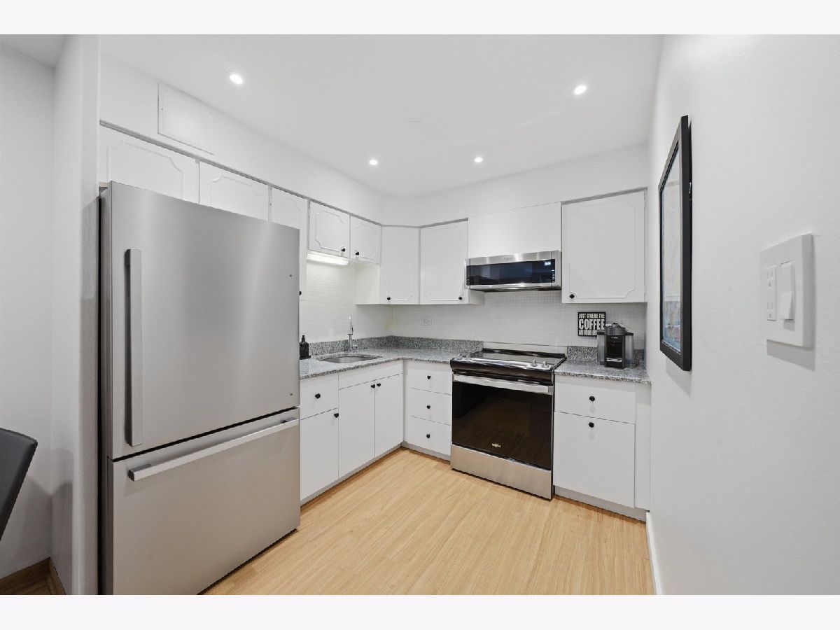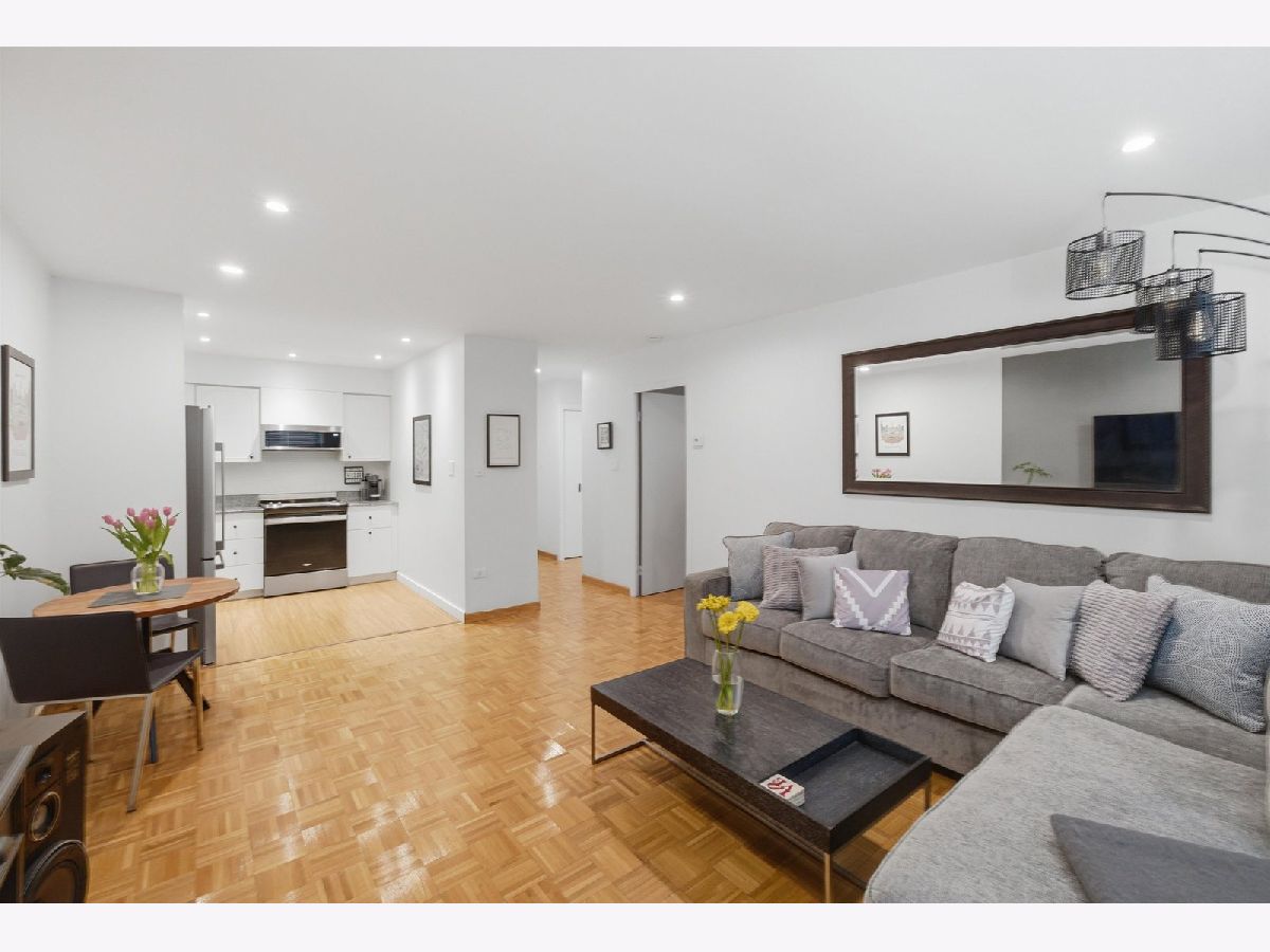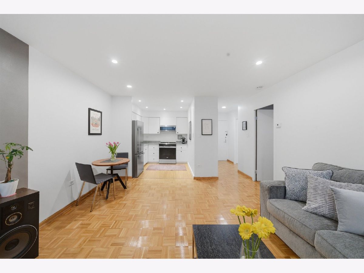 MODERNIZED 1 BEDROOM UNIT, SITUATED IN AN ELEVATOR BUILDING. FLOOR PLAN CONSISTS OF A LARGE LIVING/DINING COMBO, 1 LARGE BEDROOM, KITCHEN AND EXTREMELY LARGE BATHROOM. NEW WINDOWS THROUGHOUT, RECESSED LIGHTING THROUGHOUT, RECENT INTERIOR PAINT, PAINTED WHITE CABINET KITCHEN WITH ALL NEW S/S APPLIANCES, NATURAL PARQUET FLOORS, TONS OF CLOSET SPACE.ONE ON-SITE PARKING SPACE INCLUDED. STORAGE LOCKER, EXCERCISE ROOM AND LAUNDRY ROOM ON GROUND LEVEL. THIS BUILDING IS WELL MANAGED/MAINTAINED, CLOSE TO DOWNTOWN OAK PARK, TRANSPORTATION, SHOPPING AND ENTERTAINMENT. 1ST FLOOR UNIT NOT ON GROUND LEVEL!