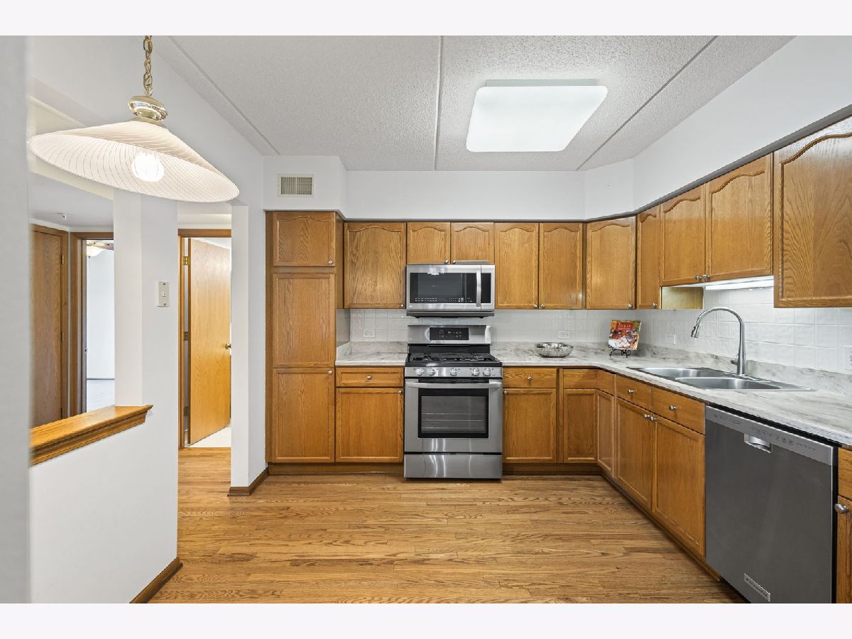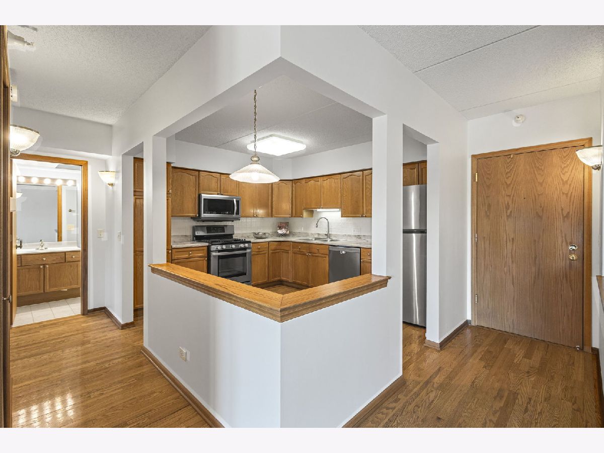 LOCATION - SPOTLESS - RARE OFFERING Come and tour this meticulously maintained, two bedroom/two bath unit in the HEART of Downtown Arlington Heights. Towne Place units rarely become available so here is your chance. This third floor western facing unit is filled with light and offers amazing sunset views from the balcony. Neutral decor offers you a fresh palette to make it your own. Living room and dining room with crown molding are open to the kitchen for a true OPEN CONCEPT that is on trend for todays demands. Kitchen has Corian counters, wood flooring, stainless appliances and tons of smart storage. Windows are new and furnace is 3 years old. Primary bedroom with dual closets and private bath has custom designed storage. In unit laundry. The building and garage are impeccably maintained. On each floor, as you exit your elevator, you are welcomed with large windows and a cozy vignette. There is a community room and a large sun deck. Location is a big part of this story. Shopping, dining, Metra, parks, live music, festivals, al fresco dining in summer months, concerts and the list truly goes on. Towne Place is a special place to call home.