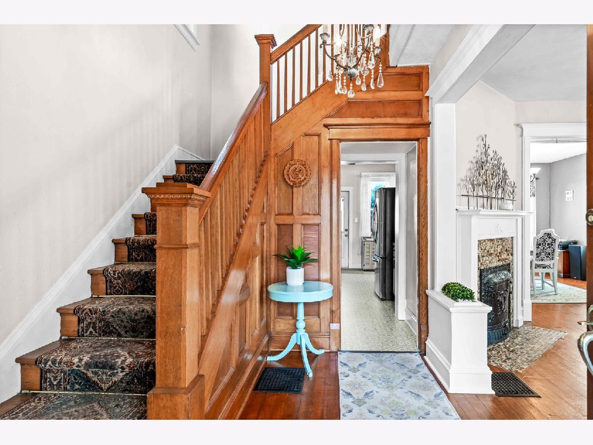 Charming Founders Grove 3 bd 2 ba with finished basement and detached 2 car garage! Stunning entryway, beautiful stained Glass windows, pocket doors, gorgeous hardwoods, decorative wood burning fireplace 9 foot ceilings enhance the main level. Good sized bedrooms have spacious walk-in closets. Several recent updates include Roof 2024; Privacy fence 2024; 2nd fl bathroom and kitchen refresh 2022; microwave 2022; A/C 2018; water heater 2018.