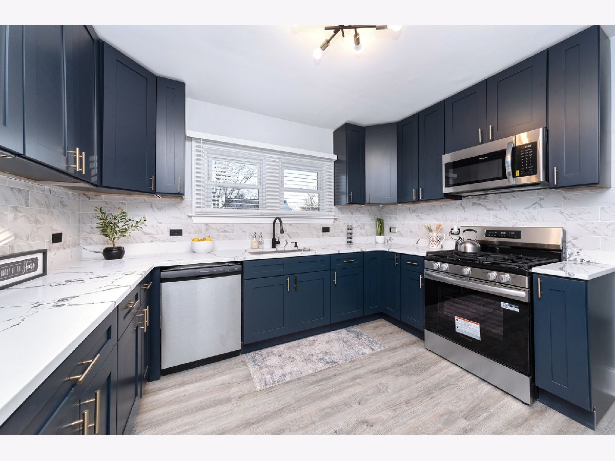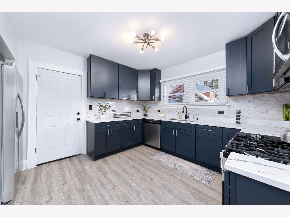 A beautifully redesigned home offering nearly 2400 square feet of modern living with a full top-to-bottom renovation. The main level features an open living and dining space with clean lines, matte-black accents, quartz surfaces, soft-close cabinetry and stainless steel appliances. The layout includes three generous bedrooms upstairs along with a sunroom that brings natural light into the home. The fully finished lower level adds two large bedrooms and additional living space ideal for extended family or flexible use. Every major component has been updated including electrical, plumbing, HVAC, flooring, kitchen, bathrooms and luxury siding with gutter guards. A new water service line and a full drain-tile system were added to give long-term protection and peace of mind against flooding. The property sits on a quiet residential block with a spacious backyard and a side driveway. The combination of new mechanicals, modern finishes and thoughtful design makes this a standout option for buyers seeking quality, style and a move-in ready home with room to grow.
