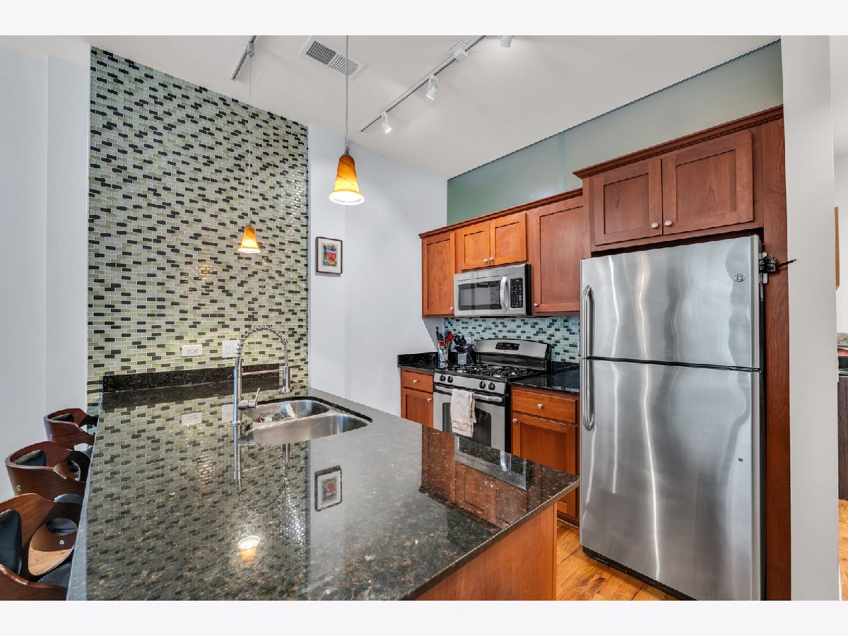 Meticulously maintained by only the second owner, this stunning 2 bed, 1.5 bath smart-home condo is located in a newer, secure, LEED-certified elevator building in the South Loop Museum Campus area and features a massive 22' L-shaped balcony with outdoor speakers, a piped-in natural gas grill, and views of one of two all-season rooftop gardens, with private heated garage parking available for an additional cost and no cars on either side; the interior offers 10' drywall ceilings with no exposed HVAC, hardwood floors, ceiling fans, white trim, in-unit large-capacity LG washer/dryer, and a gorgeous kitchen with granite countertops, breakfast bar with pendant lighting, glass tile backsplash, cherry cabinets, island with undermount stainless sink, Grohe pull-down faucet, newer disposal, and all stainless appliances including an ice-maker refrigerator, while the primary suite includes dual his-and-hers closets, in-wall safe, custom shelving, and a spa-like bath with Grohe body sprayers, rain and handheld shower heads, custom seat, glass door, comfort-height vanity, and built-in speakers; the living room showcases floor-to-ceiling windows and a full glass patio door with transom for exceptional natural light, the powder room features a smart bidet toilet seat, and the home is fully integrated with a Control4 system for door access, security, thermostat, lighting, and whole-house high-end surround sound; the well-managed HOA with strong reserves and low assessments includes water, garbage, internet, cable TV, two DVR boxes, and common area maintenance, the building is pet-friendly and rentable, and the location is unbeatable-under half a mile to the Red and Green Lines, 18th St Metra, Michigan Ave buses, I-55/90 and Lake Shore Drive, and just blocks from Lake Michigan, Burnham Harbor, Soldier Field, McCormick Place, Wintrust Arena, and the dog park.