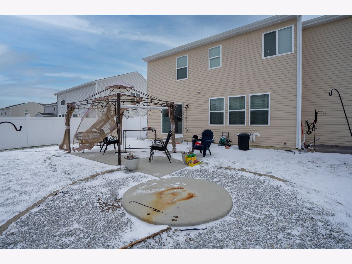 Welcome to this stunning newer home that combines elegance, comfort, and functionality throughout. The upgraded stone front and charming covered porch create an inviting first impression. Step inside to a bright, open layout featuring a gorgeous kitchen with white cabinets topped with crown molding, a large island, granite countertops, custom backsplash, and stainless steel appliances including a double oven. The spacious breakfast area opens to a privacy-fenced yard with a large concrete patio, gazebo, gas line for grill and beautifully maintained gardens-perfect for entertaining or relaxing. Enjoy a sun-filled family room with an electric fireplace, a formal dining room for special gatherings, and a convenient main-level mudroom with a large storage closet. Upstairs, you'll find a desirable second-floor laundry room with a utility sink, a large loft or office space, and four generous-sized bedrooms. The luxurious primary suite offers a decorative ceiling, two closets including a huge walk-in, and an upscale bath with a soaker tub, separate shower, and double vanity. Additional highlights include an unfinished basement ideal for storage or future expansion, and an attached garage. This home truly blends modern design, comfort, and style in every detail.
