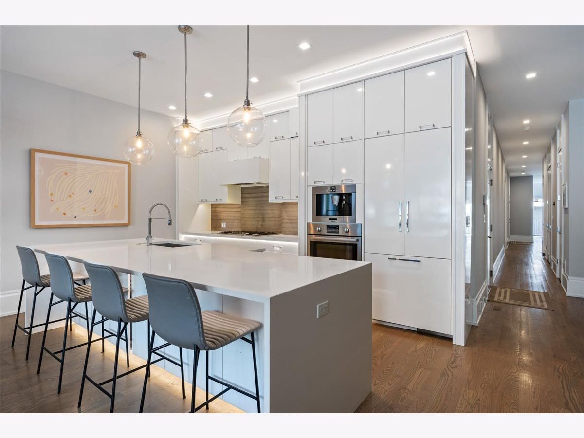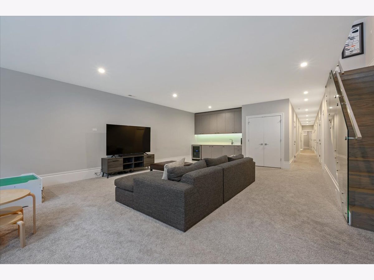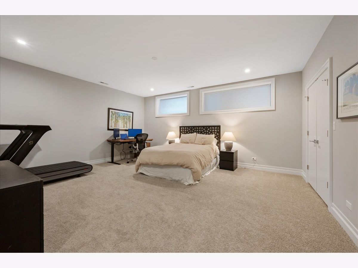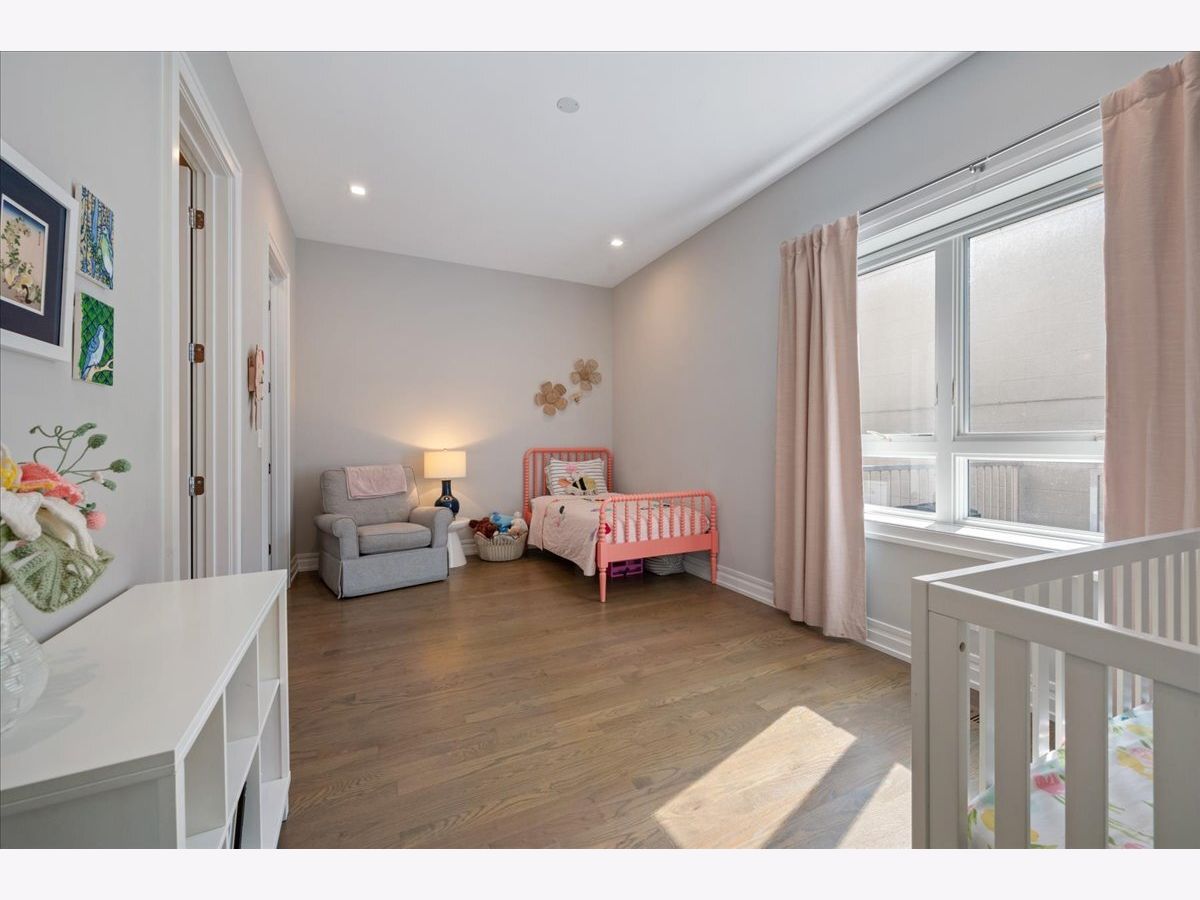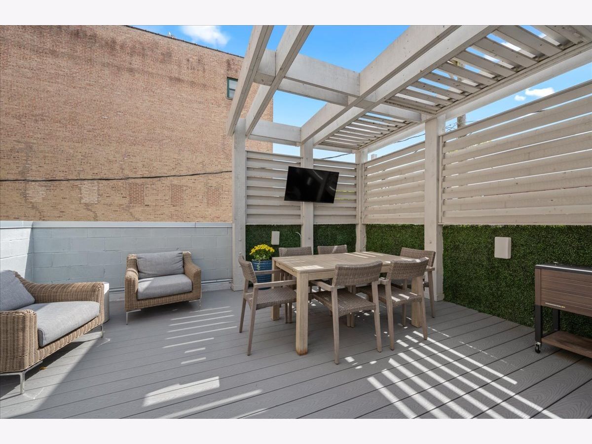 Tucked just a few blocks from the vibrant pulse of Roscoe Village, this impressive 4-bedroom, 3.2-bath duplex down, spanning over 4,000 square feet, offers the space and custom touches of a single-family home. Its extra-wide, open-concept floorplan stands out with 11-foot ceilings on the main level and 9-foot ceilings downstairs, creating a bright and airy atmosphere. The gourmet kitchen is a highlight, featuring tall custom cabinetry, a large quartz-topped island, high-end chef-inspired appliances, and a built-in Bosch espresso machine, ideal for both daily cooking and entertaining. The master suite provides a restful escape with a roomy walk-in closet fitted with custom built-ins and a luxurious ensuite bath boasting heated floors and a steam shower. A second bedroom includes its own ensuite bath and custom closet, while two additional bedrooms share another full bath, with two well-placed half baths-one on each level-adding convenience for guests. The spacious family room, equipped with a stylish wet bar, is perfect for gatherings or relaxed evenings, enhanced by ample storage and custom Hunter Douglas window treatments throughout. Step outside to enjoy a private 25' x 19' pergola-covered deck atop the garage, exclusive to this unit, or relax on the inviting covered front terrace off the living room, perfect for morning coffee or evening unwinding. One dedicated garage parking space is included. With Felger Park right across the street and Hamlin Park nearby, this duplex blends thoughtful design, modern comfort, and an unbeatable location in one of Chicago's most charming neighborhoods.