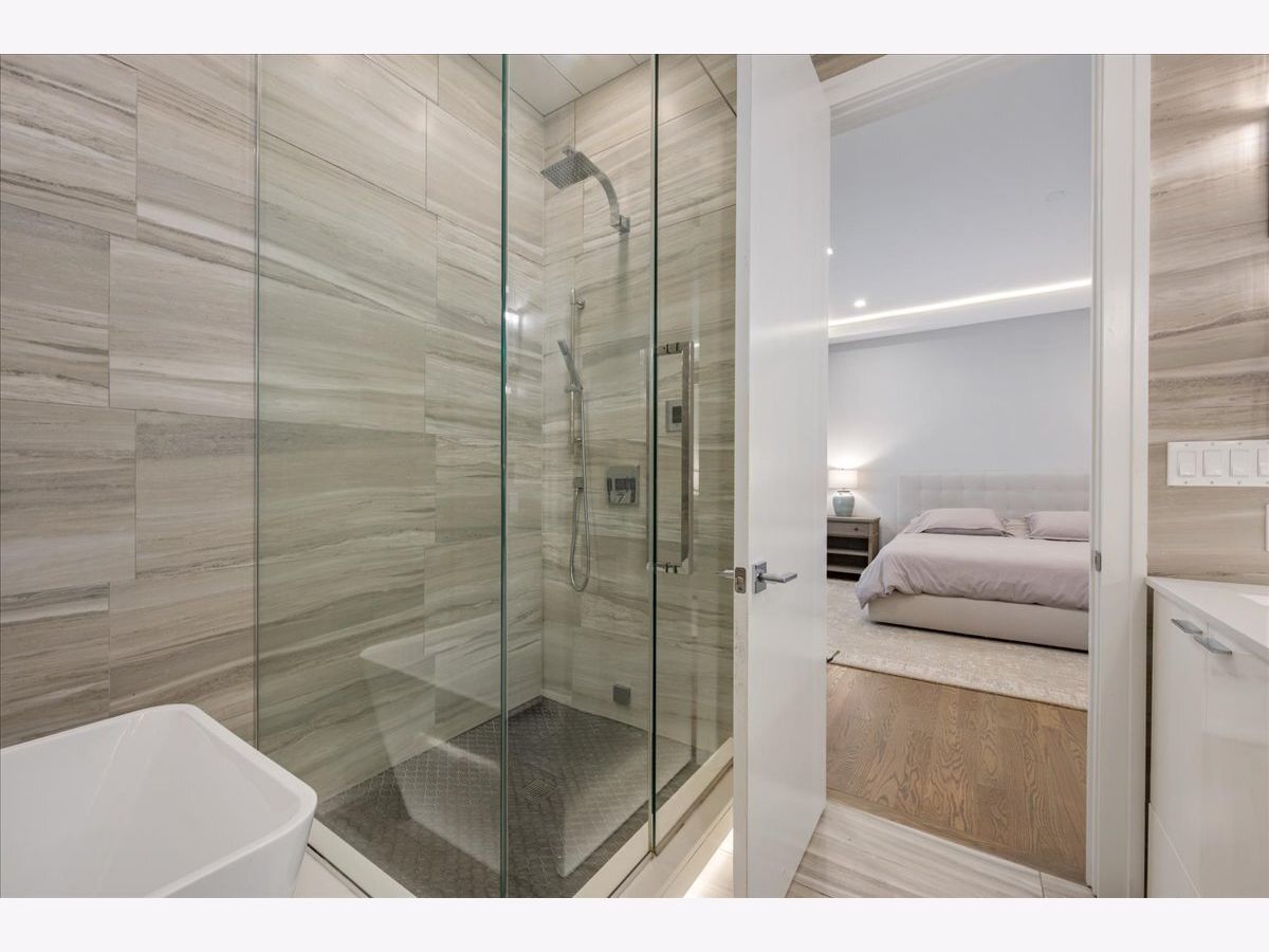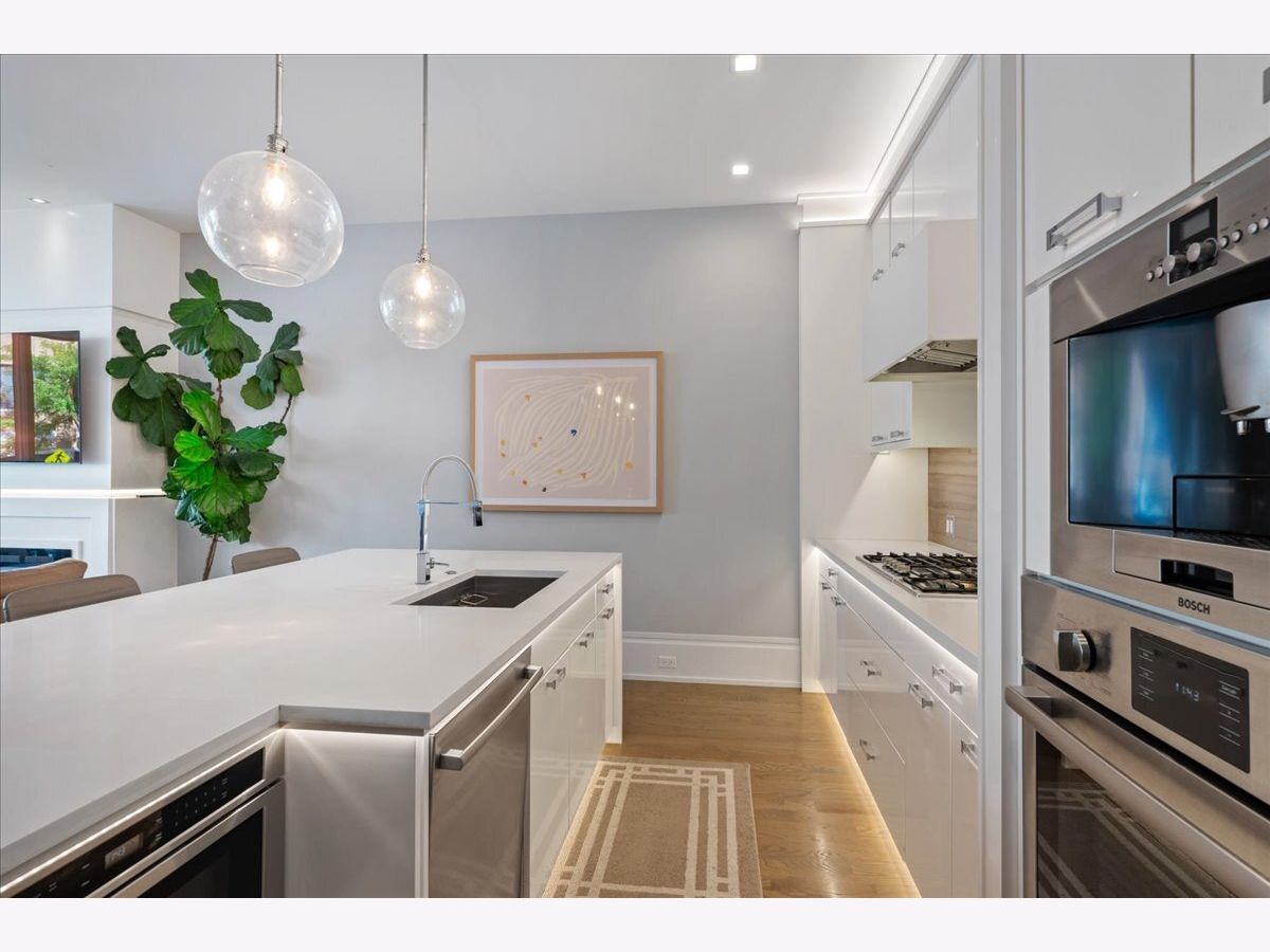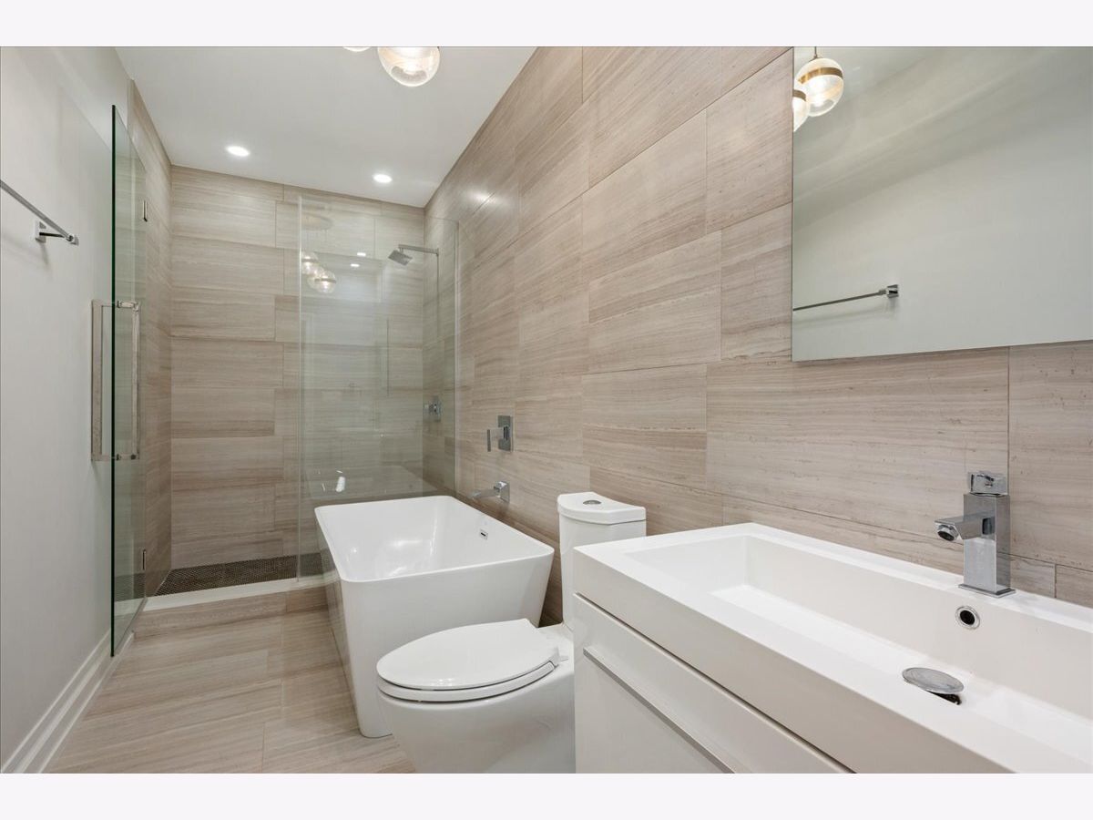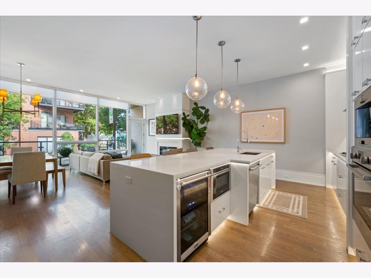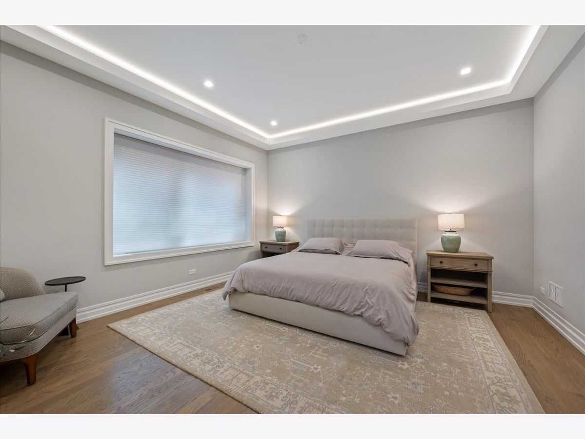 Tucked just a few blocks from the vibrant pulse of Roscoe Village, this impressive 4-bedroom, 3.2-bath duplex down, spanning over 4,000 square feet, offers the space and custom touches of a single-family home. Its extra-wide, open-concept floorplan stands out with 11-foot ceilings on the main level and 9-foot ceilings downstairs, creating a bright and airy atmosphere. The gourmet kitchen is a highlight, featuring tall custom cabinetry, a large quartz-topped island, high-end chef-inspired appliances, and a built-in Bosch espresso machine, ideal for both daily cooking and entertaining. The master suite provides a restful escape with a roomy walk-in closet fitted with custom built-ins and a luxurious ensuite bath boasting heated floors and a steam shower. A second bedroom includes its own ensuite bath and custom closet, while two additional bedrooms share another full bath, with two well-placed half baths-one on each level-adding convenience for guests. The spacious family room, equipped with a stylish wet bar, is perfect for gatherings or relaxed evenings, enhanced by ample storage and custom Hunter Douglas window treatments throughout. Step outside to enjoy a private 25' x 19' pergola-covered deck atop the garage, exclusive to this unit, or relax on the inviting covered front terrace off the living room, perfect for morning coffee or evening unwinding. One dedicated garage parking space is included. With Felger Park right across the street and Hamlin Park nearby, this duplex blends thoughtful design, modern comfort, and an unbeatable location in one of Chicago's most charming neighborhoods.