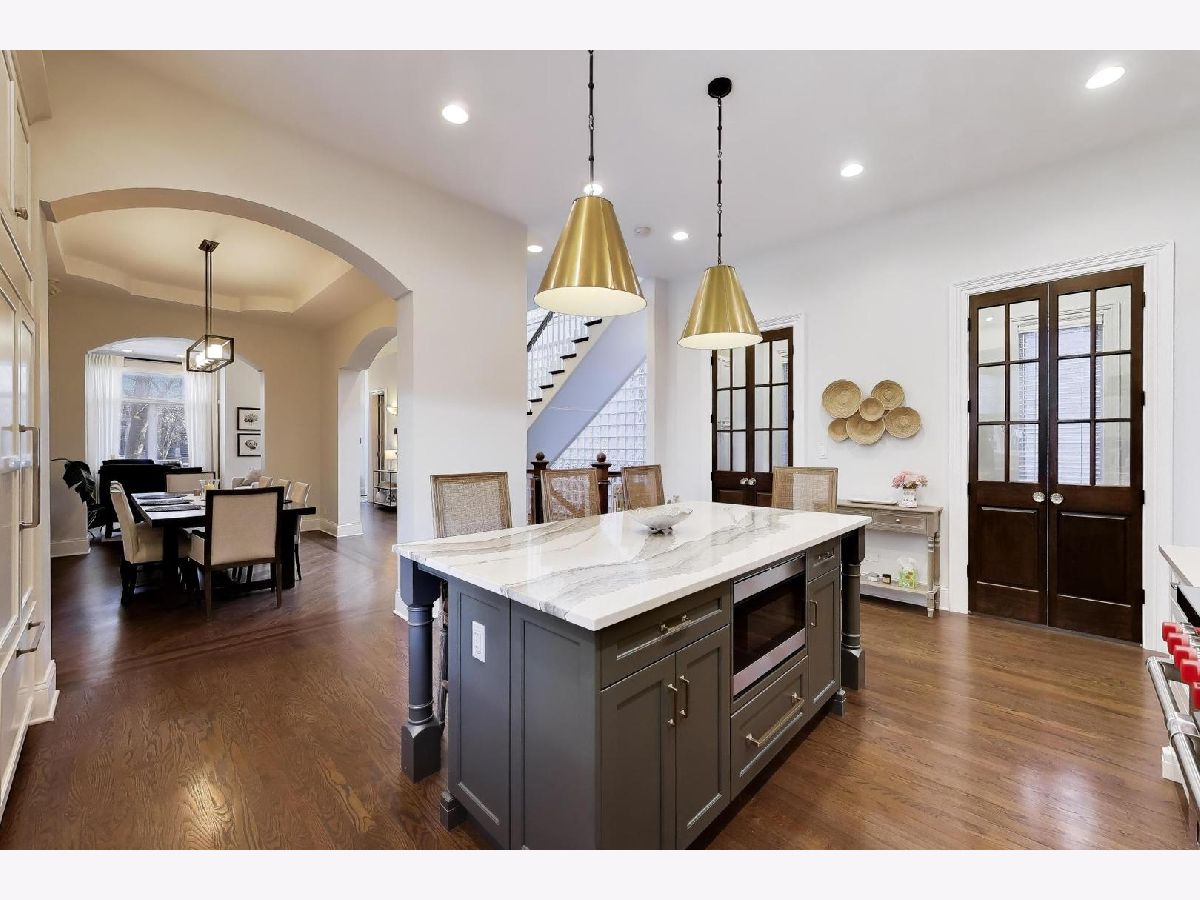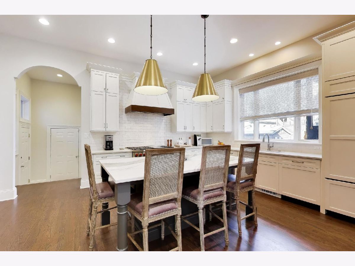 BUCKTOWN - PRIME LOCATION - STUNNING ALL BRICK, 4-BEDROOM, 3.5 BATH SINGLE FAMILY HOME ON A WIDE LOT (33') WITH AN ATTACHED, HEATED, THREE CAR GARAGE! The striking exterior showcases elegant brick and limestone, complemented by a custom wood entry door that sets the tone for the exceptional craftsmanship found throughout the home. Step inside to discover spacious, light-filled interiors with soaring ceilings, expansive windows, and an open-concept layout perfect for both entertaining and comfortable living. This home checks all the boxes from large windows, tall ceilings throughout, oversized rooms, and an open-floor floor plan great for entertaining. Prepare to be wowed with the newly (2021) redesigned CHEF'S KITCHEN with quartz countertops with custom backsplash, extra tall cabinetry with professional exhaust hood, generously sized island with barstools, and two walk-in pantries. Appliances include SUBZERO refrigeration, WOLF 6-burner range plus griddle and two ovens, BOSCH dishwasher, and SHARP microwave drawer. The redesigned floor plan leads you from the kitchen to a dedicated office/den, mud room, and attached 3-car garage. The grand staircase, flooded with natural light, brings you to the second floor with three bedrooms, two full baths, and side-by-side washer/dryer. The oversized primary suite has an all new (2021) designer, 5-Star HOTEL SPA BATH featuring brass plumbing fixtures, custom cabinetry, quartz countertops, heated floors, modern soaking tub, and separate shower. The outdoor deck above the three-car garage is perfect for entertaining. The deck includes a steel pergola, built-in bar with integrated BBQ grill, an outdoor lounge with sofas, chairs, television, gas fire pit, irrigation system, and faux grass accent under lounge area. The lower level is extremely well appointed with a custom wet bar with a professionally refrigerated wine cellar under the stairs, rare walk-out all brick front patio, generously sized family room and a 4th bedroom, full bath with shower, and stackable "second set" washer/dryer, and storage. Radiant floor heating in basement (including snow melting in sunken porch) and primary bath. Home features two wood-burning fireplaces with gas logs and gas starters, and a built-in central vacuum system. Full roof was replaced in August 2020. Exterior cameras were installed Jan 2021. Tuckpointing in May 2022. Gate camera and buzzer system installed Sept. 2022. Roof deck (deck, railings, pergolas, wood features) and front railings and fence refinished in May 2024. Home is wired for sound in basement, primary bathroom, and roof deck. Dual zoned heating and cooling with humidifiers and Ecobee Wi-Fi thermostats. New sump pump with battery backup in 2024. This must-see home is ideally located in vibrant Bucktown, just steps from premier shopping, dining, the CTA Blue Line, the 606 Trail, and all the best the neighborhood has to offer. Don't miss the opportunity to experience this exceptional home for yourself!