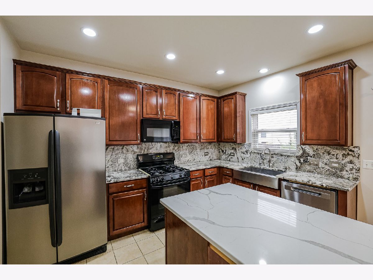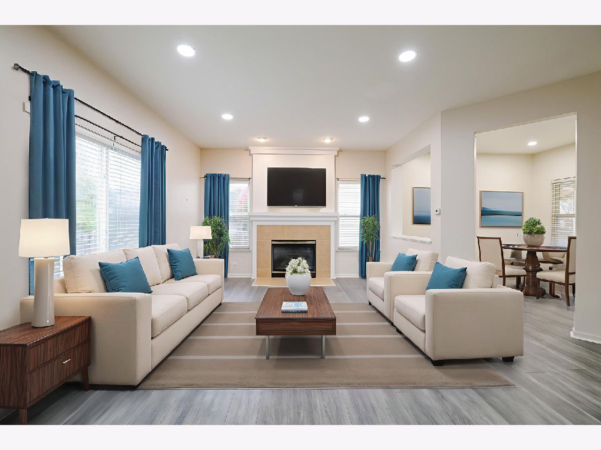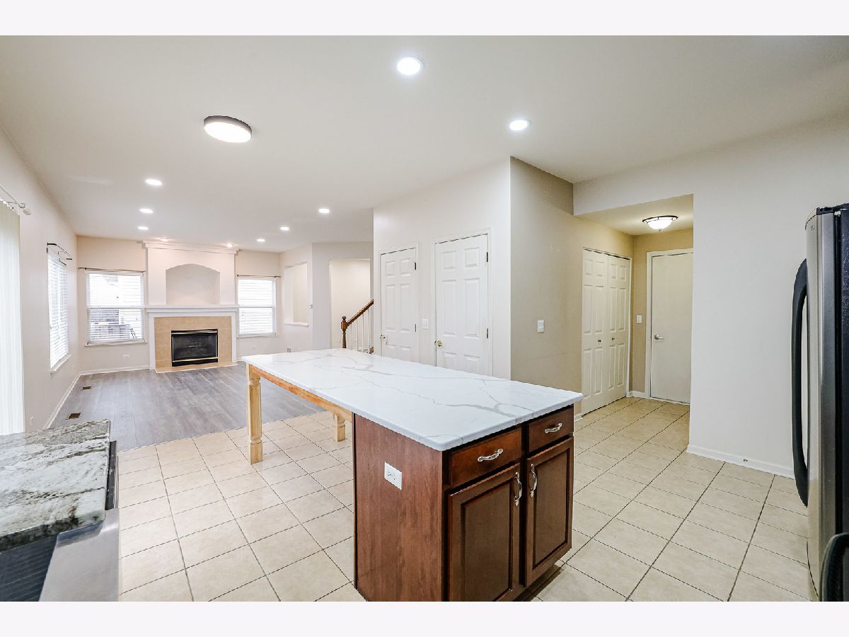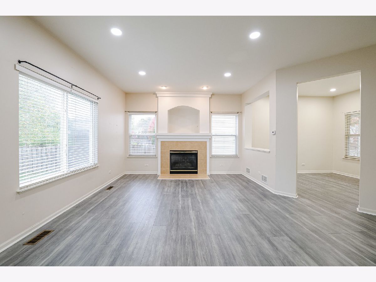 OPEN FLOOR PLAN! BEAUTIFUL KITCHEN! Island w/breakfast bar, pantry, upgraded 42" raised panel wood cabinetry w/crown cap molding, pantry, generous eating area, all upgraded appliances, recessed lighting, & ceramic flooring. 1st floor family rm w/newer vinyl & fireplace. Master bedroom w/vaulted ceiling & plant shelf vaulted private master bath w/dual vanity, soaker tub, and separate shower w/newer clear glass shower door, & ceramic tile. Main hall bath w/ceramic tile tub surround & ceramic tile floor. Upgraded bathroom fixtures. Newer updates 2017: complete tear off roof, water heater, built-in microwave, newer upgraded washer/dryer. Clean painted basement, plus concrete crawl for dry storage space. Covered front porch w/Brick elevation. Fenced yard. Vinyl floor in FR room,LR room and all bedrooms in 2023. Nature lovers will be delighted to find that the property is only a 1-minute drive to Burnidge Forest Preserve, offering access to campgrounds, bike trails, and a stunning pond for an early morning kayaking.